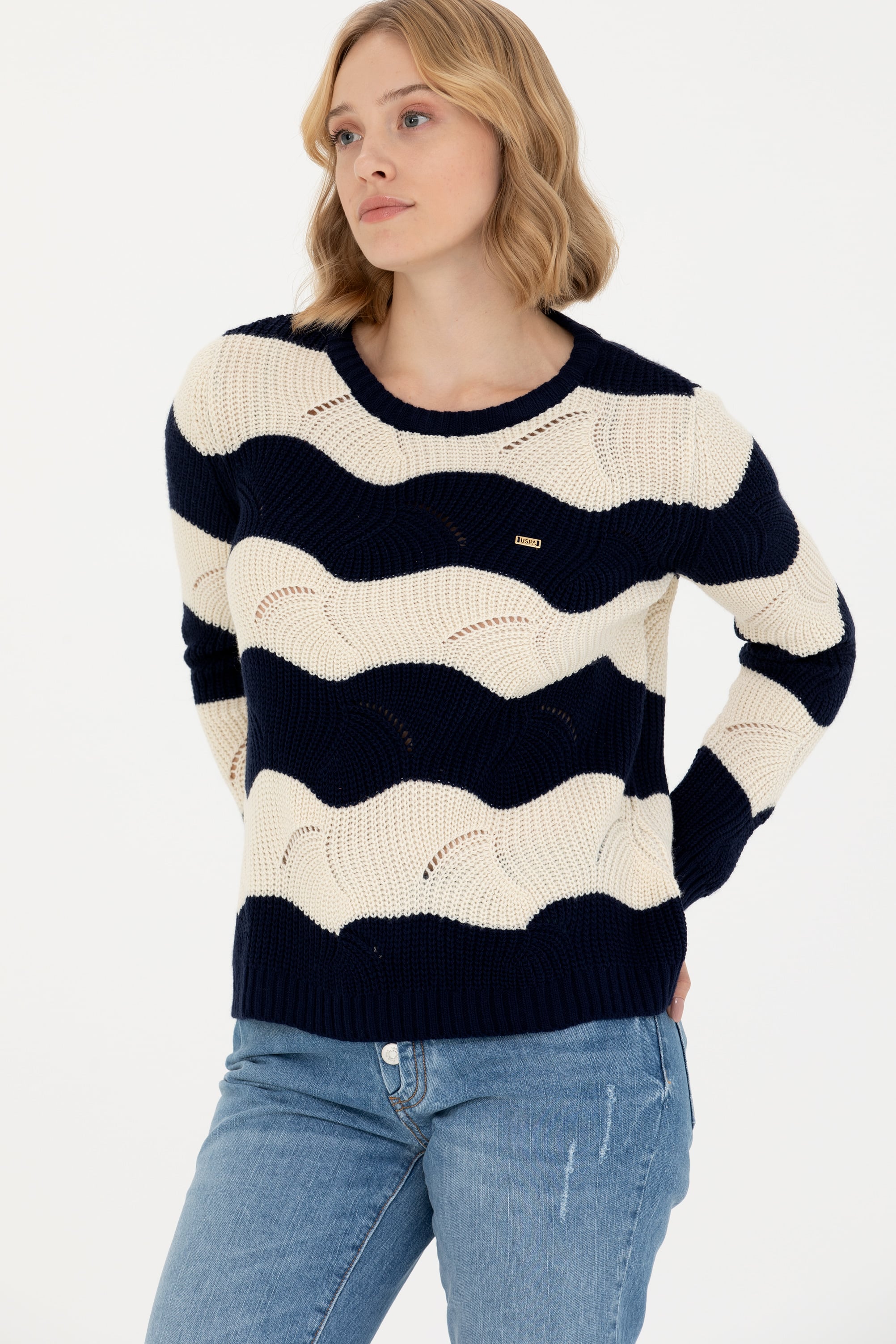 Kadın Lacivert Bisiklet Yaka Kazak