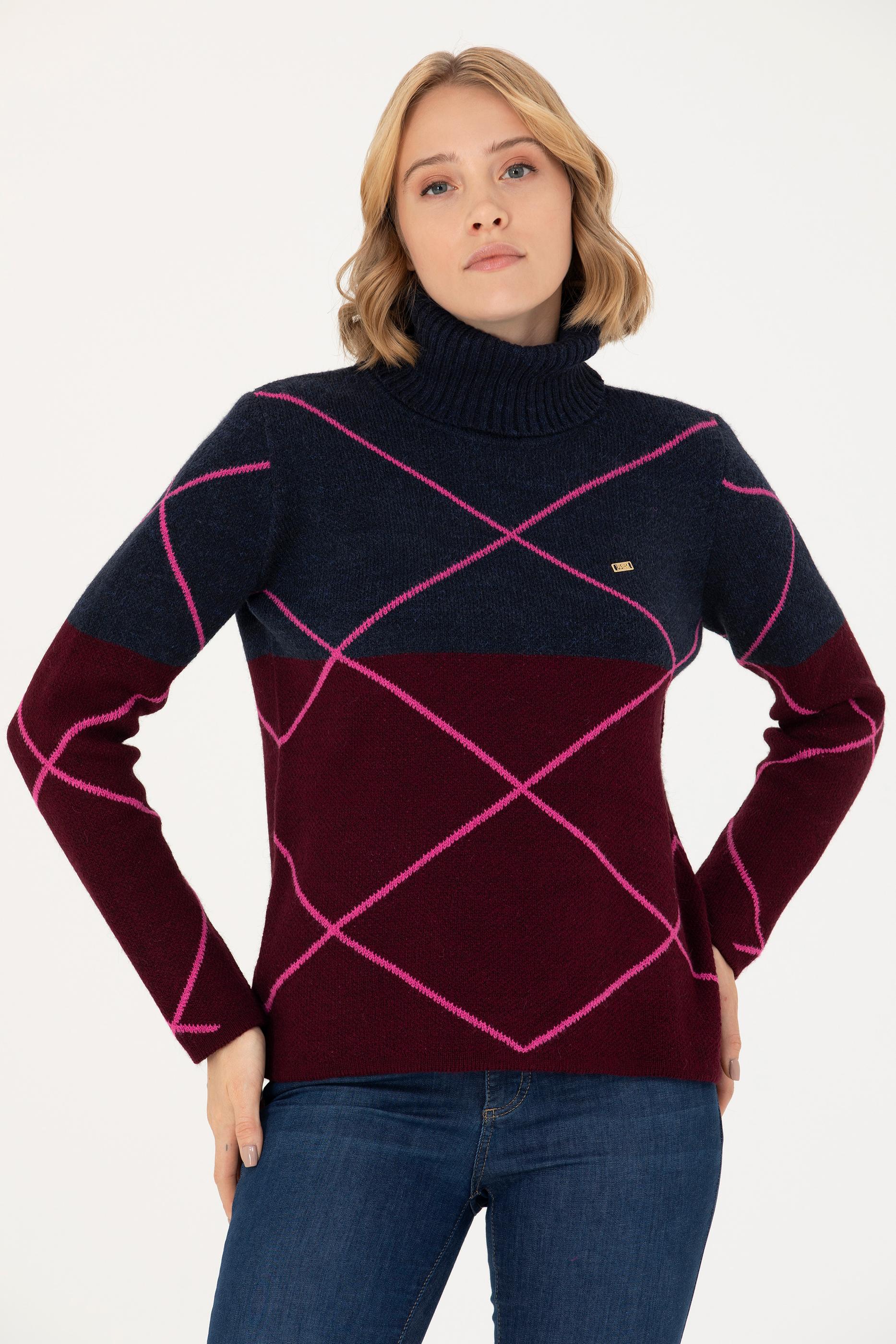 Kadın Lacivert Balıkçı Yaka Kazak