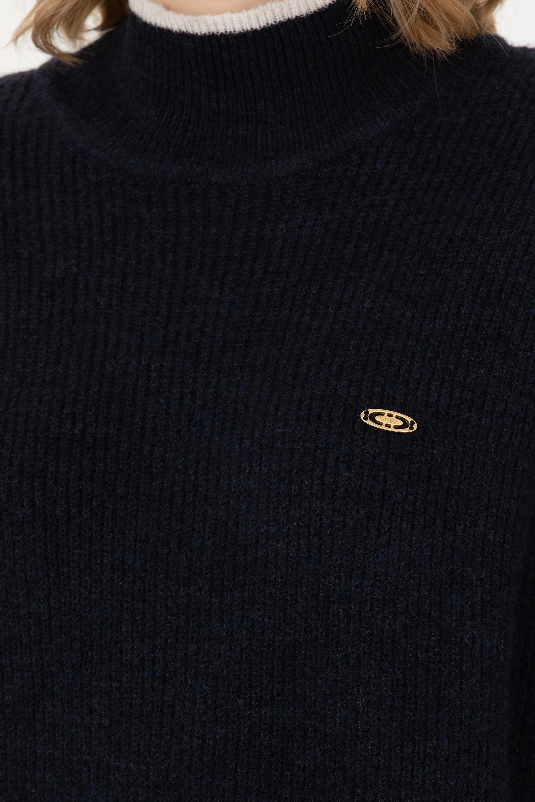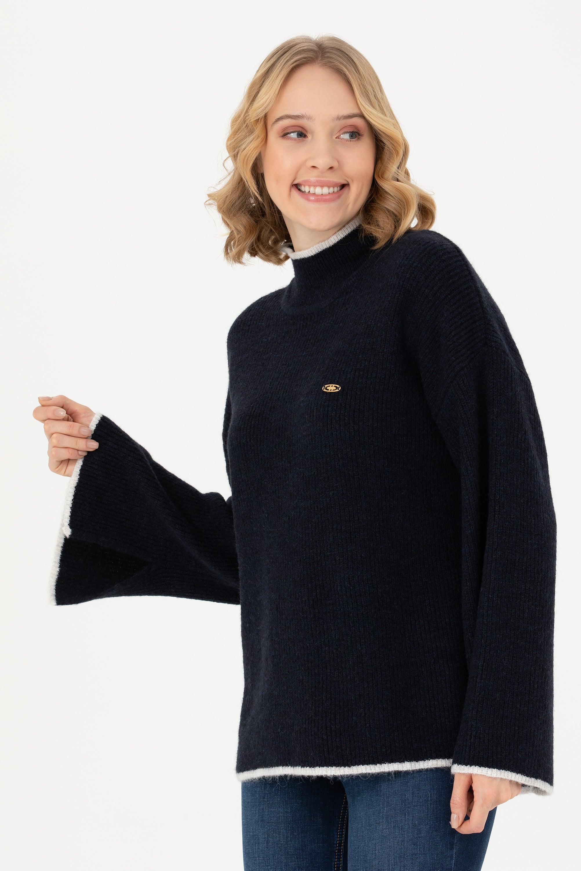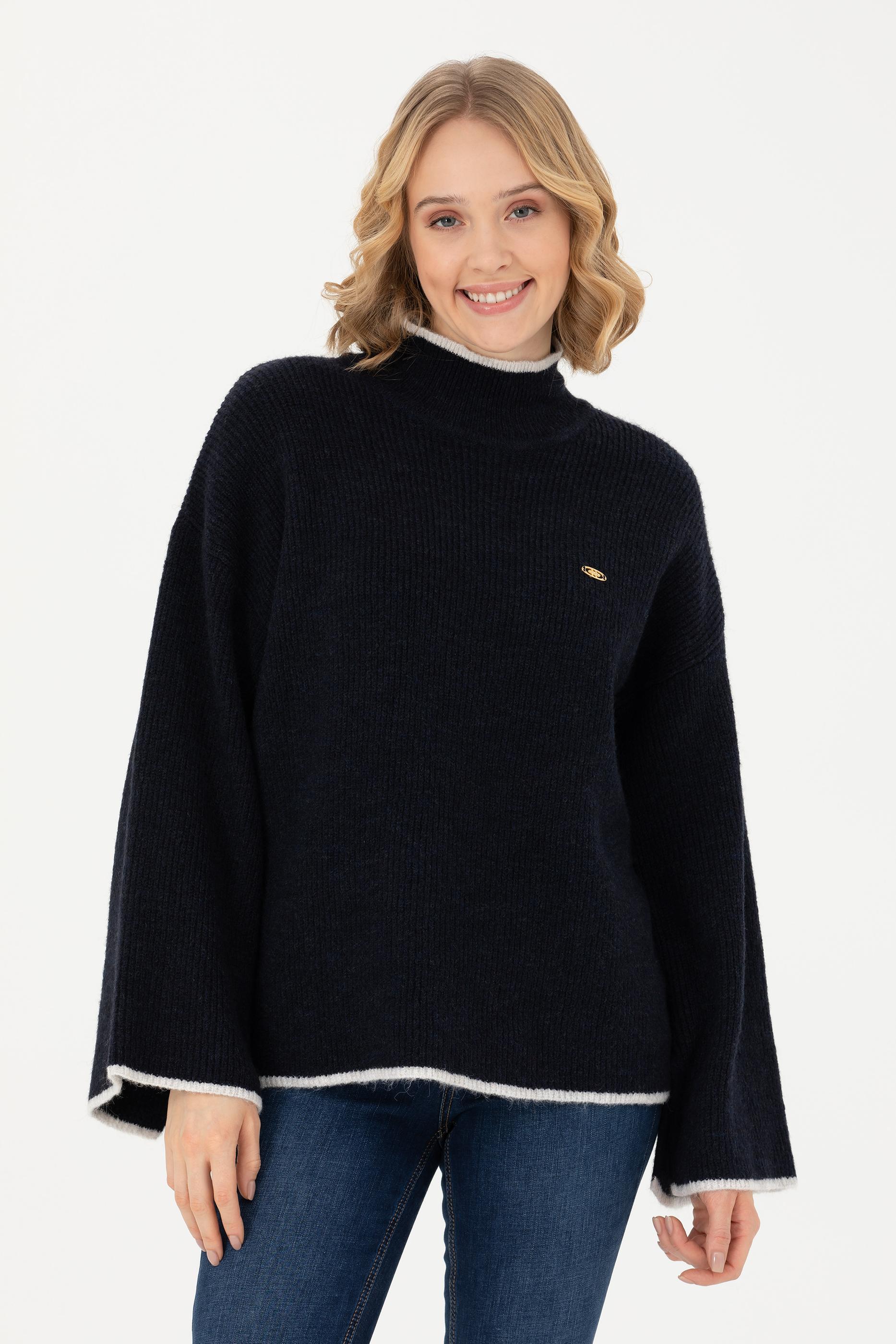 İnce detaylarla son derece şık ve göz alıcı bir parça haline gelen comfort fit kadın triko kazak modelimiz dik yakalıdır. Manşet kısmından yukarı doğru ilerleyen yırtmaç kol eklemesine sahip modelimiz, stil sahibi kadınların vazgeçilmezlerinden biridir. Polyester karışımlı iplikler kullanarak ürettiğimiz ve torba yaka forma sahip kadın triko kazak modelimize tek tıkla, sadece Online’da ulaşabilirsiniz.