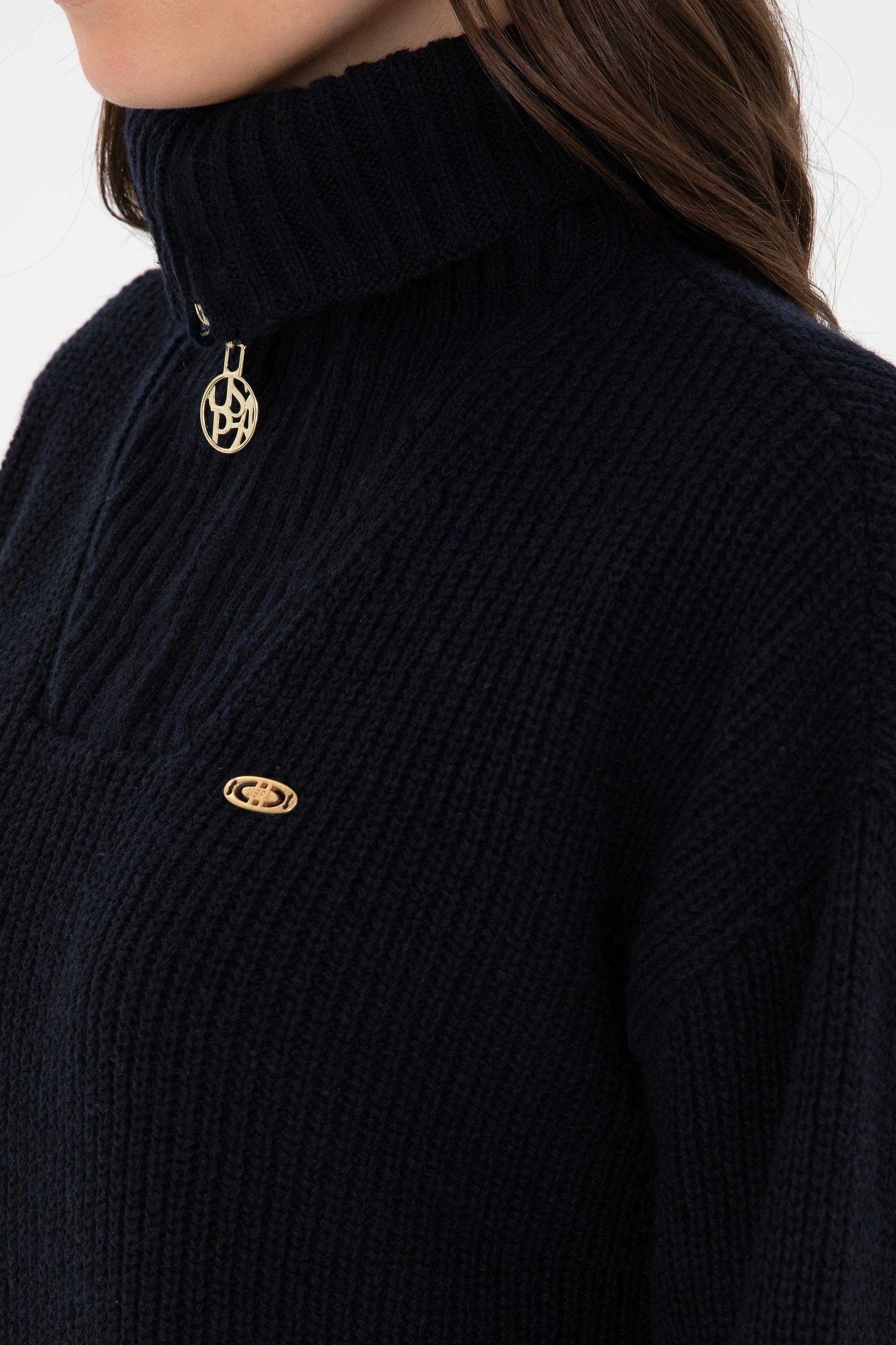 "name": "Kadın Lacivert V Yaka Fermuarlı Kazak",
