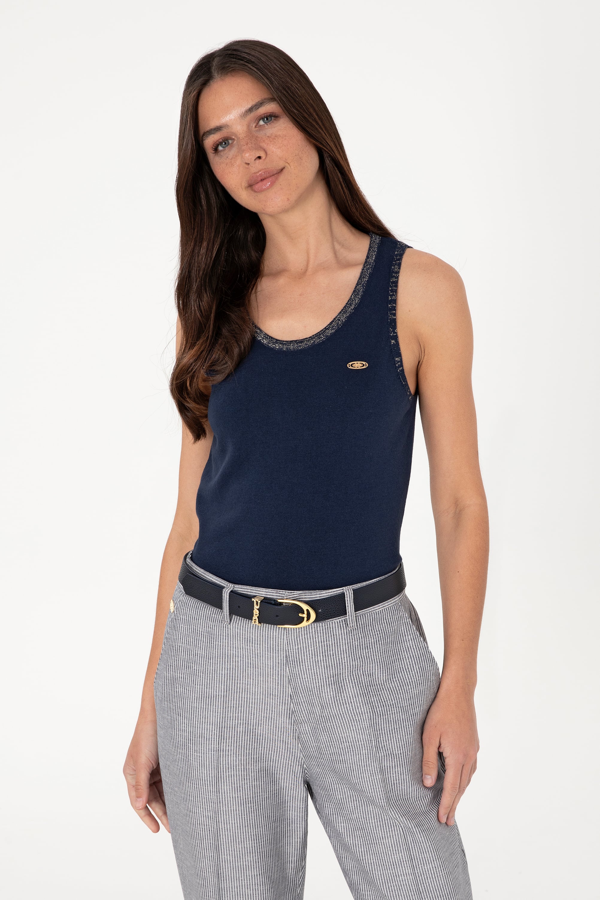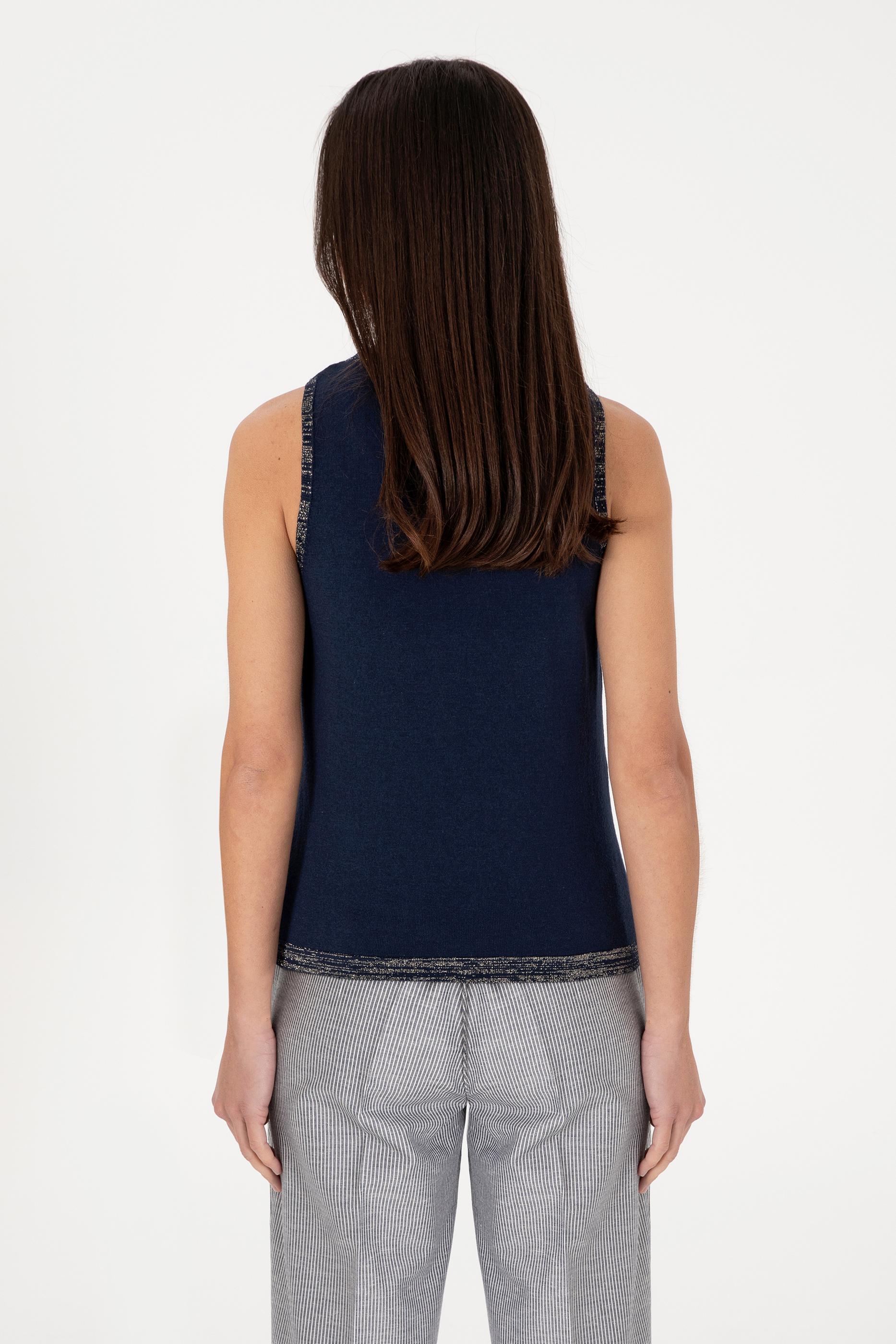 Kadın Lacivert Bisiklet Yaka Triko Tişört