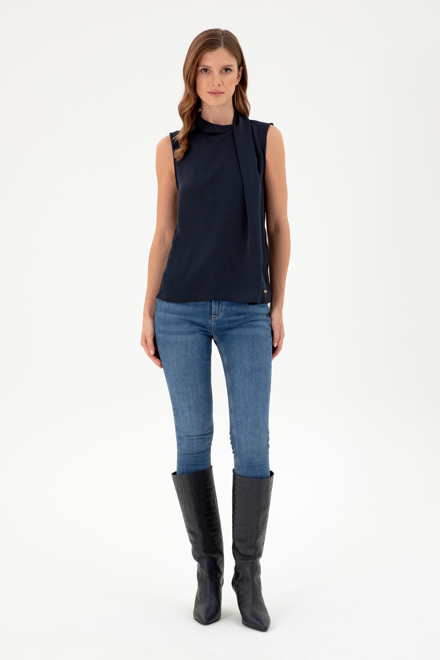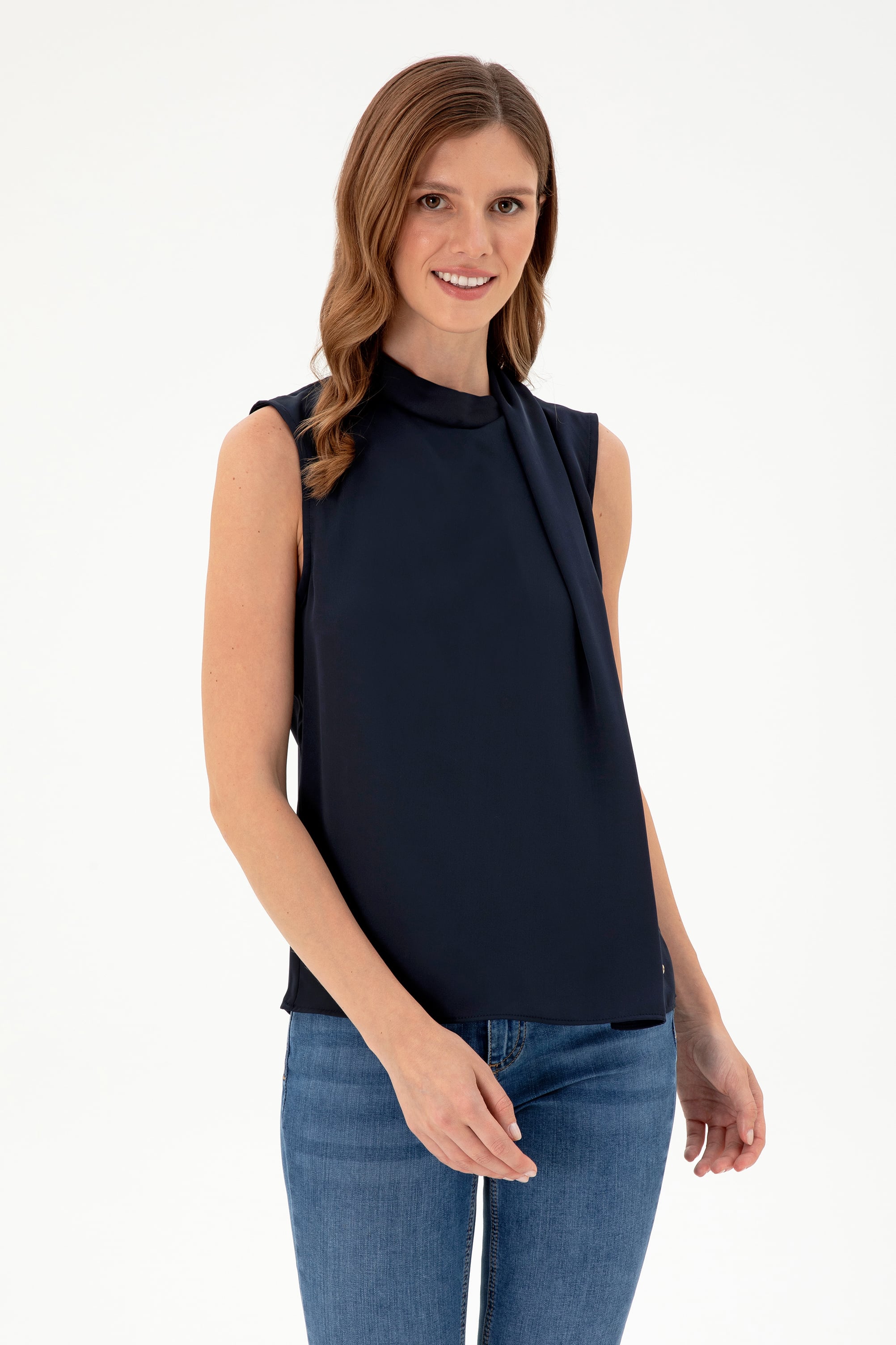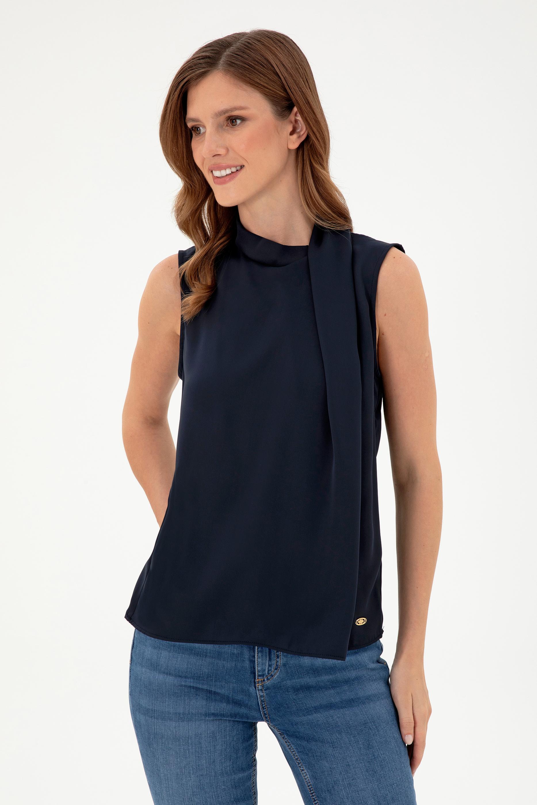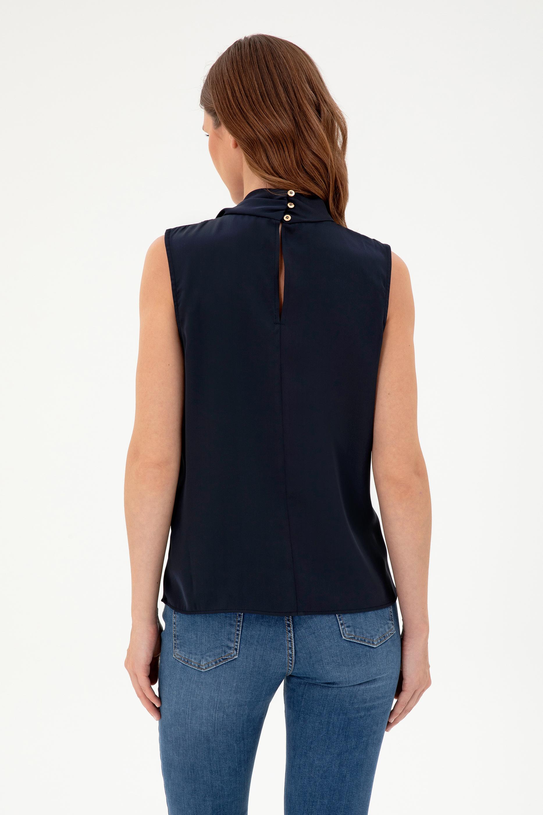 Kadın Lacivert Kolsuz Bluz