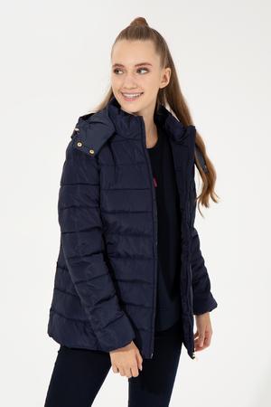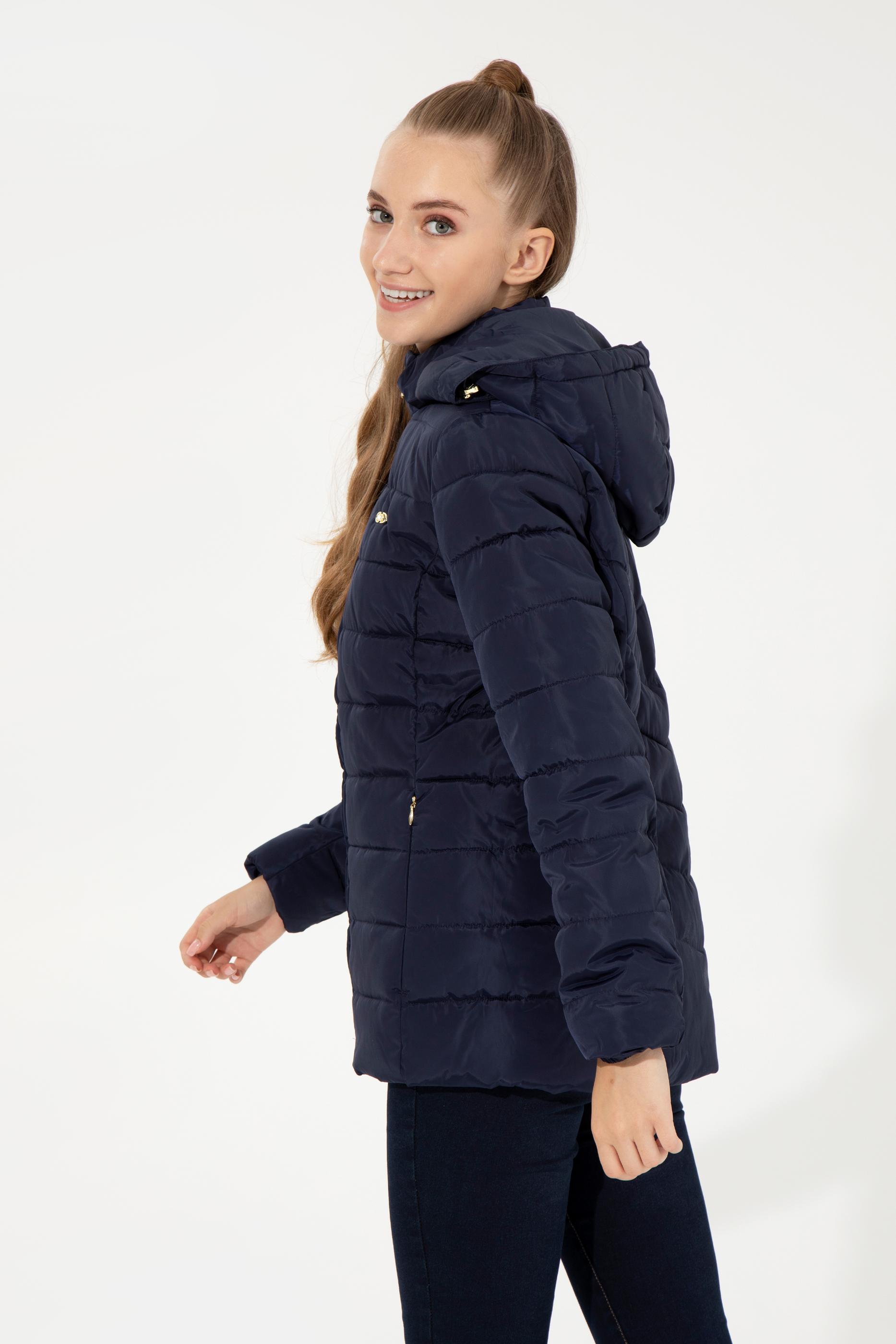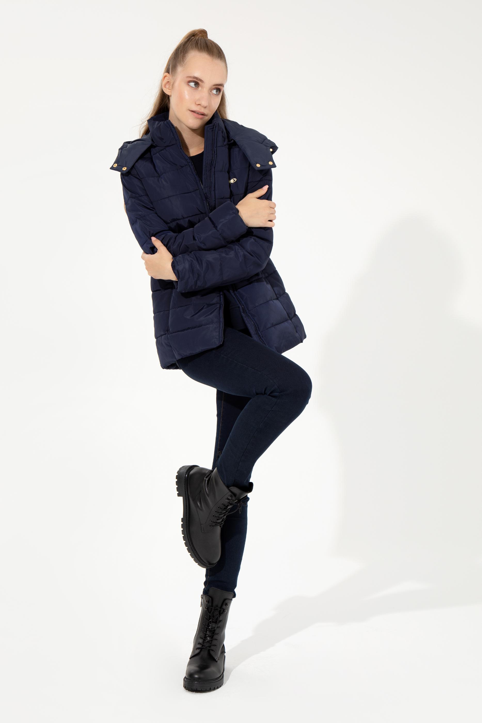 Hava ve su geçirgenliğinin az olmasıyla bilinen polyesterden imal edilen kadın mont modelimiz sıcacık bir kış geçirmenizi sağlıyor. Modelimizin tasarımında yer alan kapüşon yağmur, kar ve rüzgar gibi olumsuz hava koşullarından sizleri koruyor. Kapüşonlu mont modelimizin fermuarlı tasarımı soğuk havayı tamamen kesiyor. Hoş rengiyle dikkat çeken kadın lacivert mont, standart fit kesimiyle de ekstra rahatlık sunuyor.