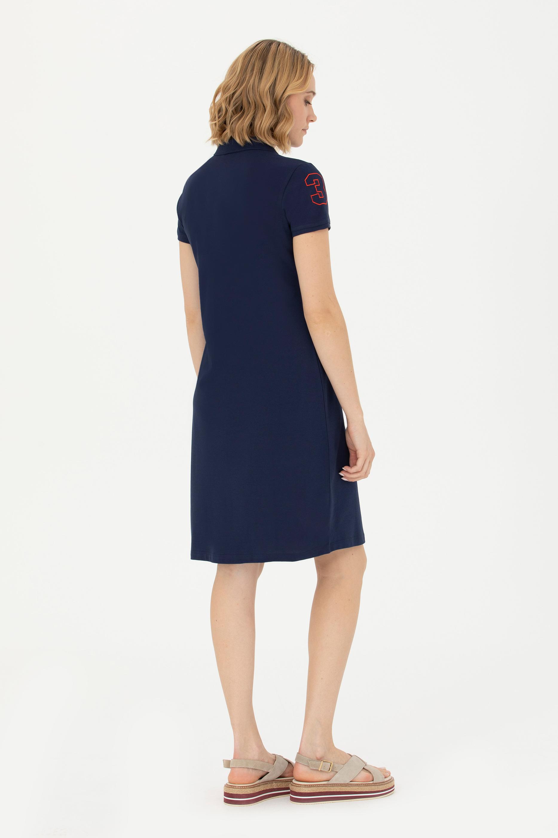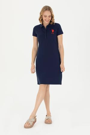 Kadın Lacivert Polo Yaka Örme Elbise