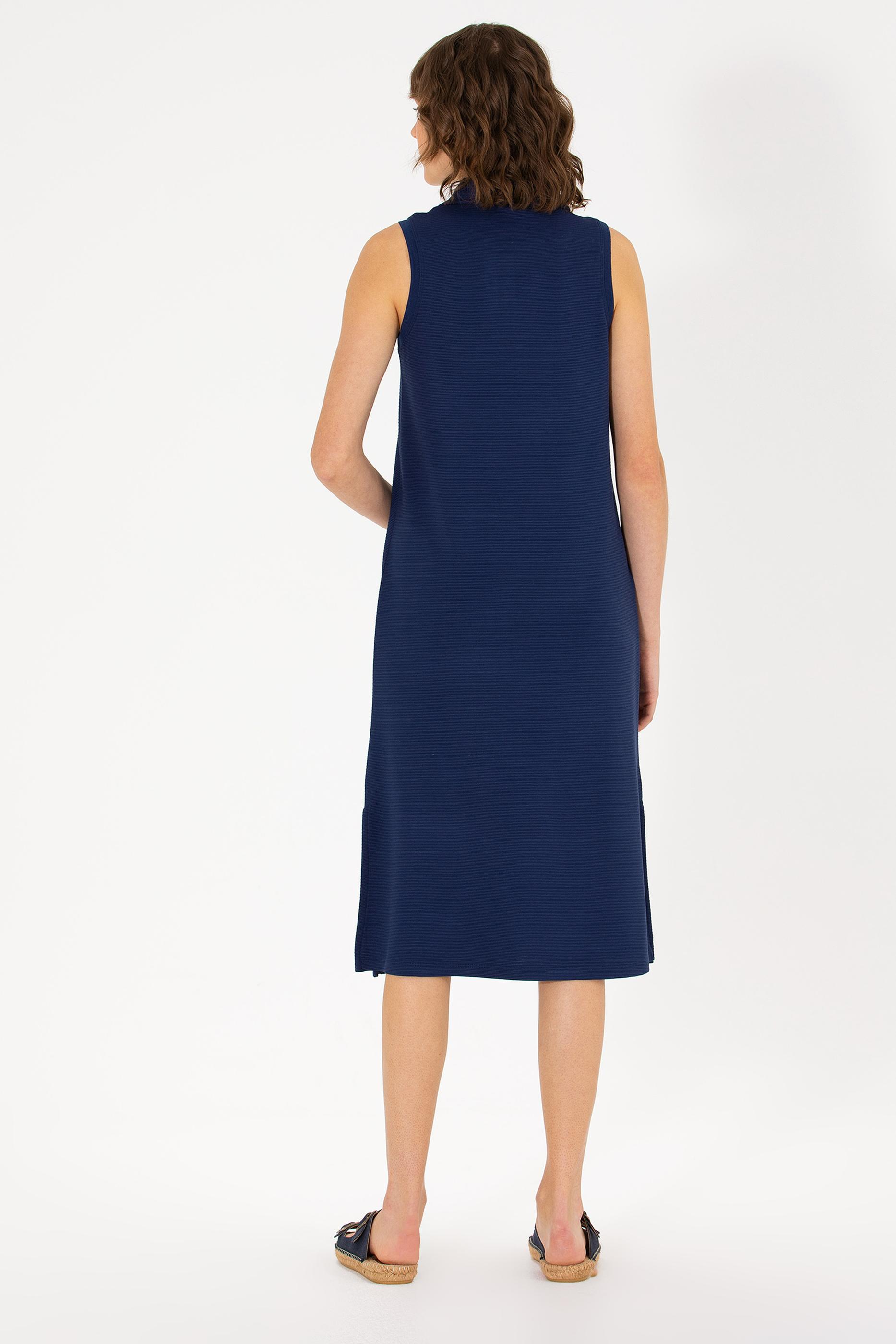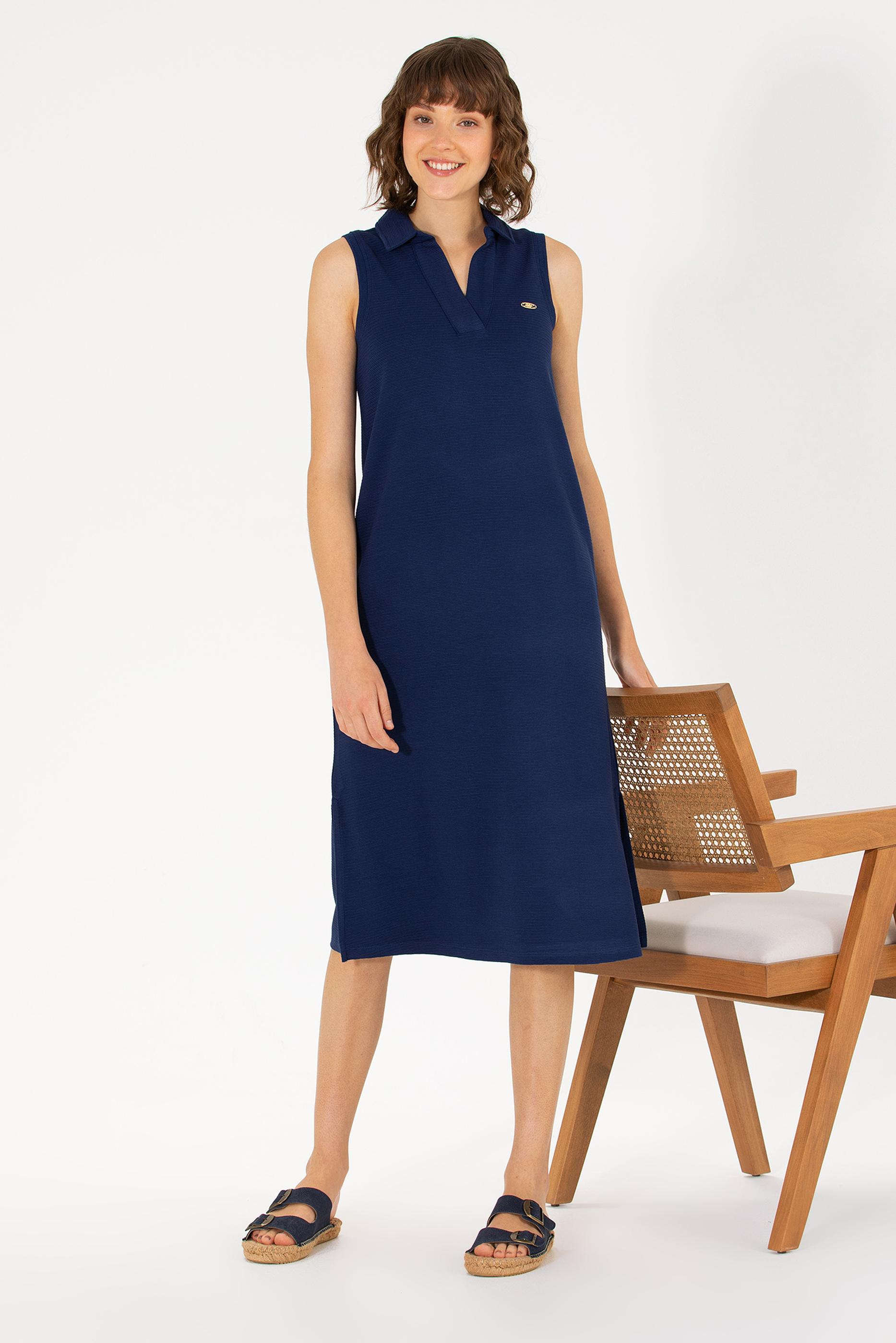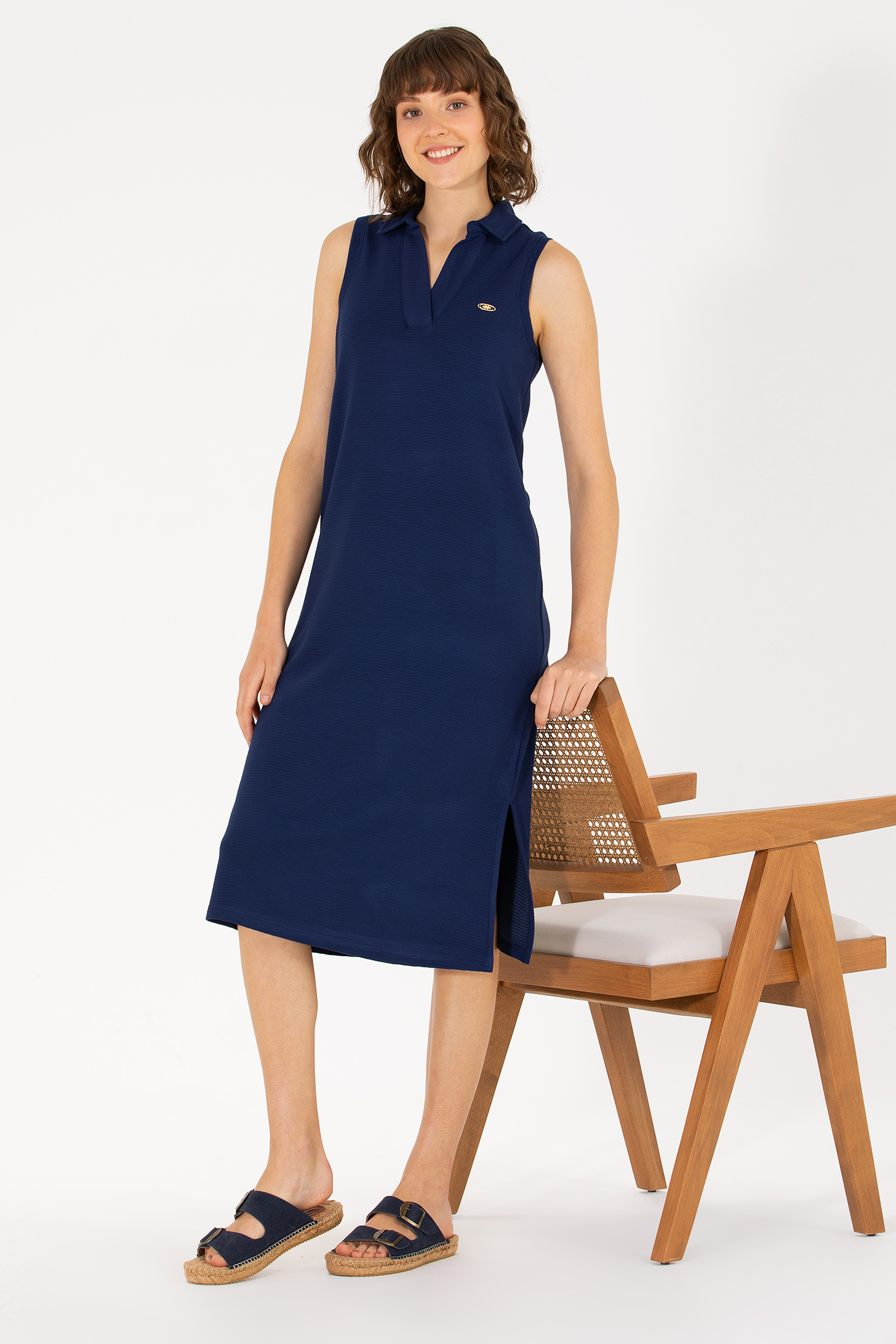 - Kadın Lacivert Polo Yaka Örme Elbise