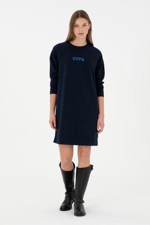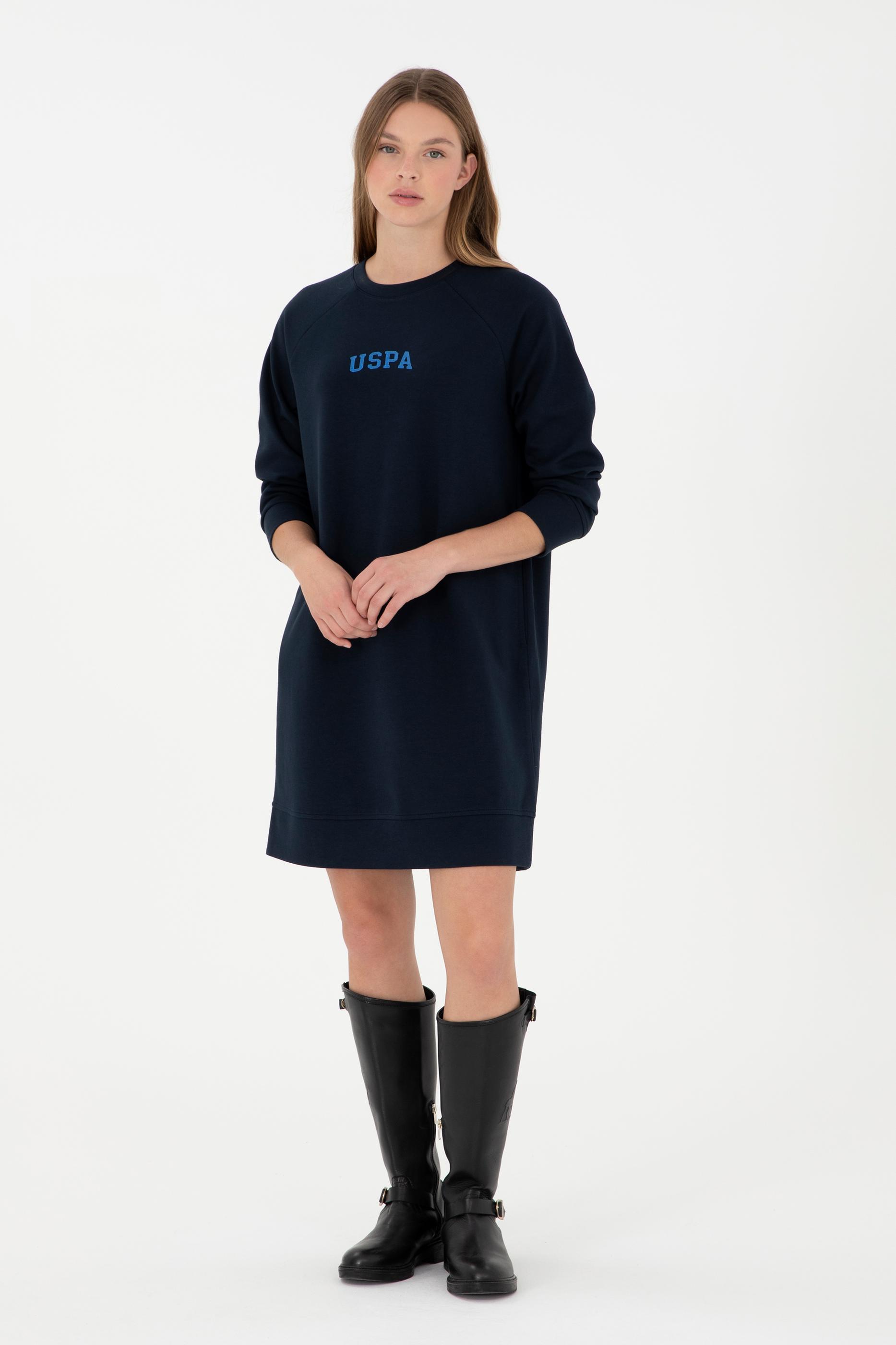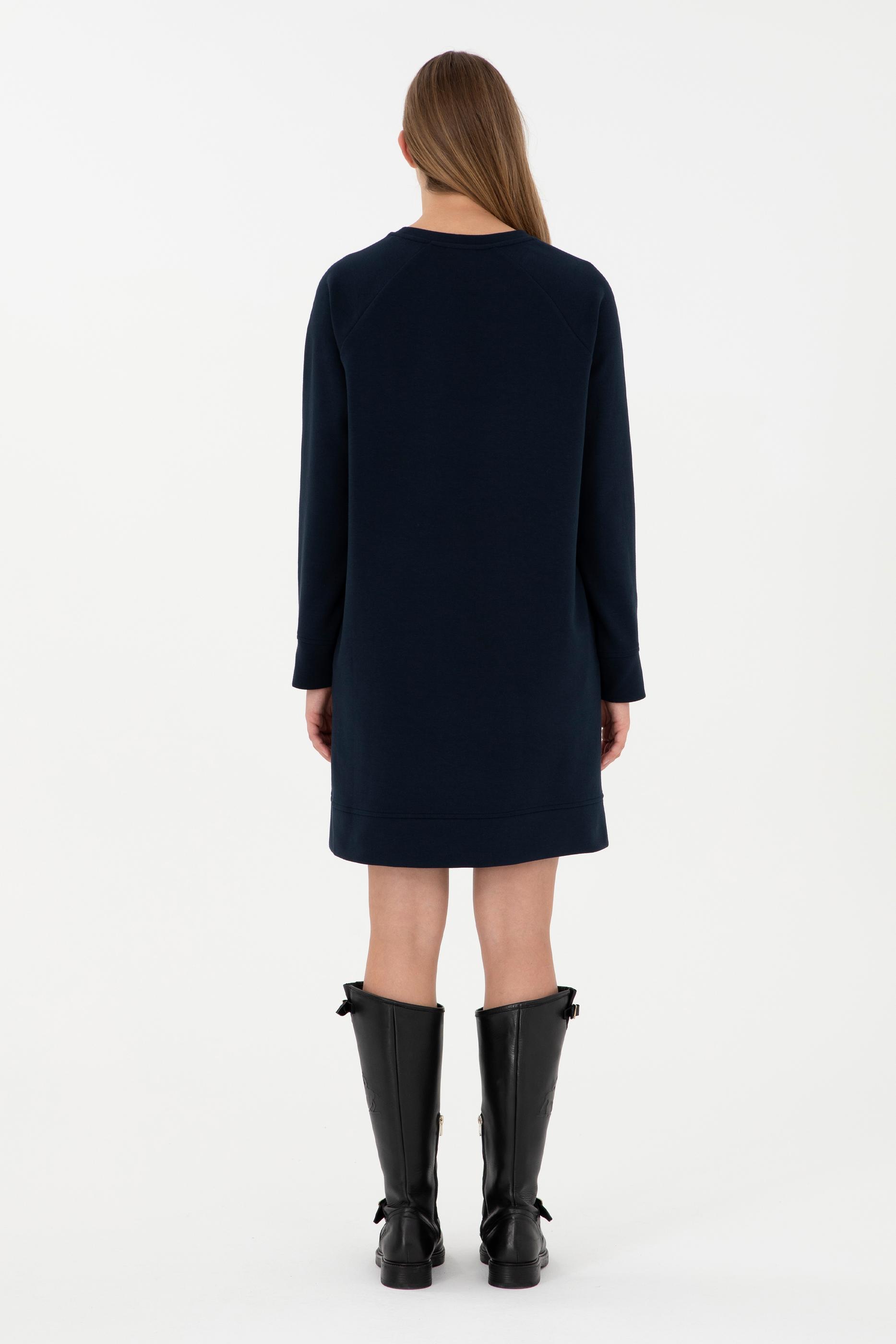 Kadın Lacivert Sweatshirt Bisiklet Yaka Mini Boy Örme Elbise