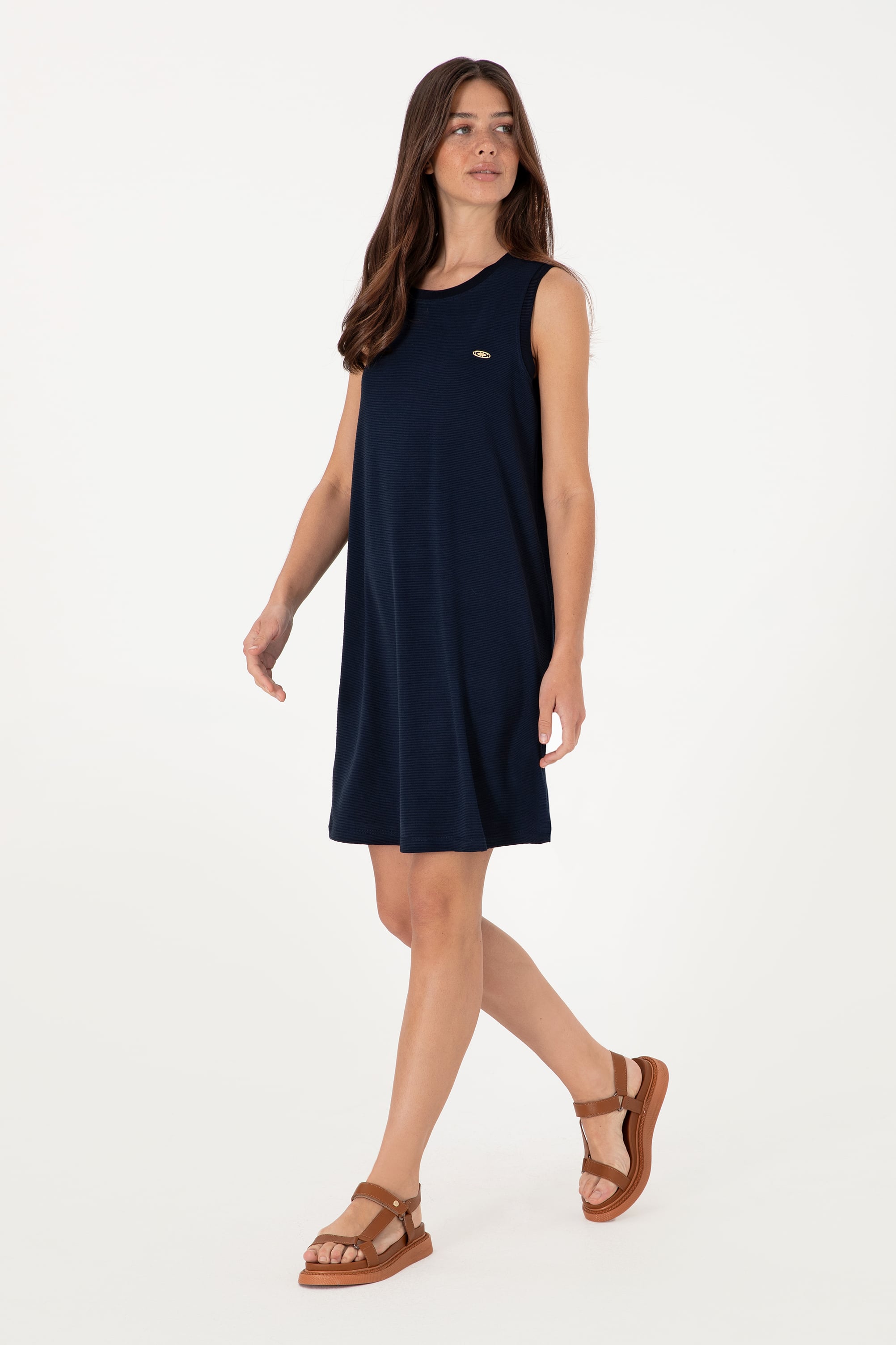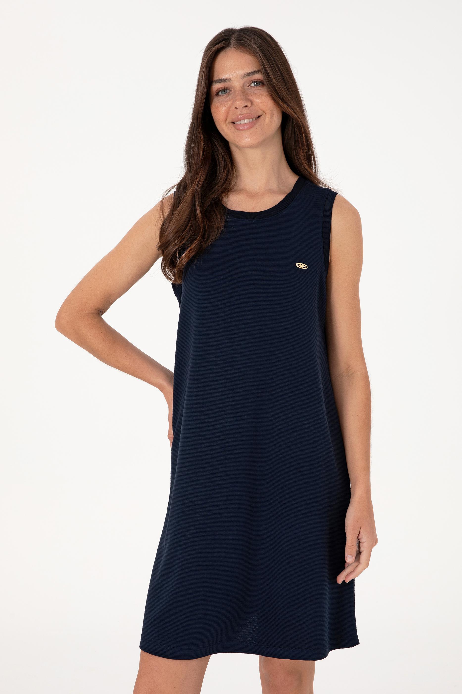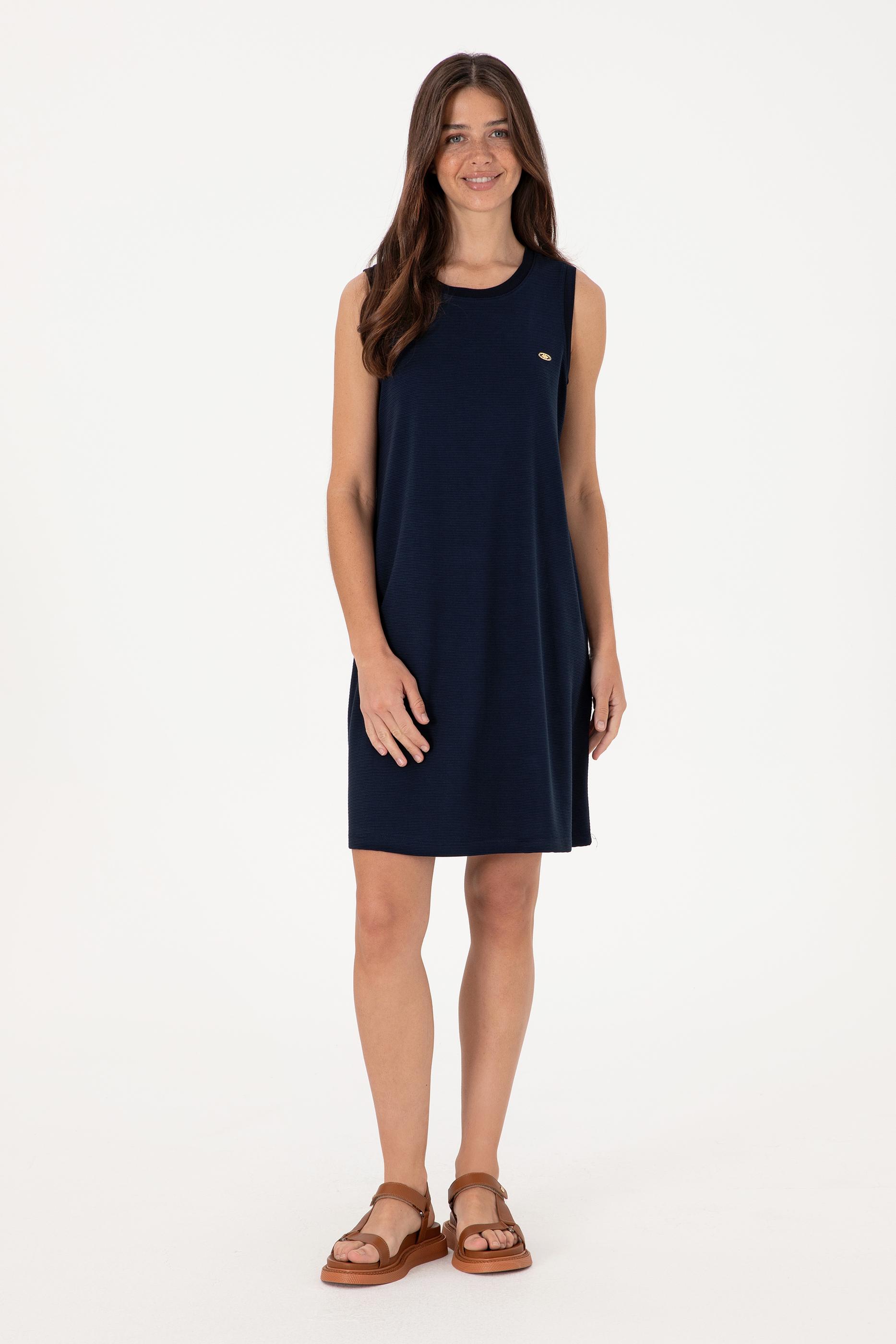 Kadın Lacivert Kolsuz Mini Boy Örme Elbise
