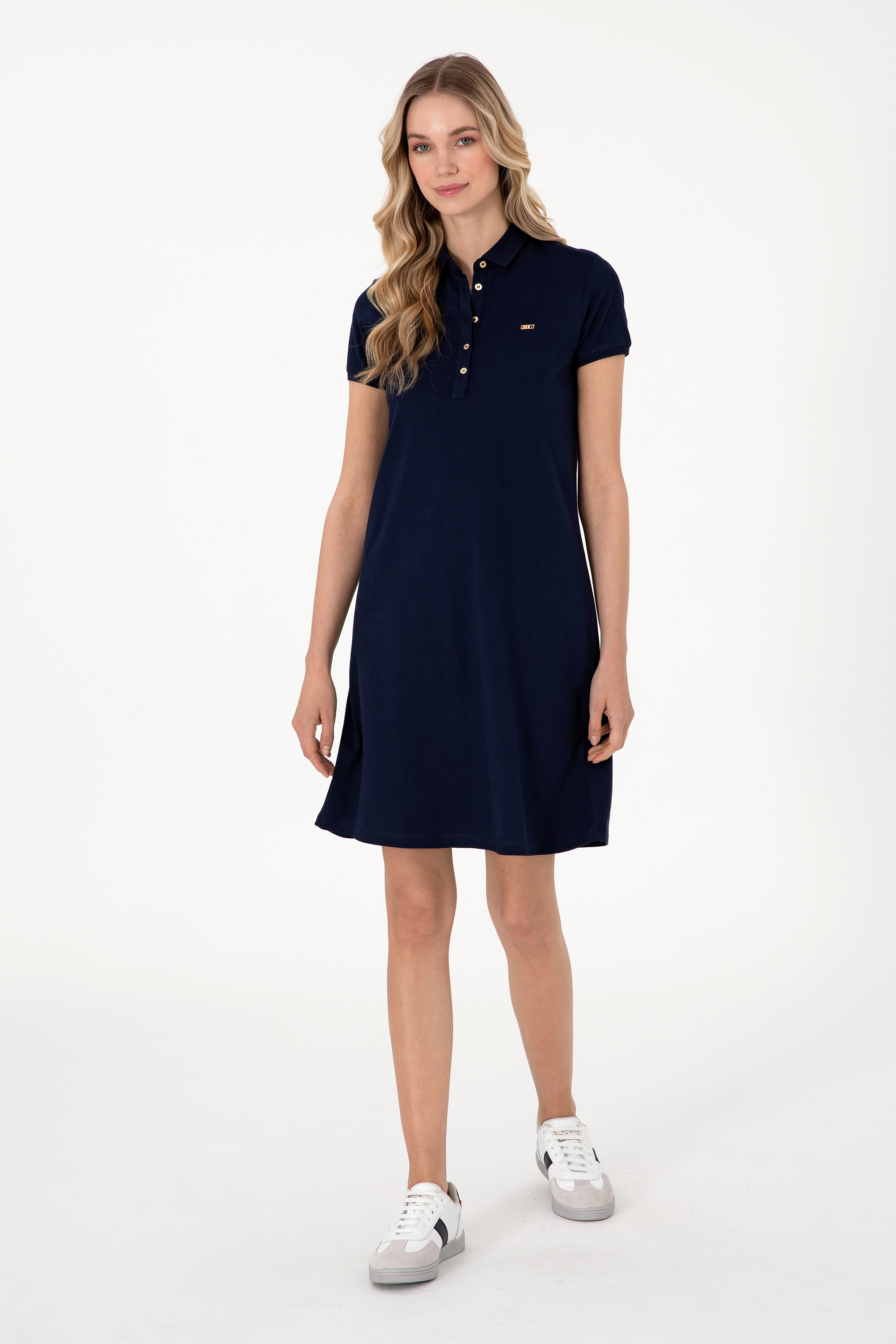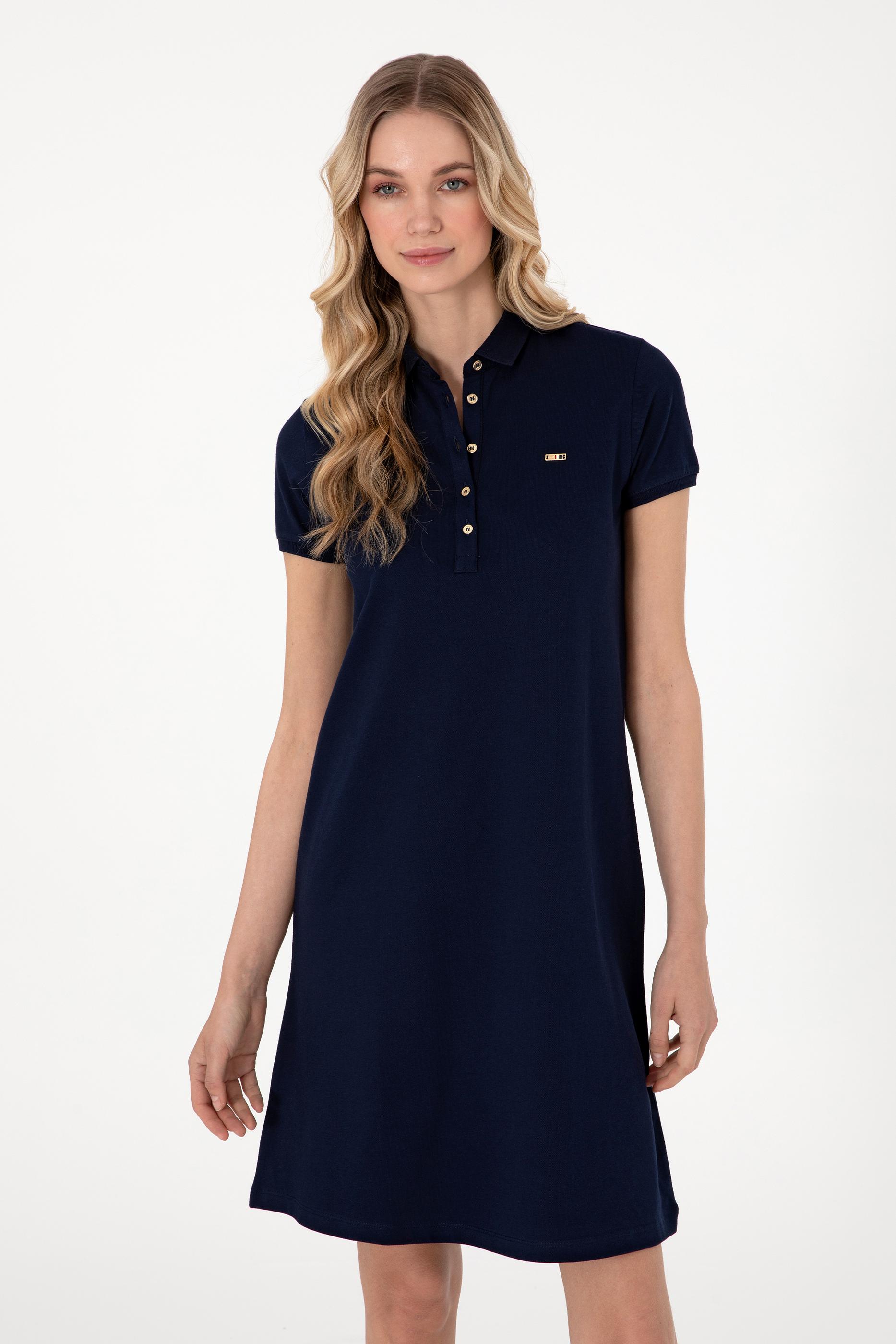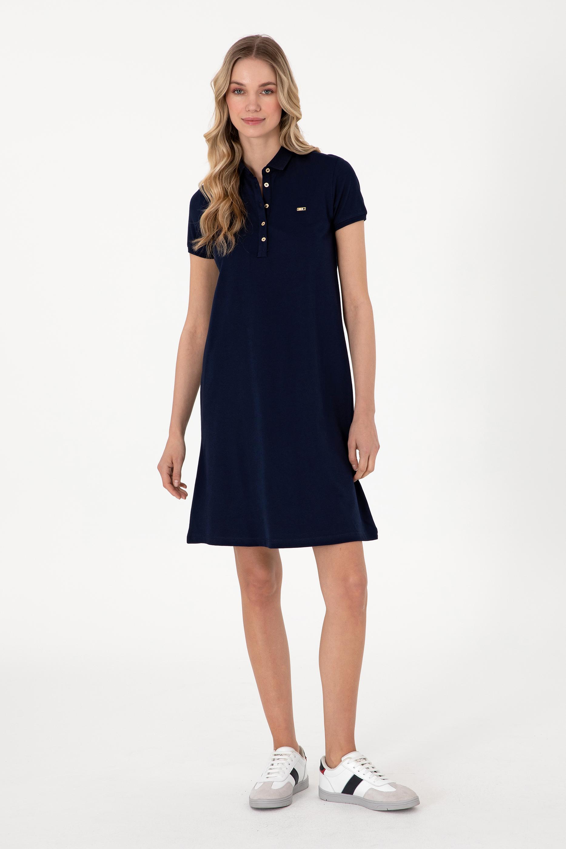 Kadın Lacivert Polo Yaka Mini Boy Örme Elbise - 50305853023