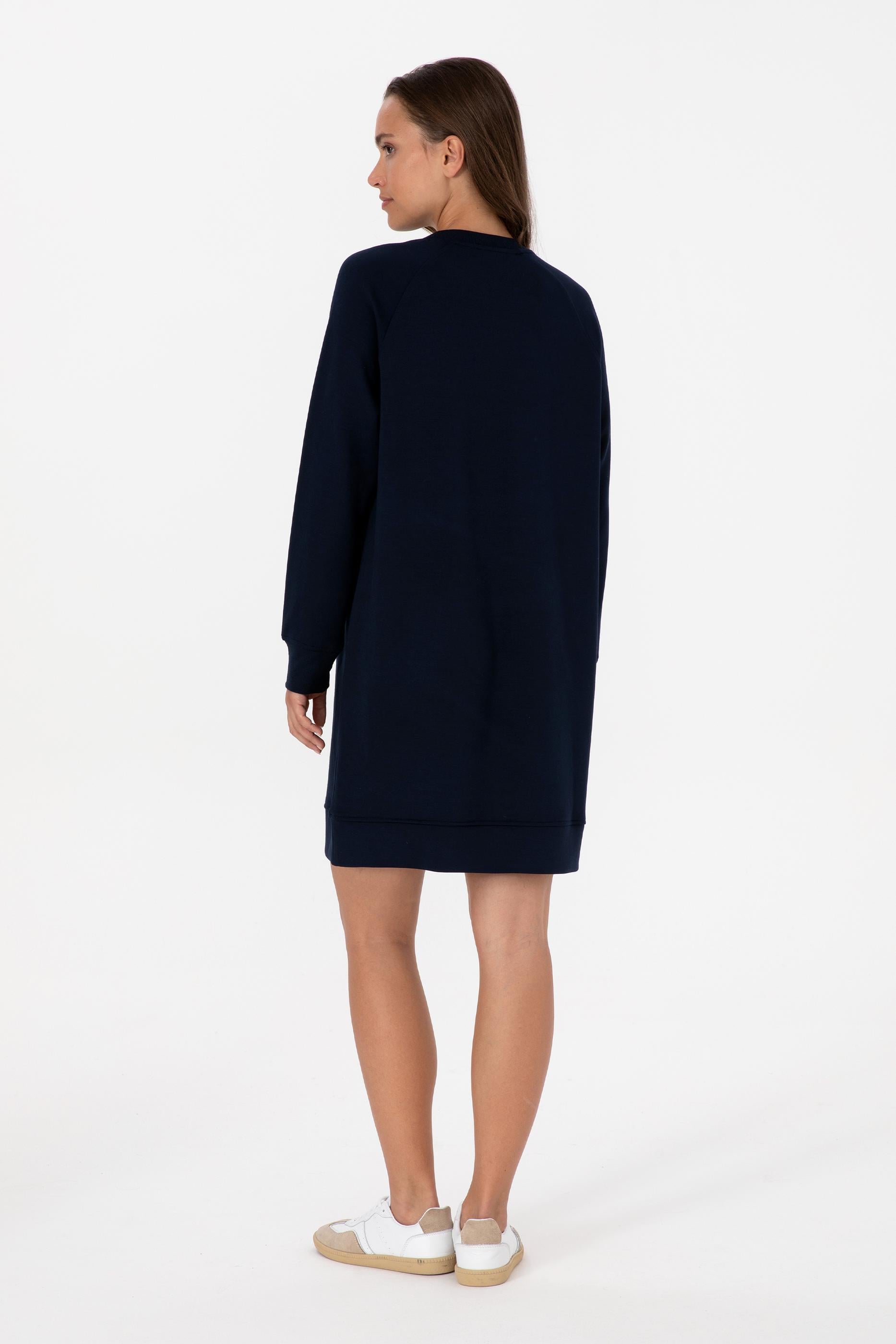 Kadın Lacivert Modal Karışımlı Mini Boy Bisiklet Yaka Örme Elbise