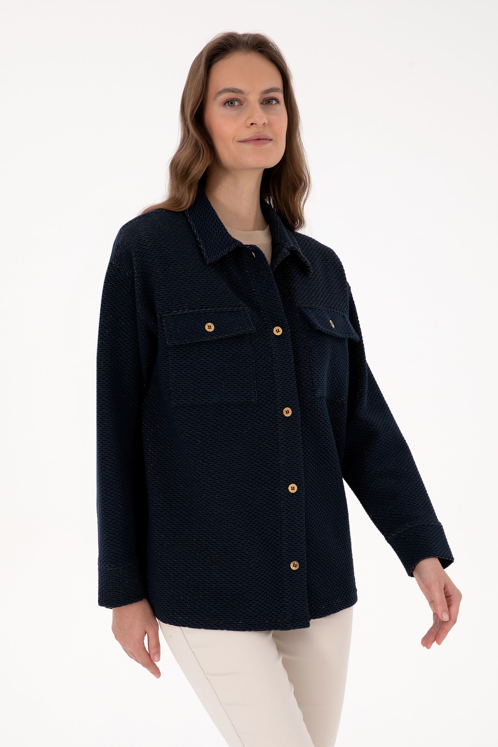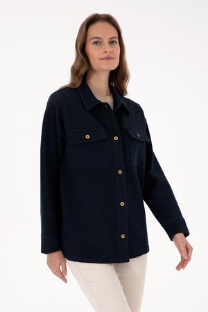 Kadın Lacivert Örme Gömlek