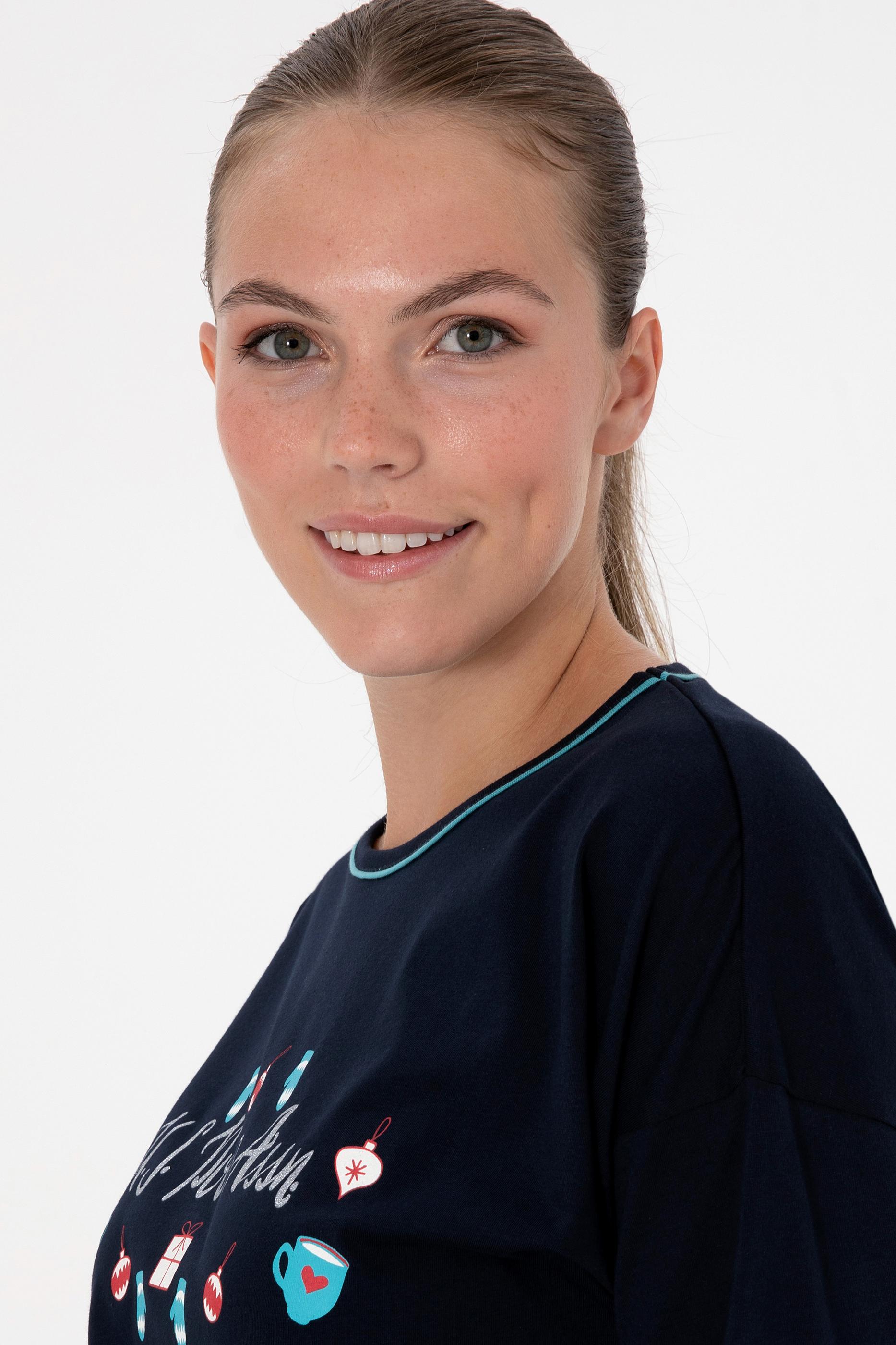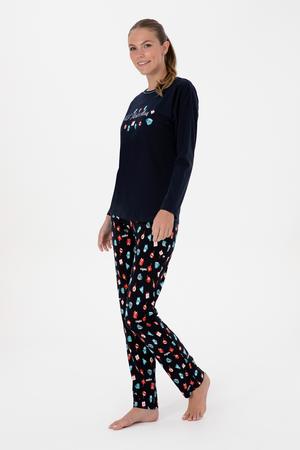 Kadın Lacivert Yılbaşı Temalı Pijama Takımı