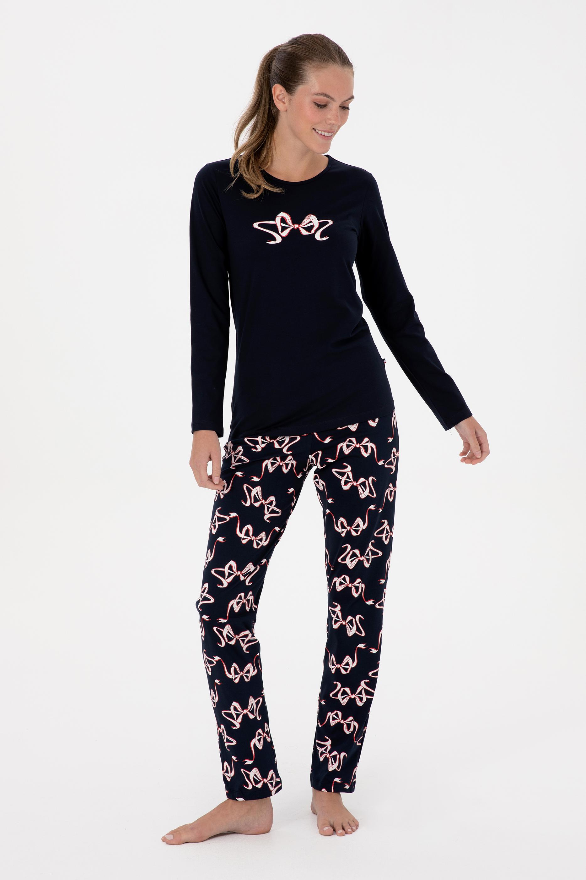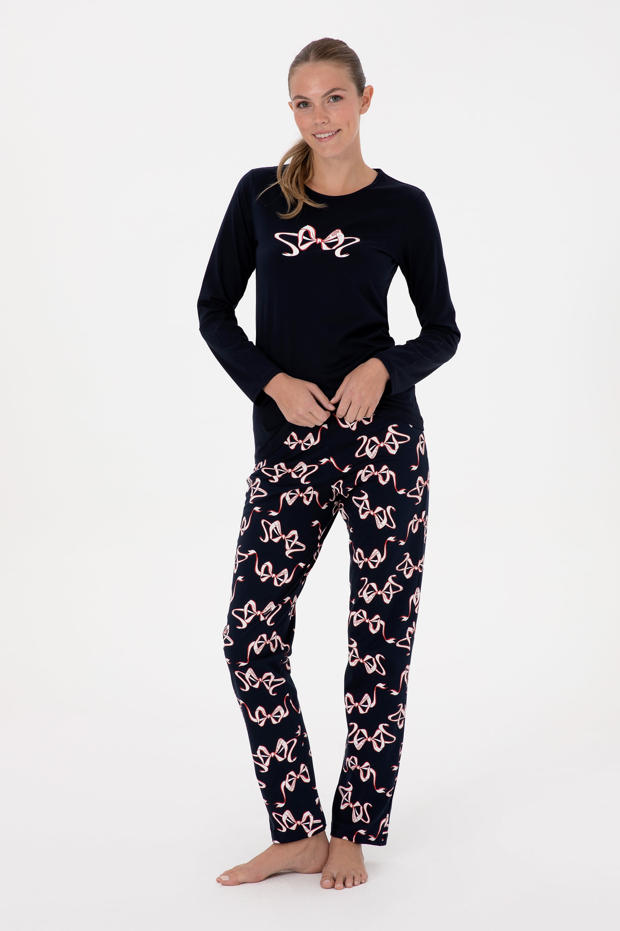 Kadın Lacivert Yılbaşı Temalı Pijama Takımı