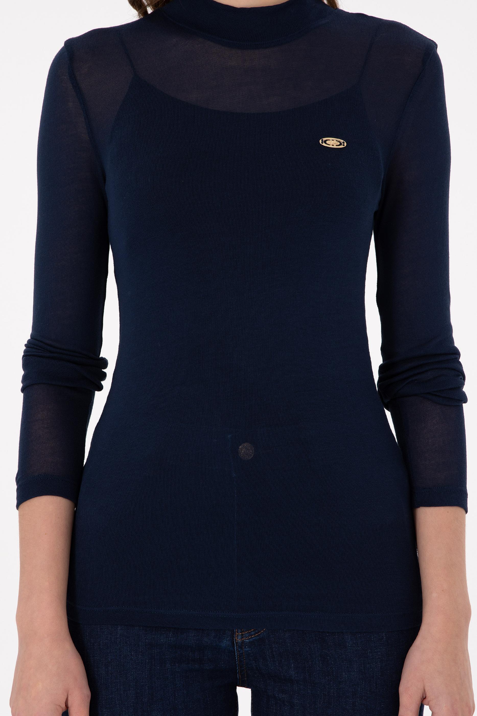 - Kadın Lacivert Balıkçı Yaka Sweatshirt