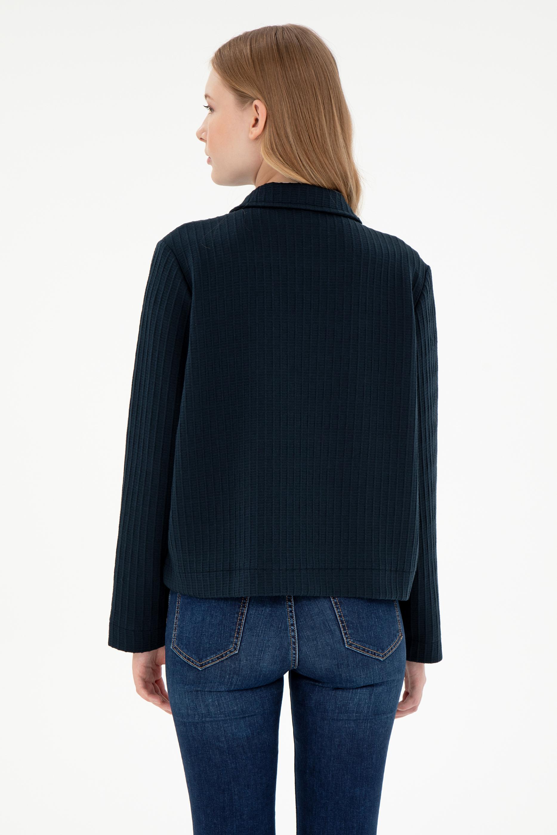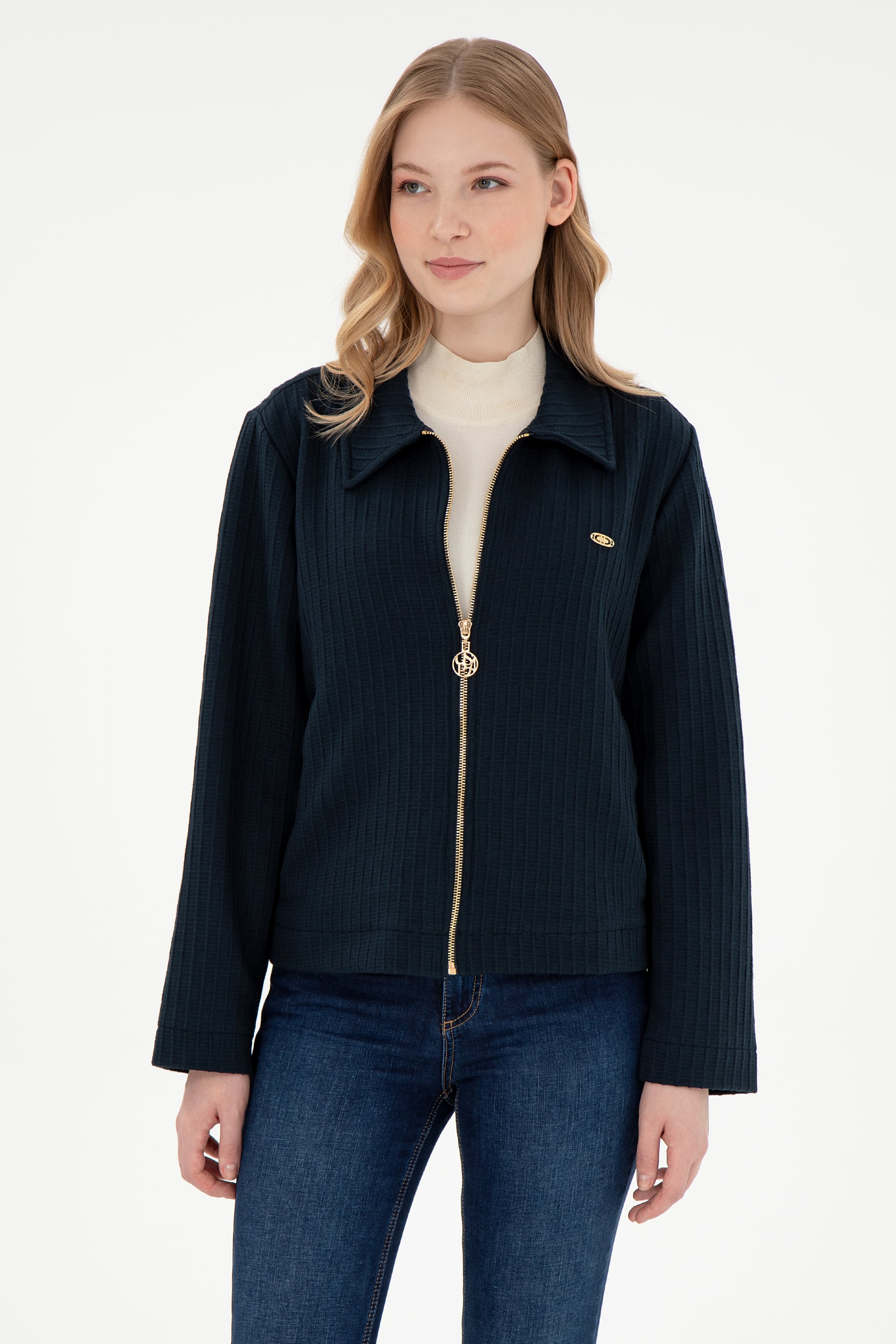 - Kadın Lacivert Fermuarlı Polo Yaka Sweatshirt
