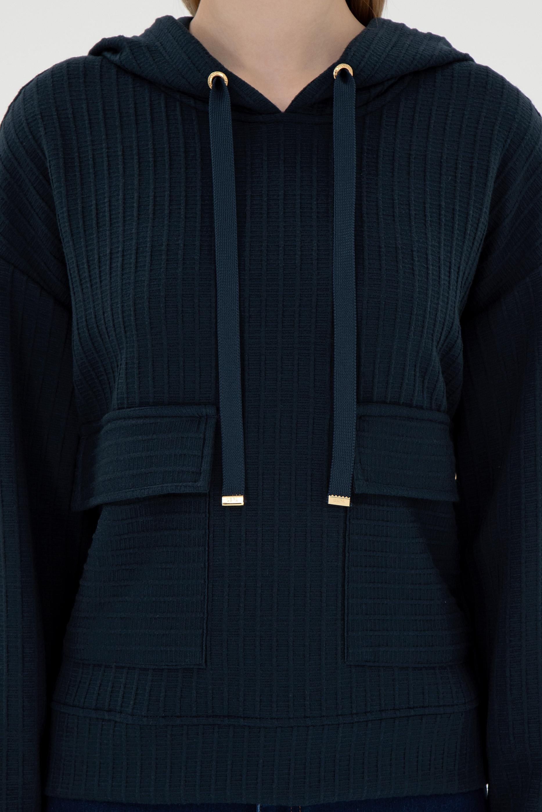 - Kadın Lacivert Kapüşonlu Sweatshirt