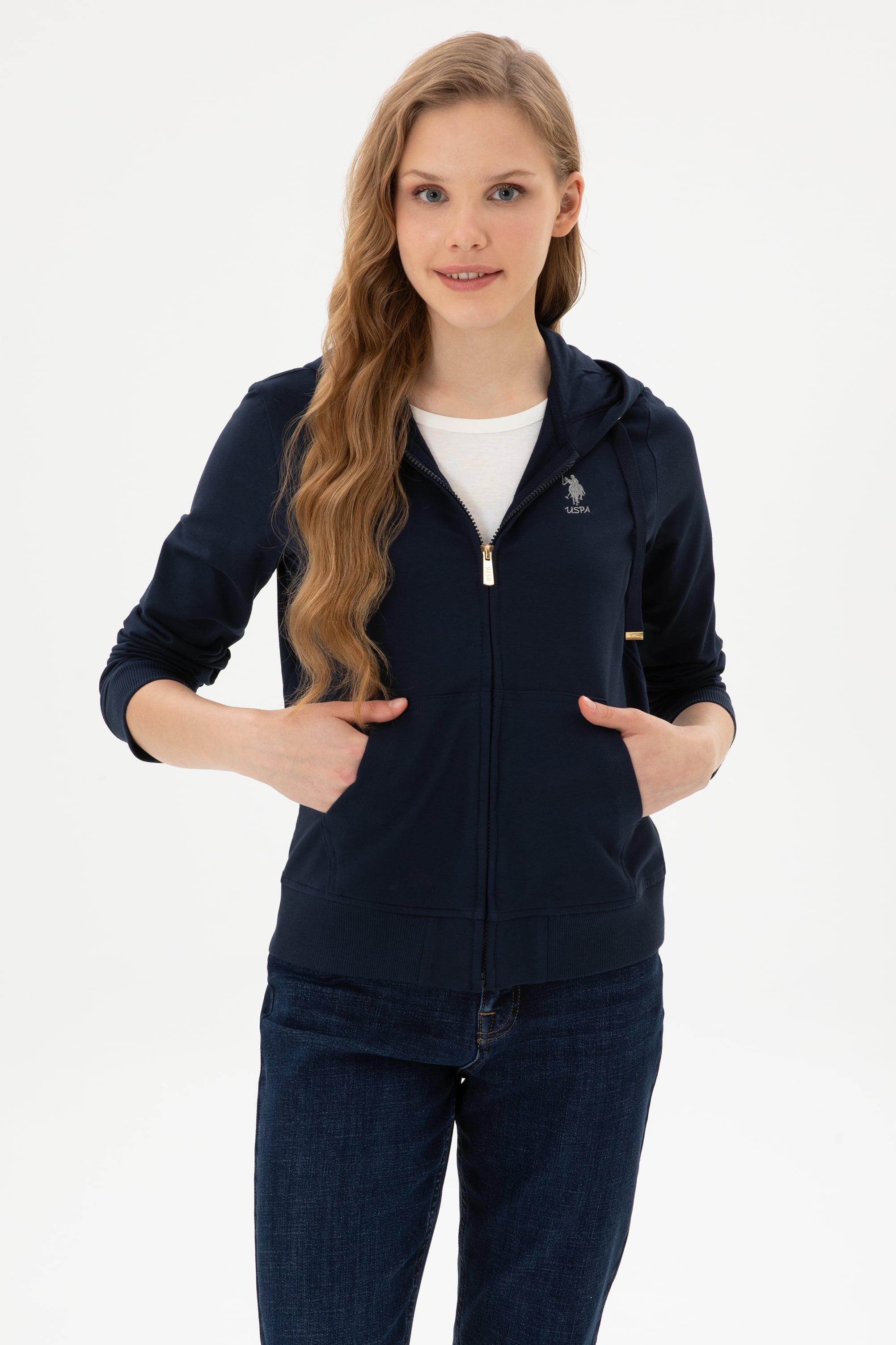 Kadın Lacivert Fermuarlı Kapüşonlu Sweatshırt