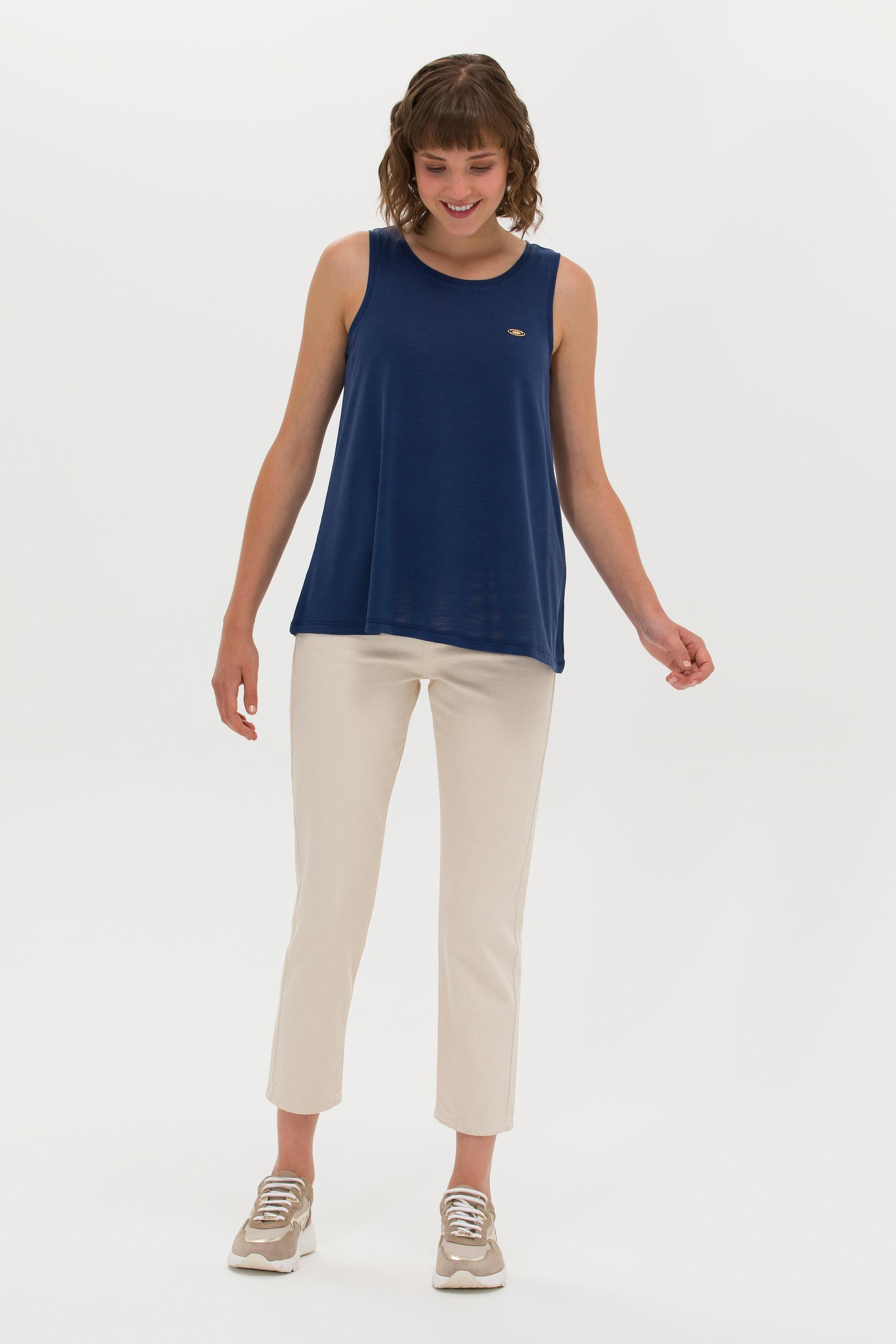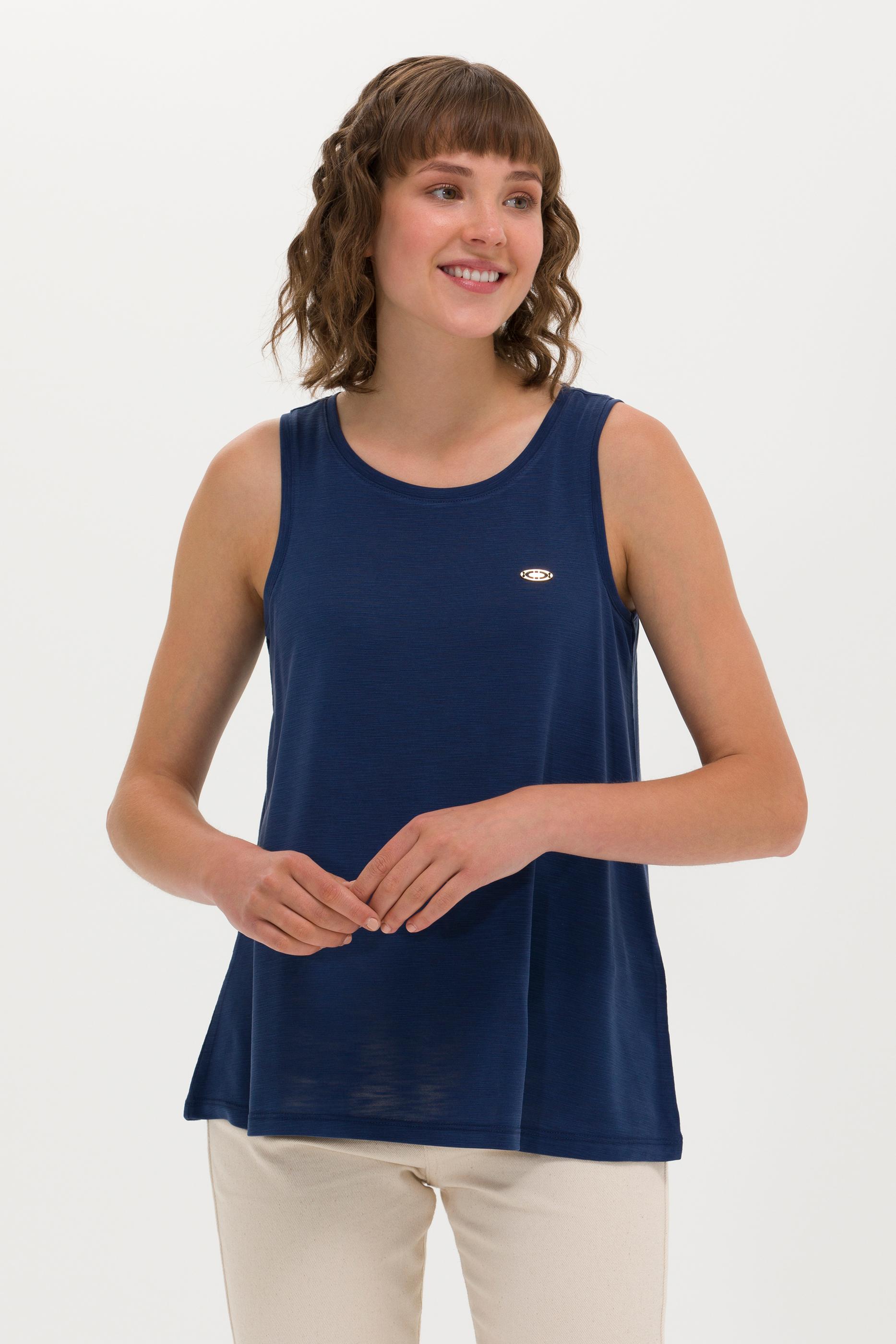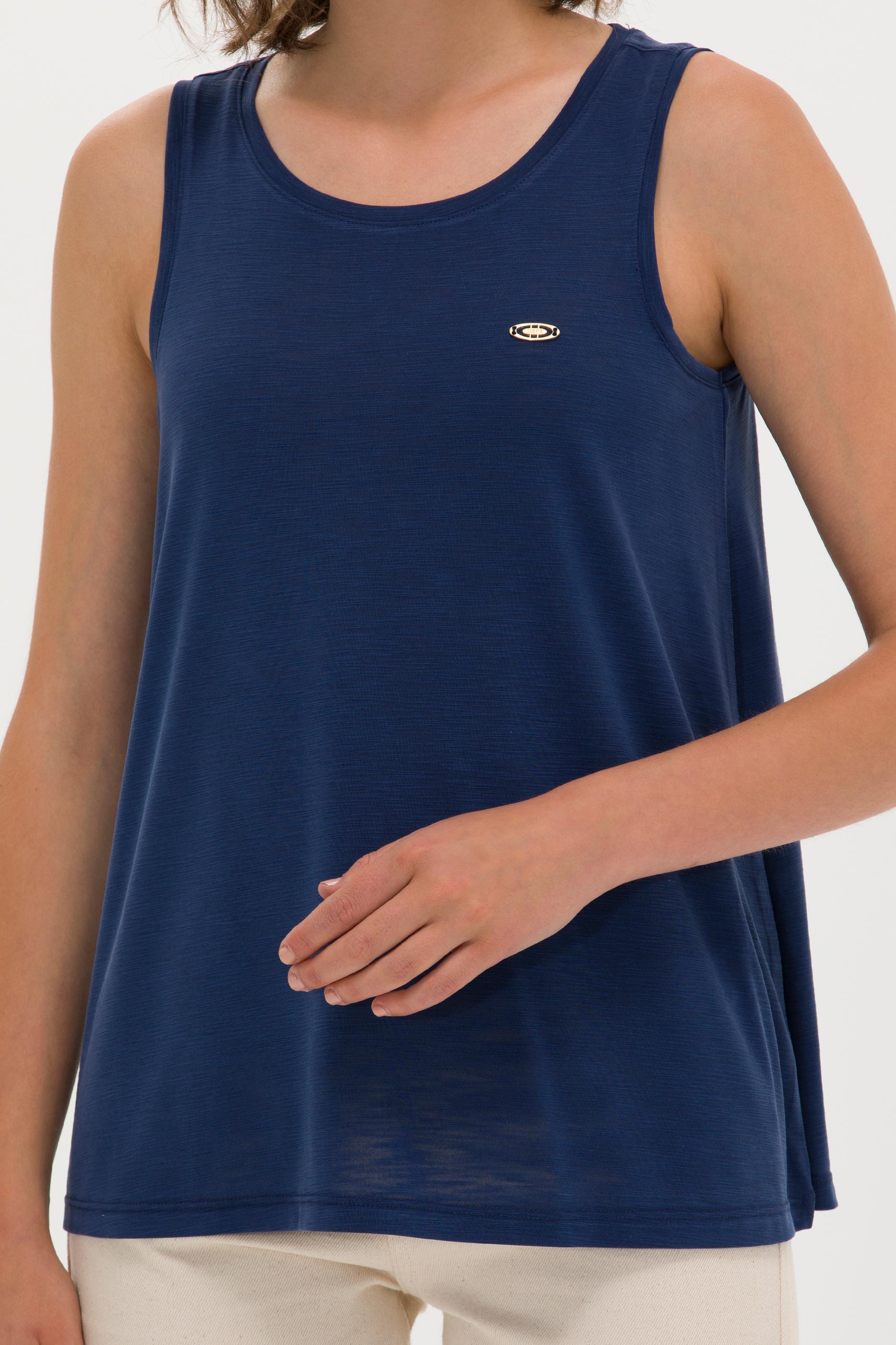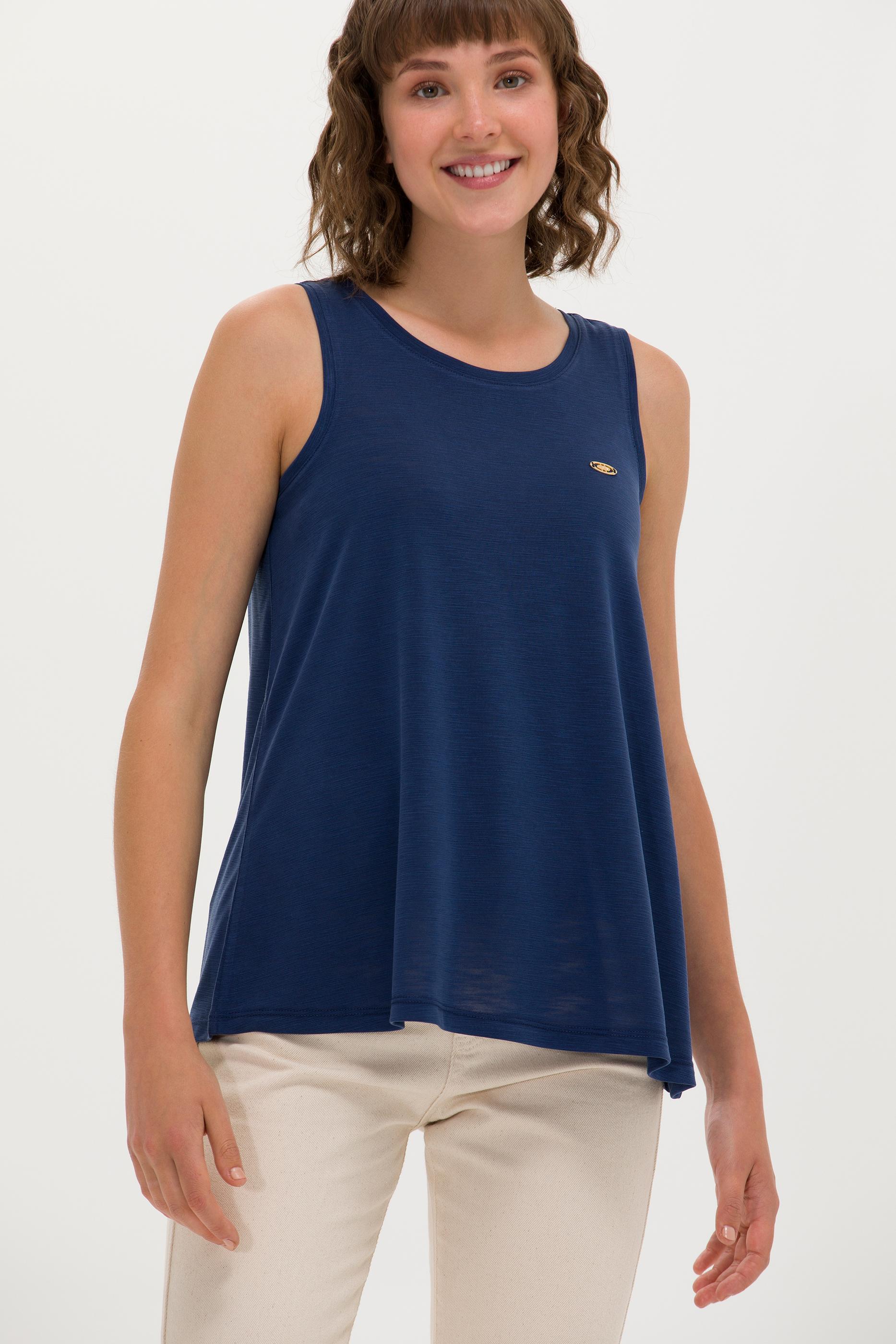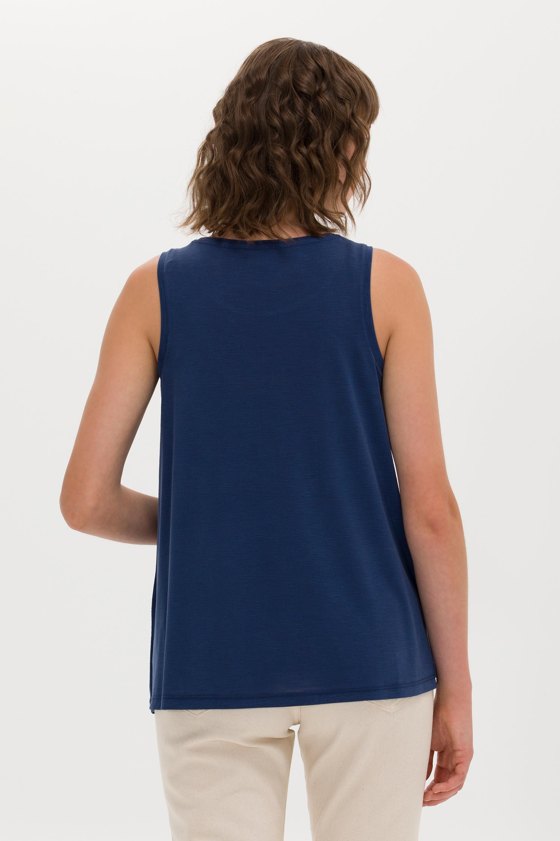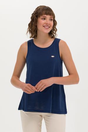 Kadın Lacivert Bisiklet Yaka Kolsuz Tişört