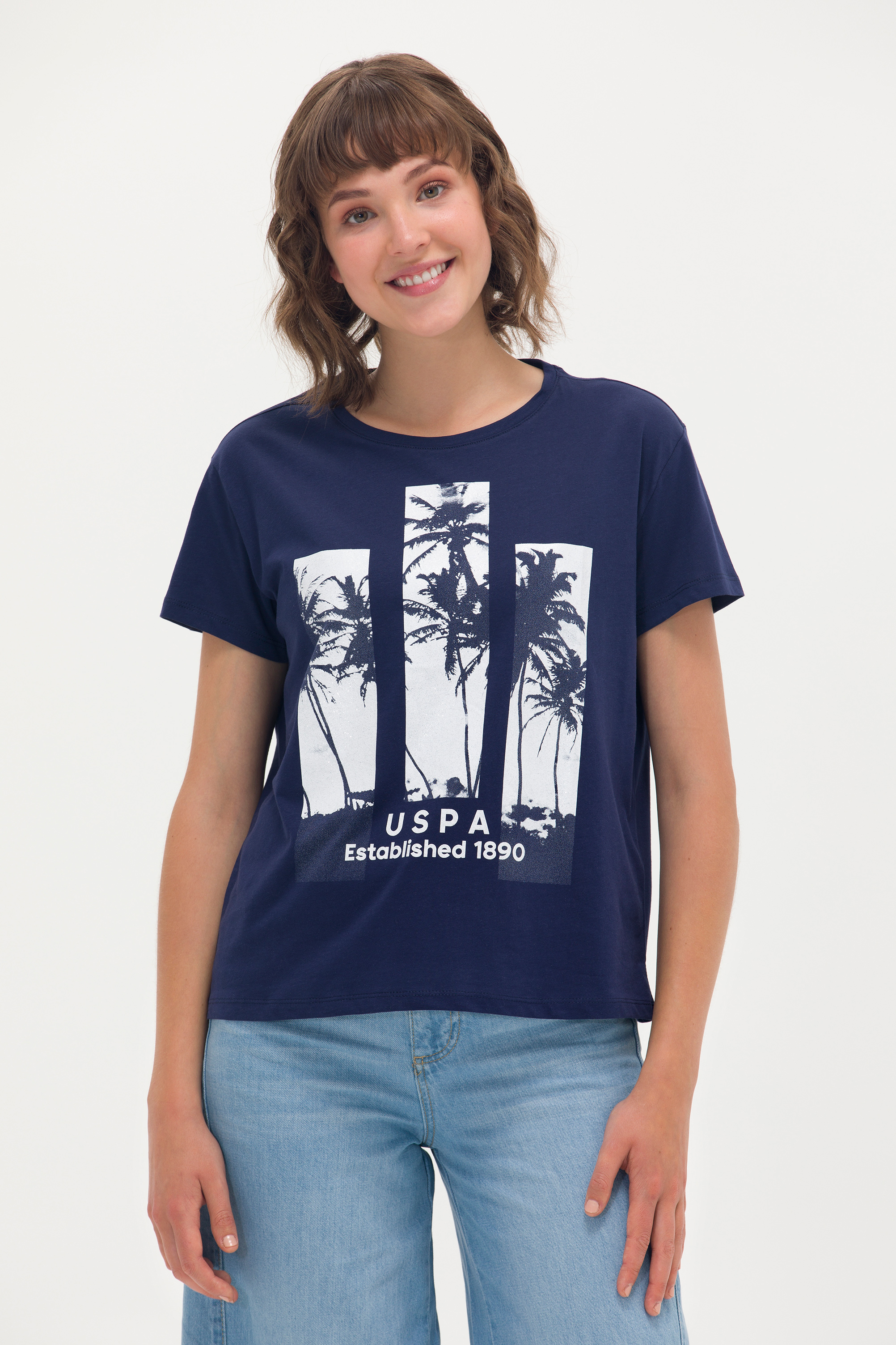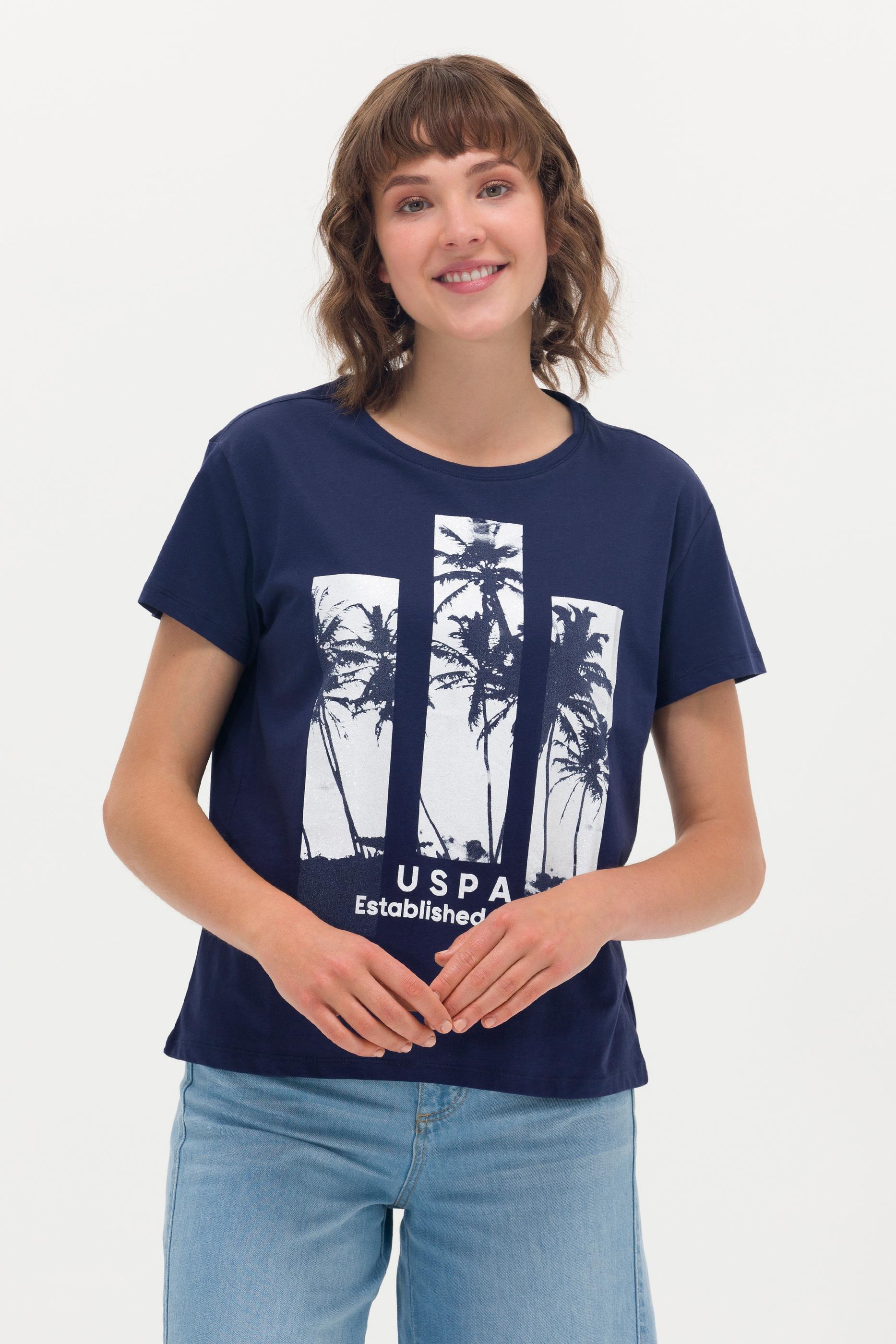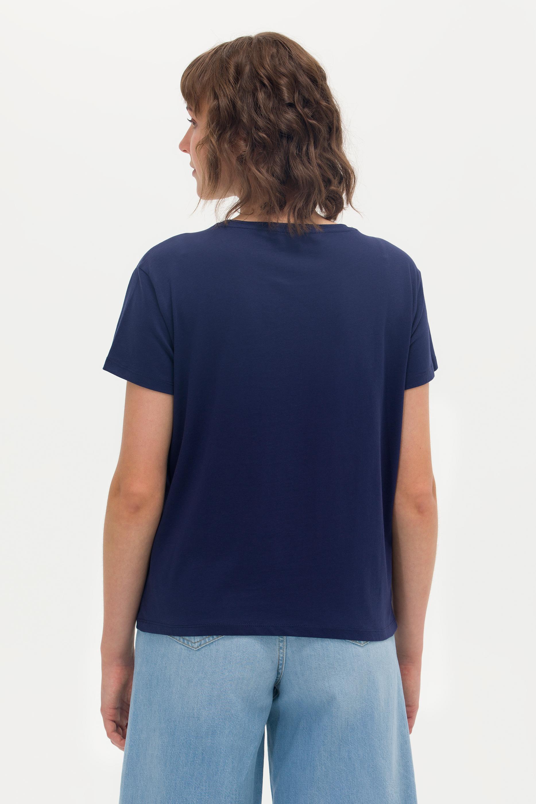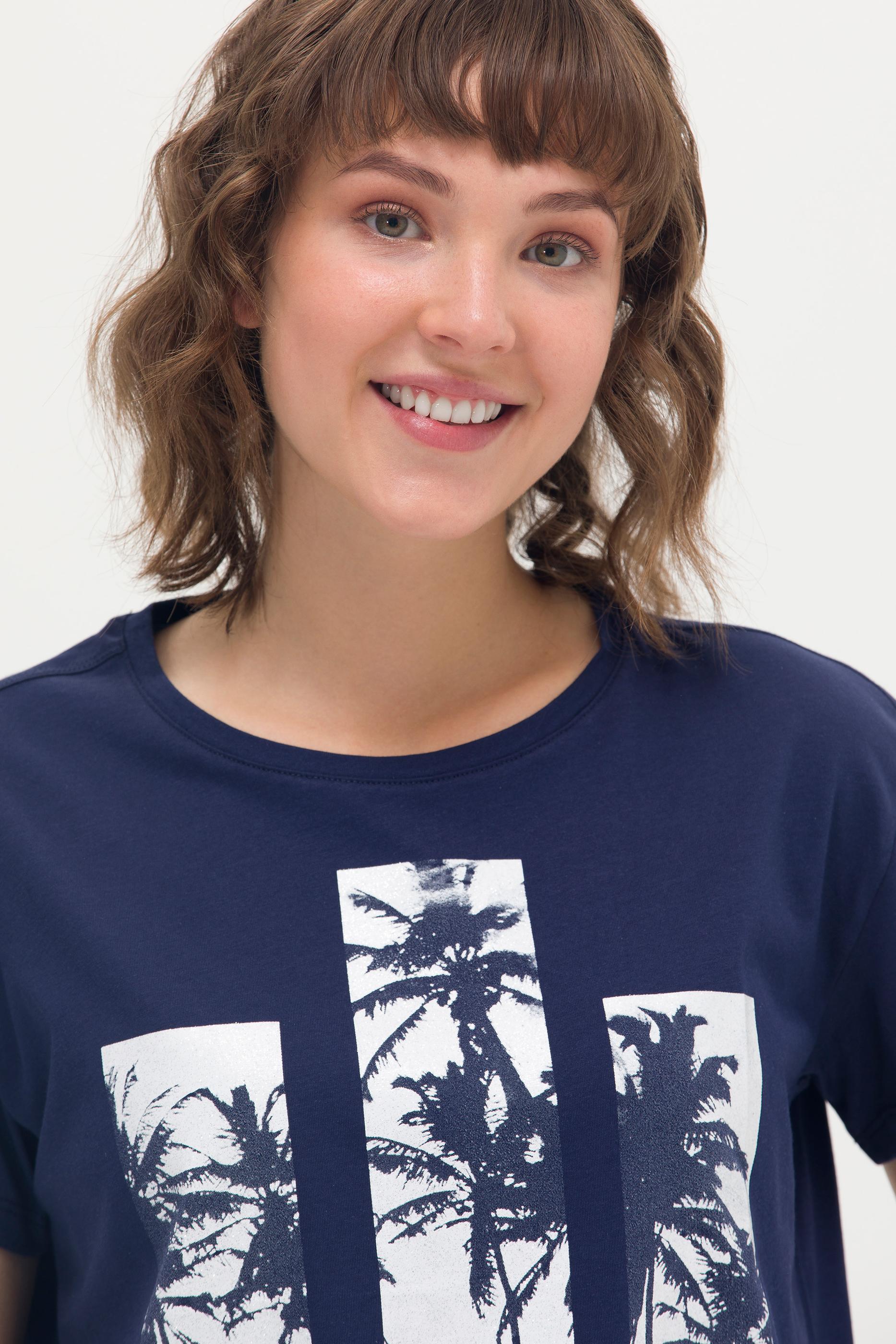 Kadın Lacivert Bisiklet Yaka Tişört - 50262937030
