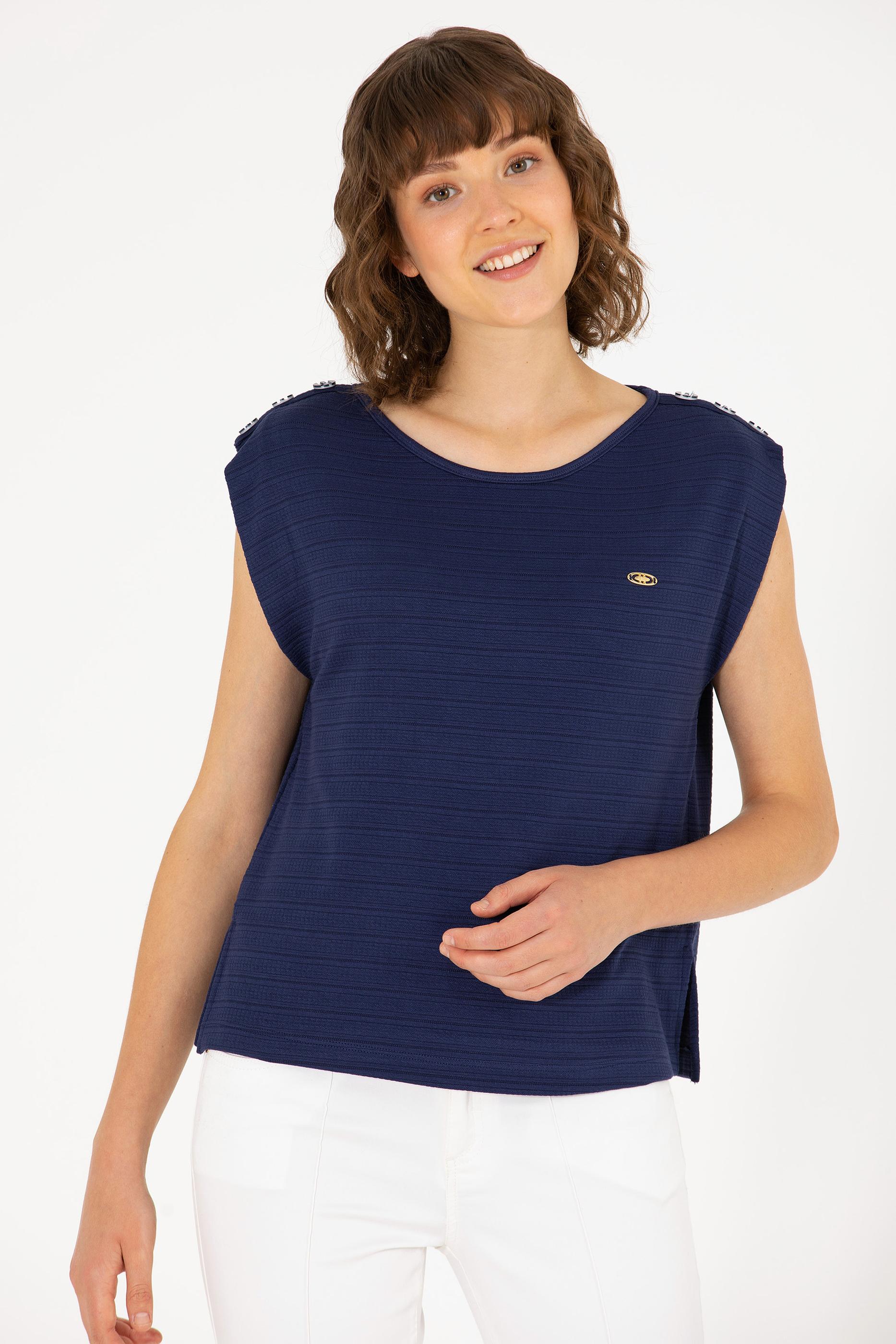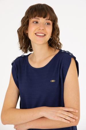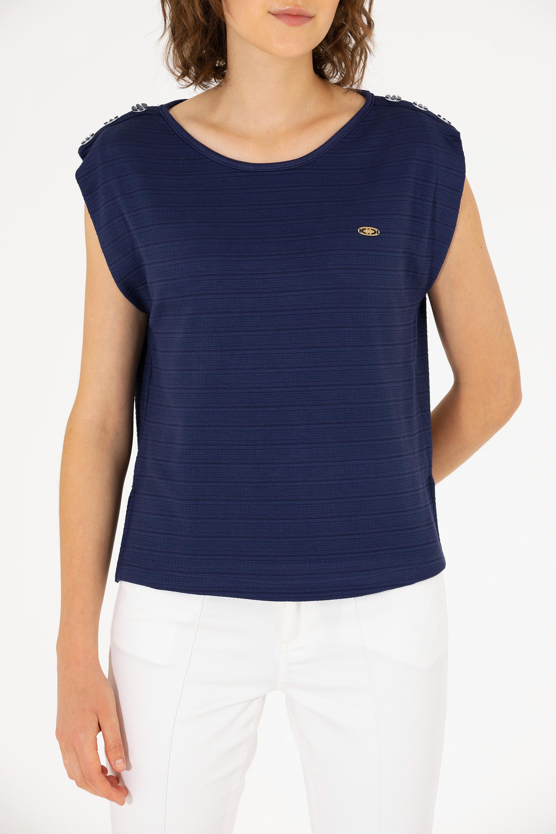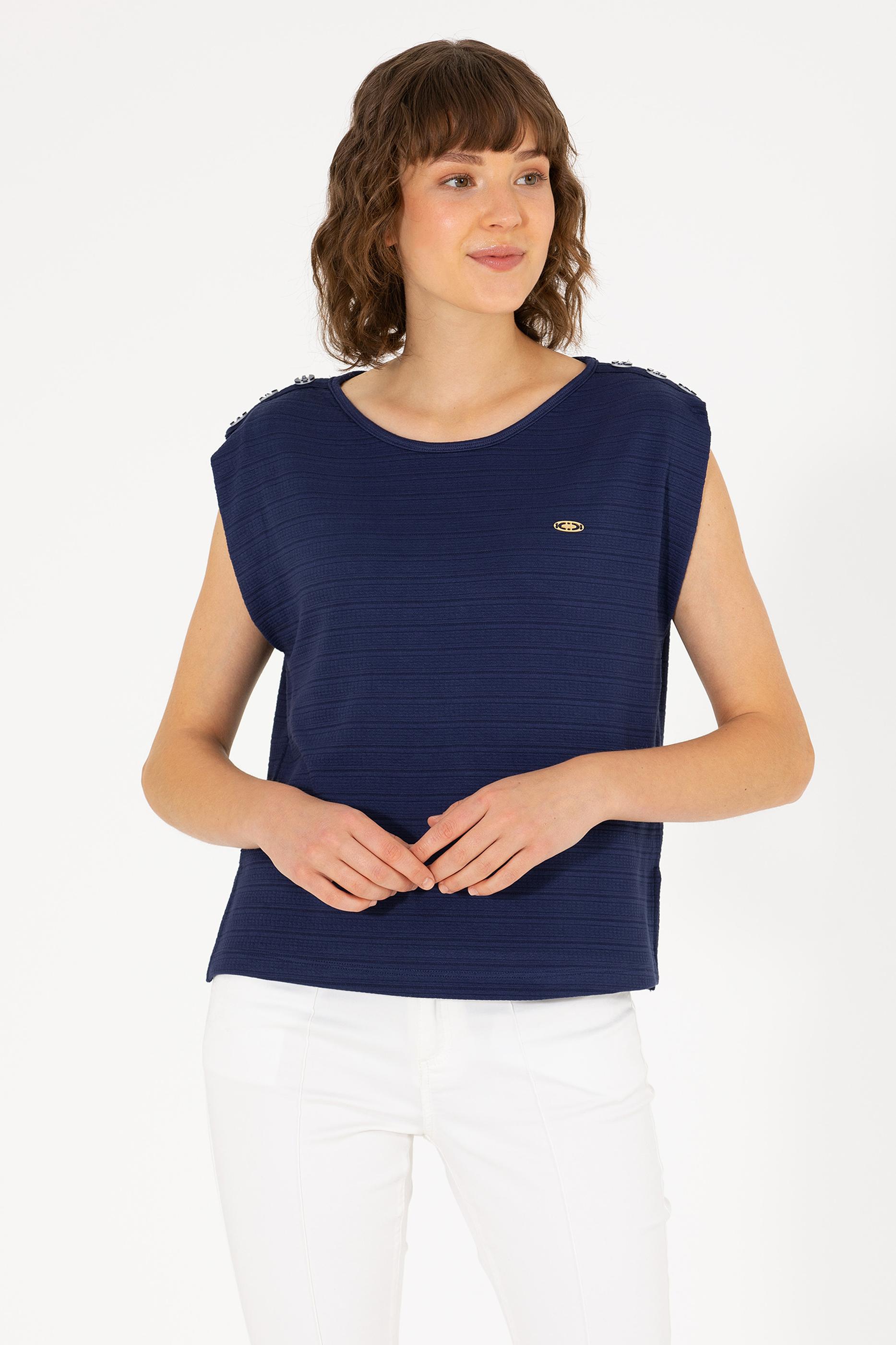 Kadın Lacivert Bisiklet Yaka Kolsuz Tişört