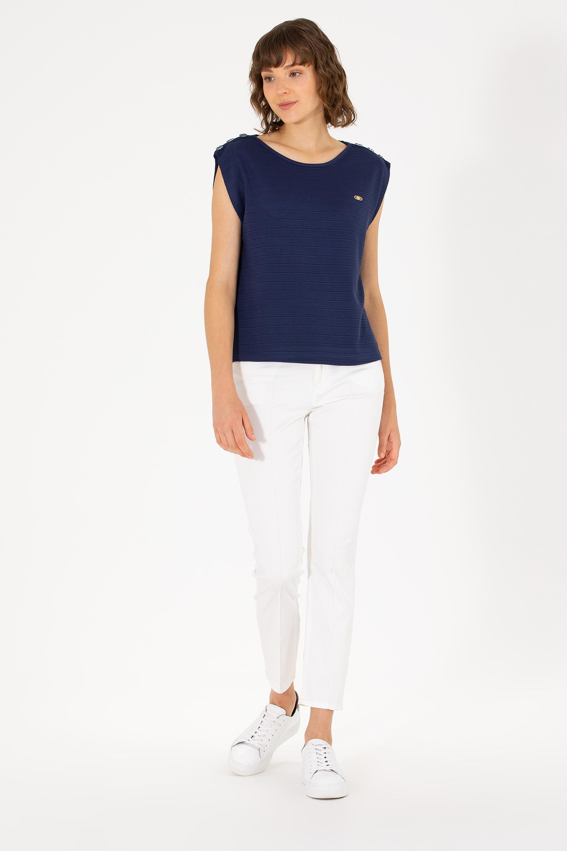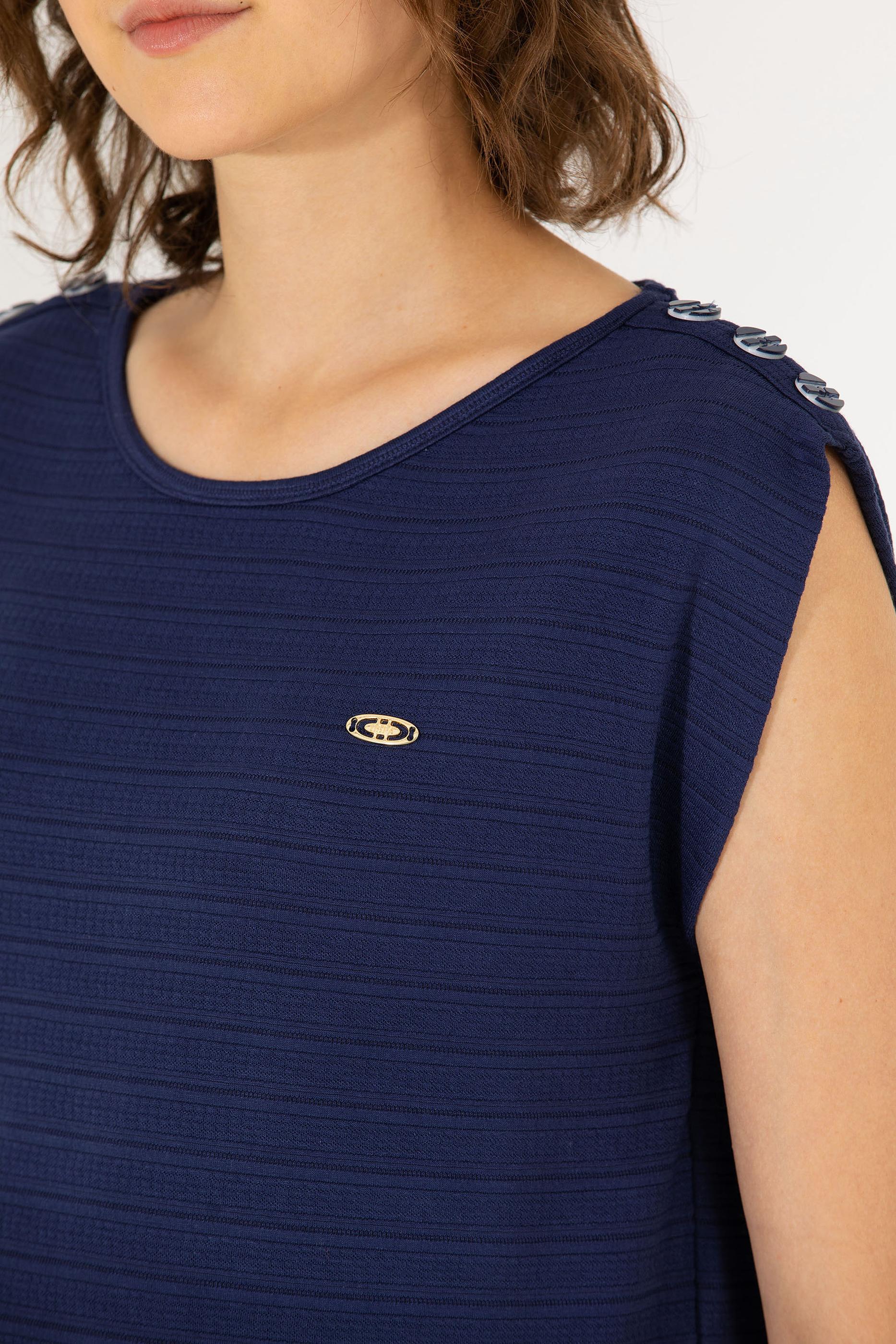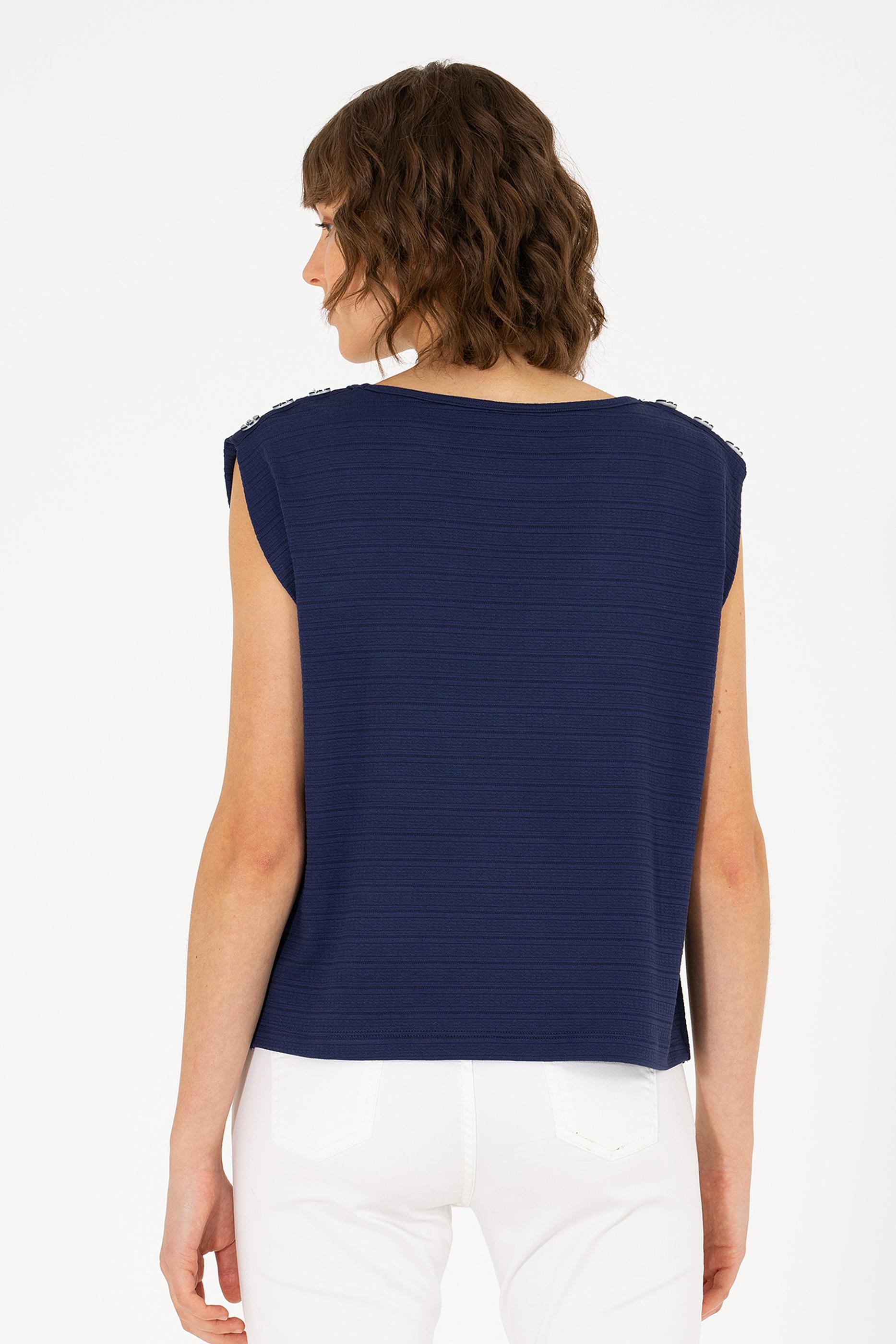 Kadın Lacivert Bisiklet Yaka Kolsuz Tişört