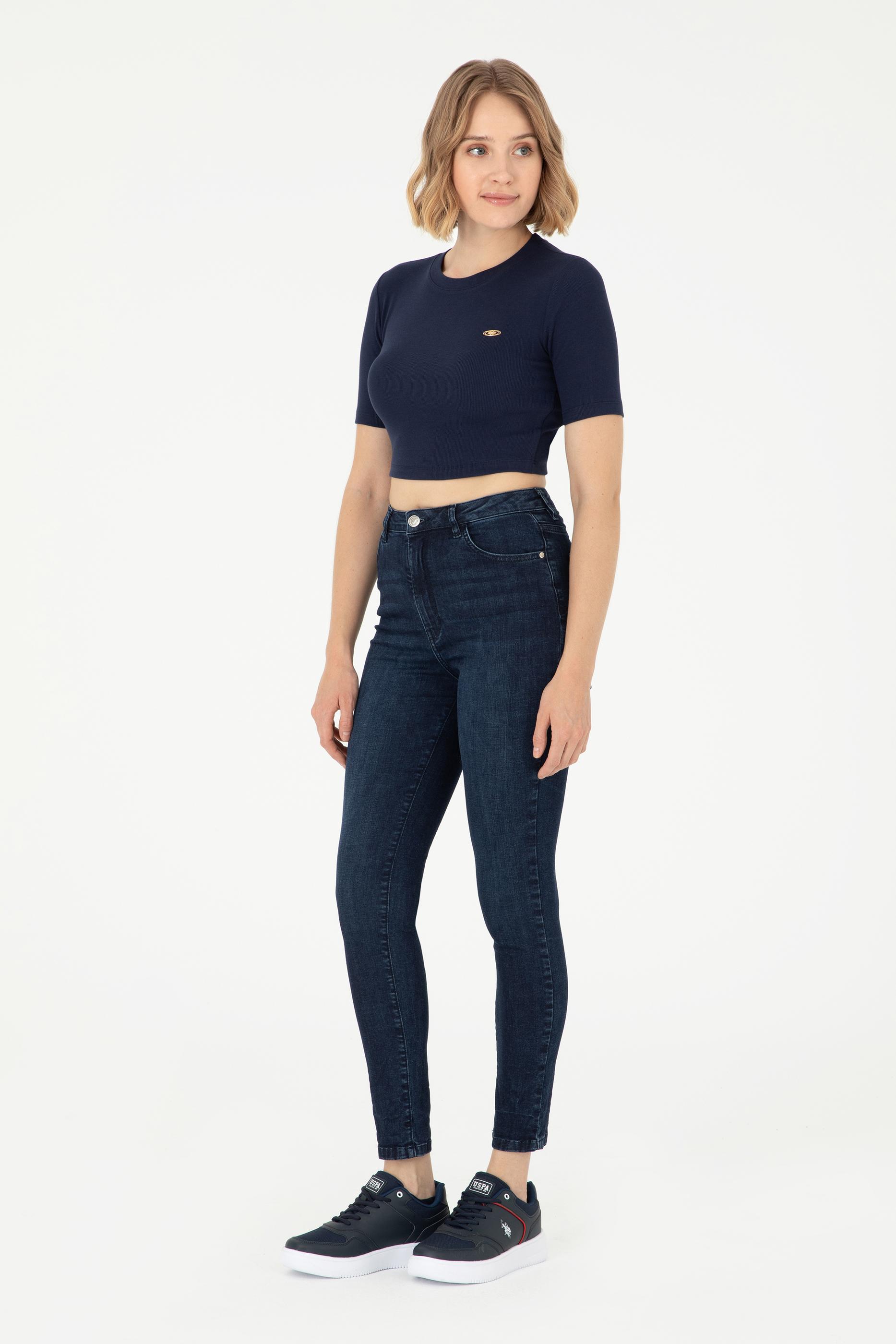 - Kadın Lacivert Bisiklet Yaka Crop Tişört