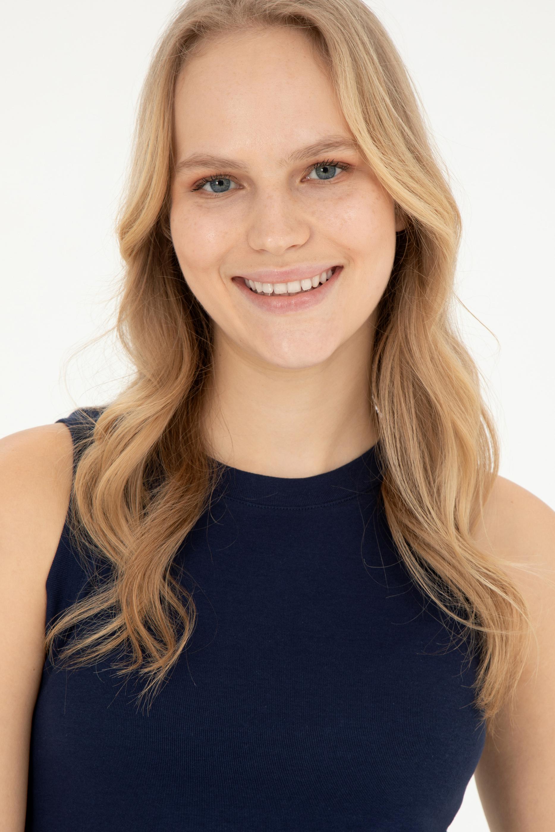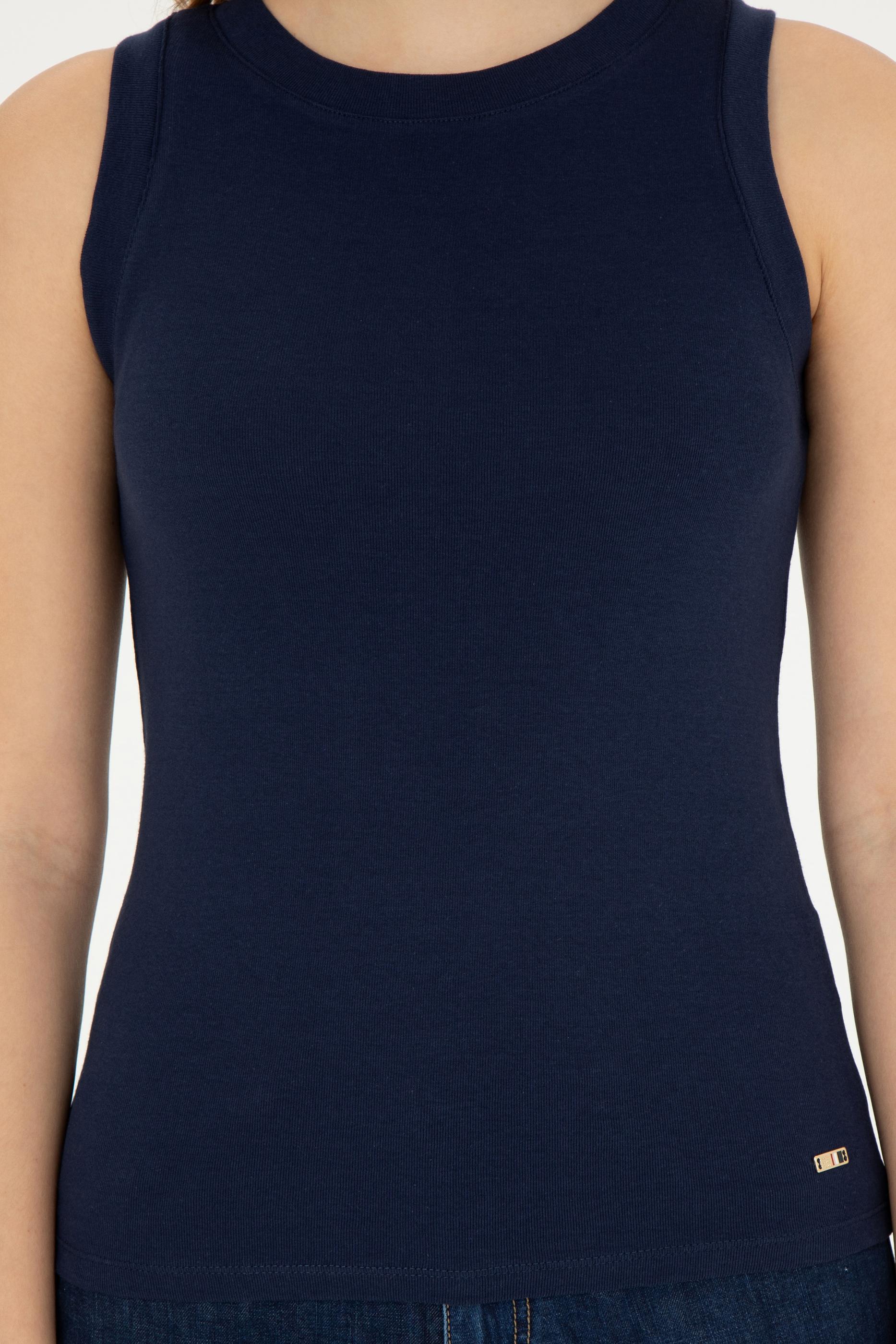 Kadın Lacivert Bisiklet Yaka Kolsuz Tişört