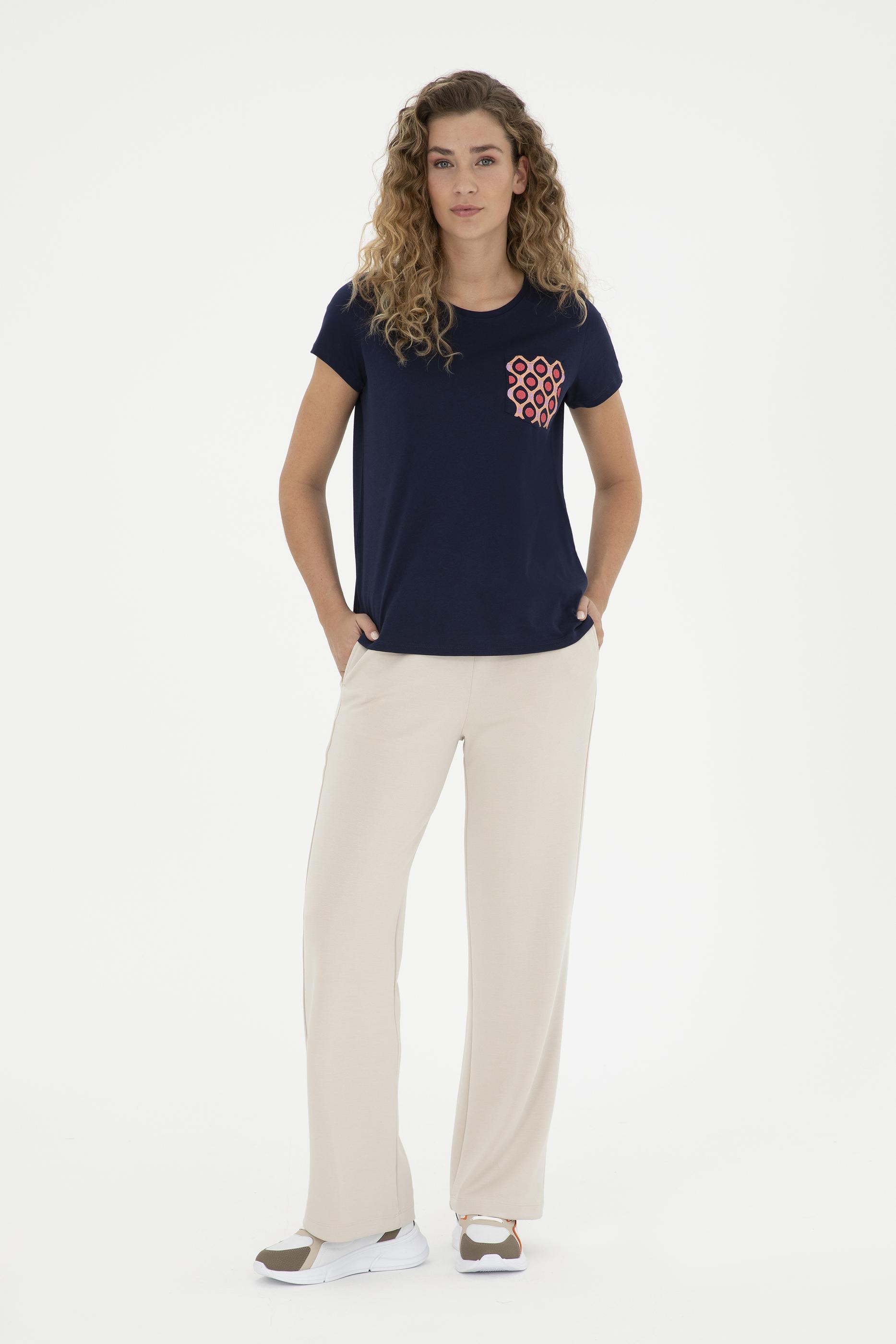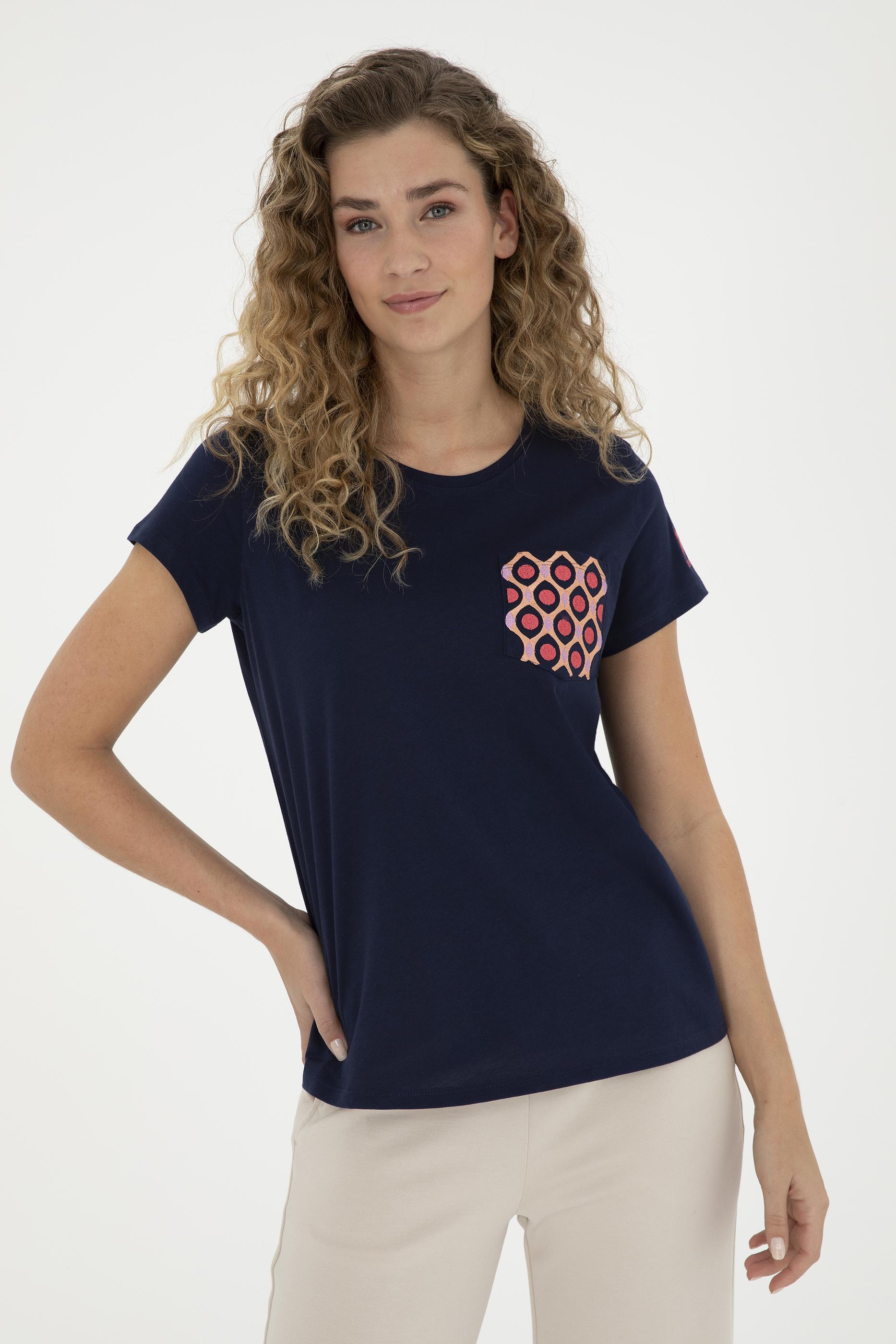 - Kadın Lacivert Bisiklet Yaka Tişört