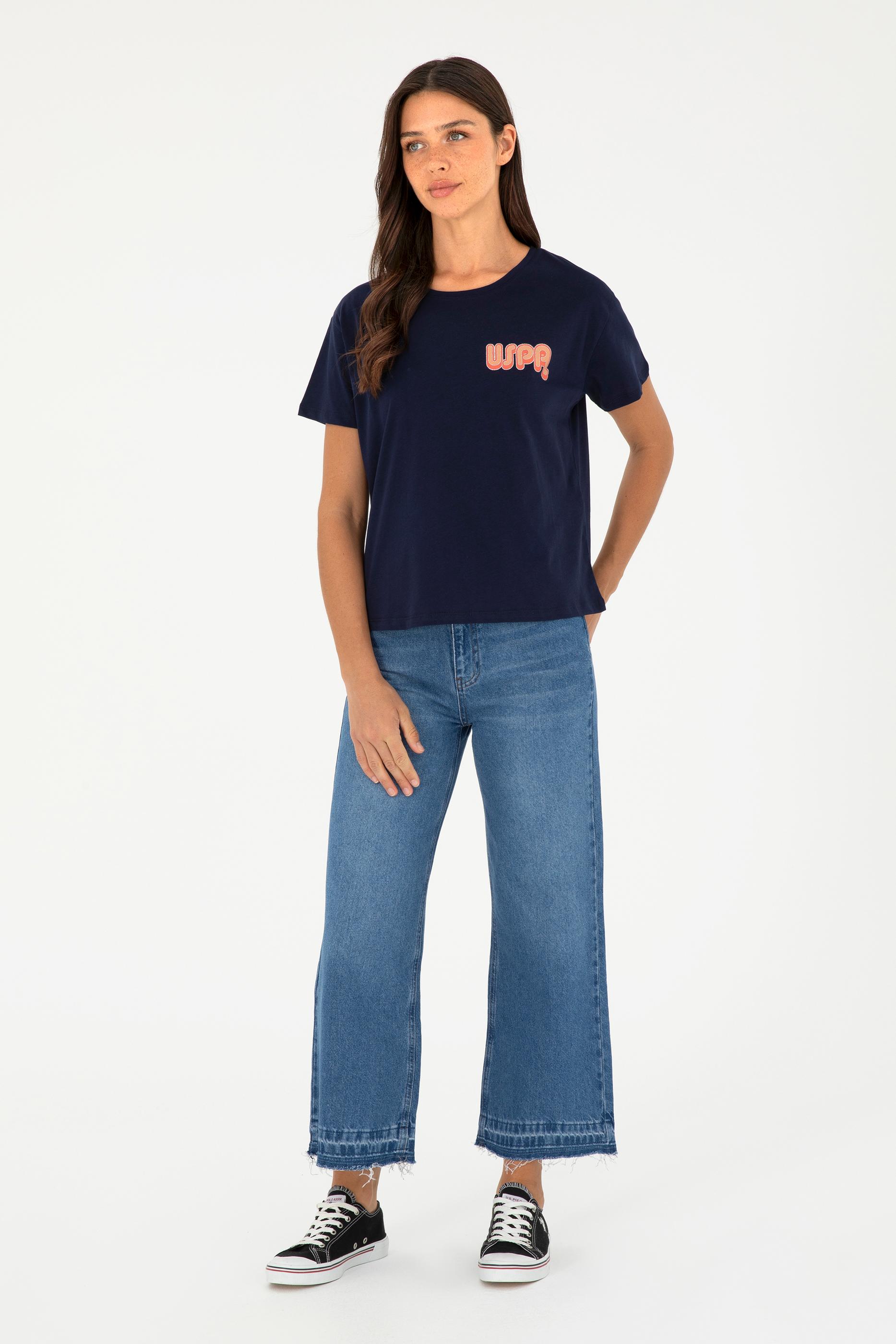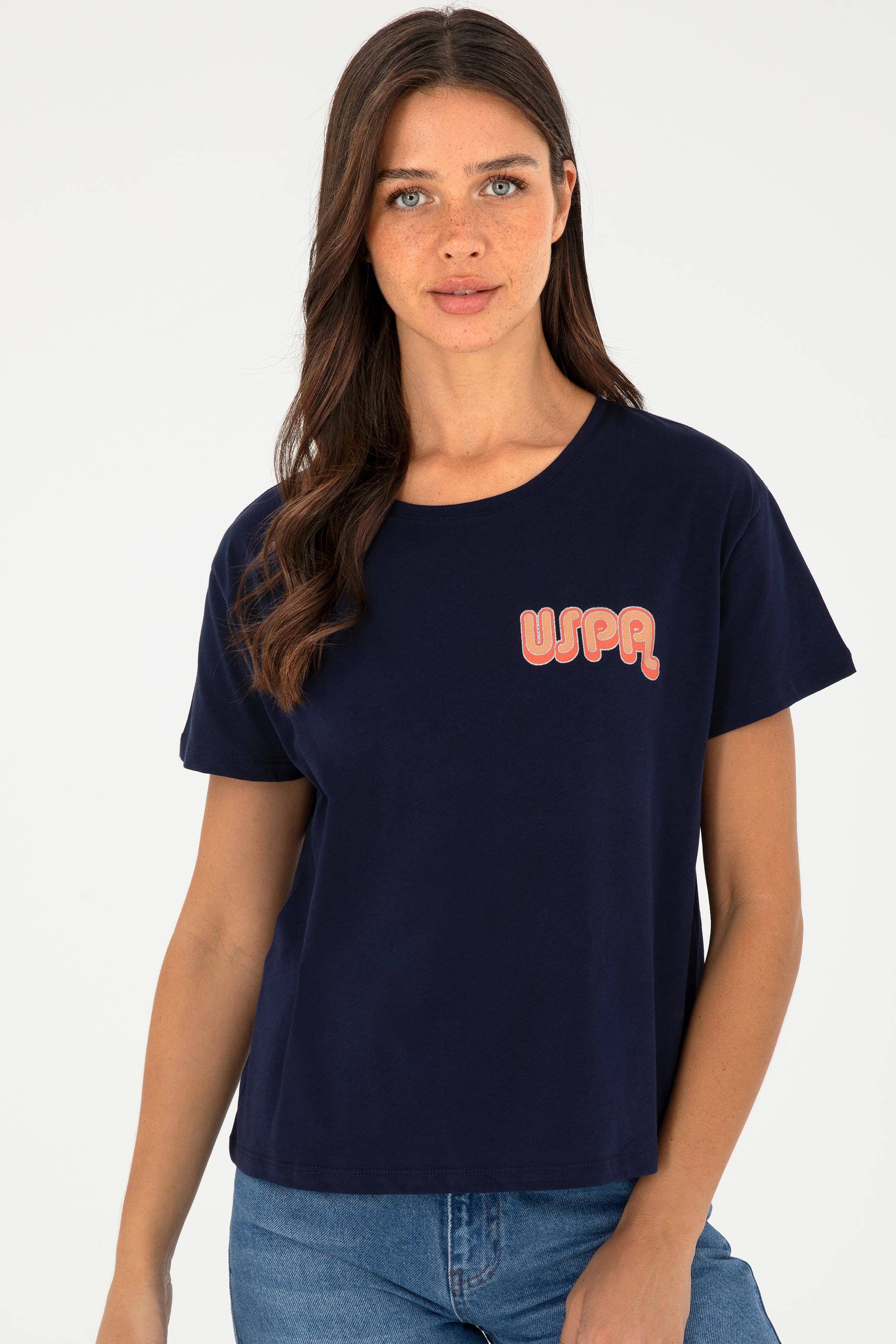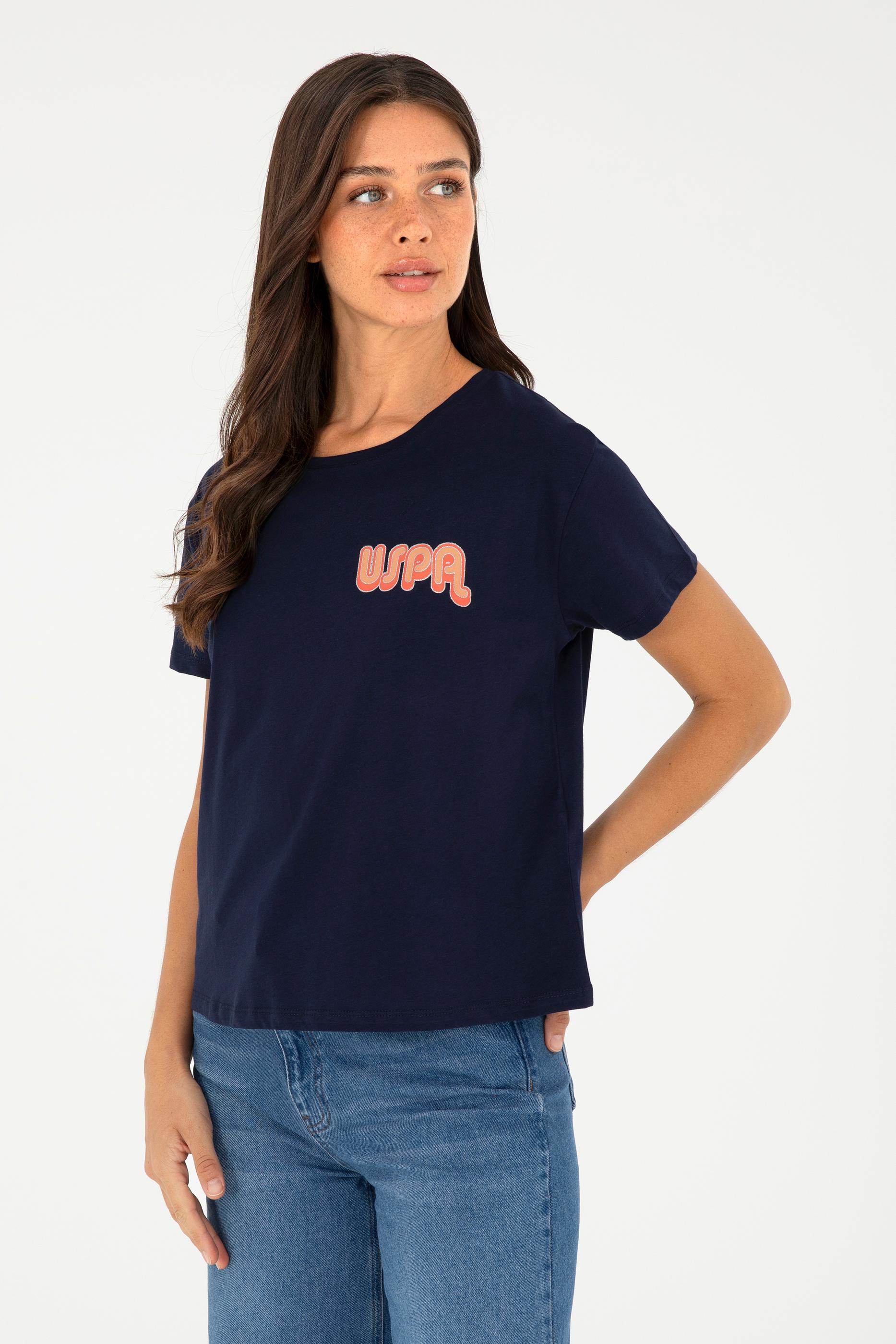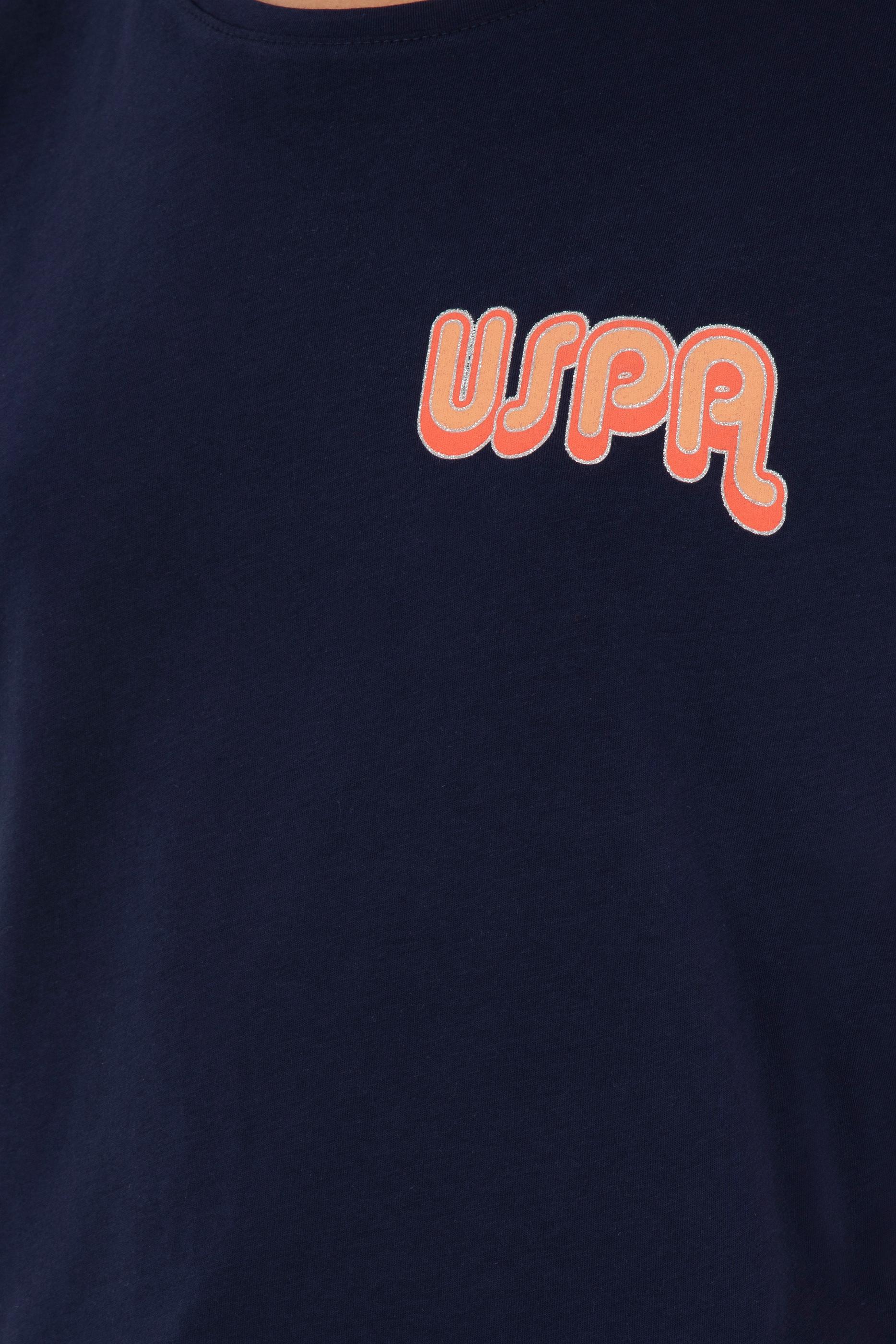 Lacivert rengin derinliği ve önündeki turuncu USPA logosunun kontrastı, tişörtü dikkat çekici kılıyor. Retro tarzda baskılı yazı stili, enerjik bir hava katarken tişörtün benzersiz karakterini ortaya koyuyor.