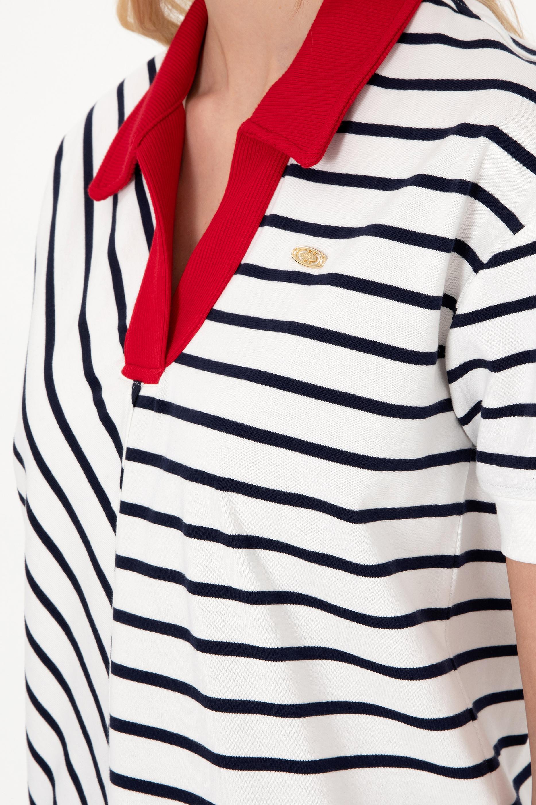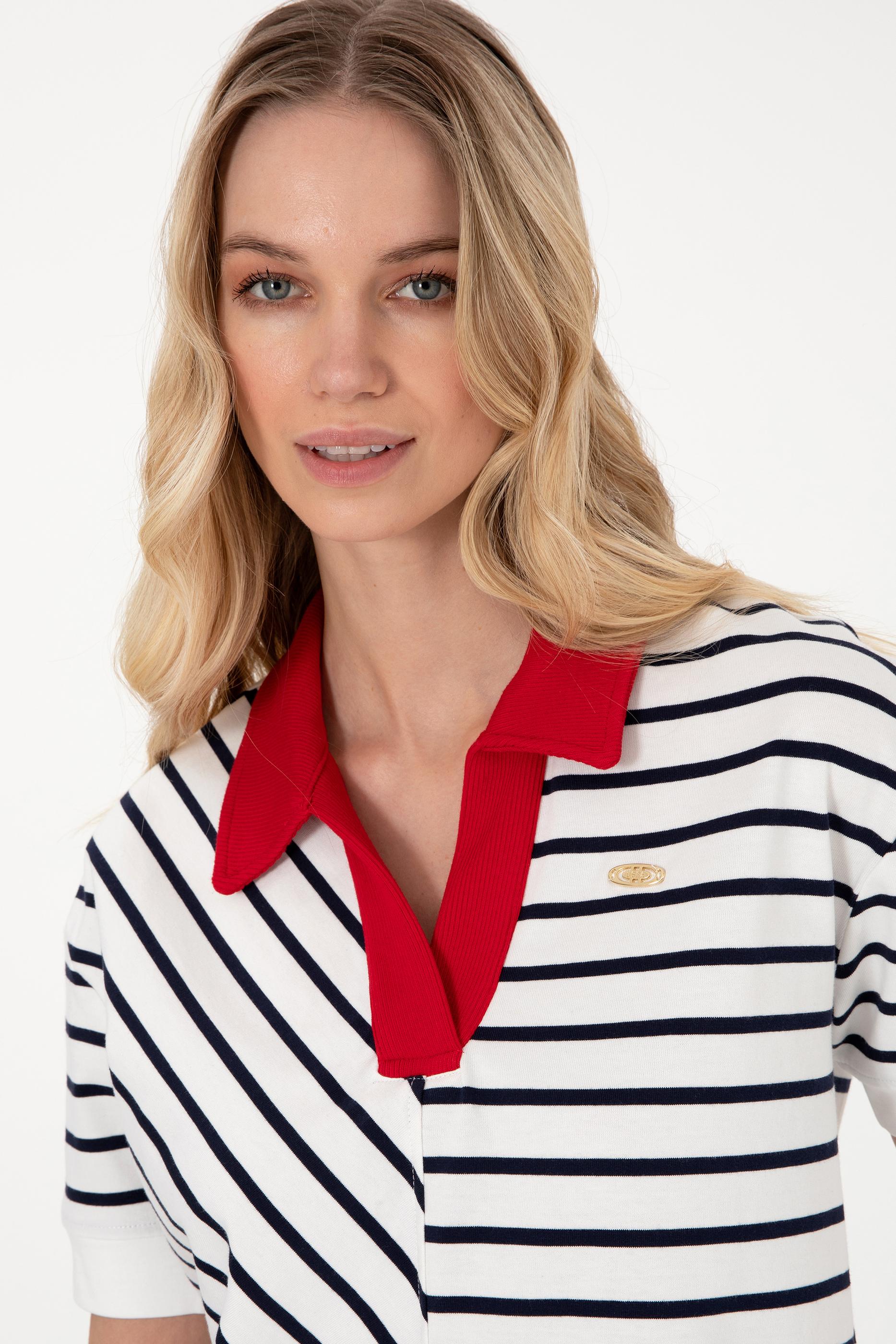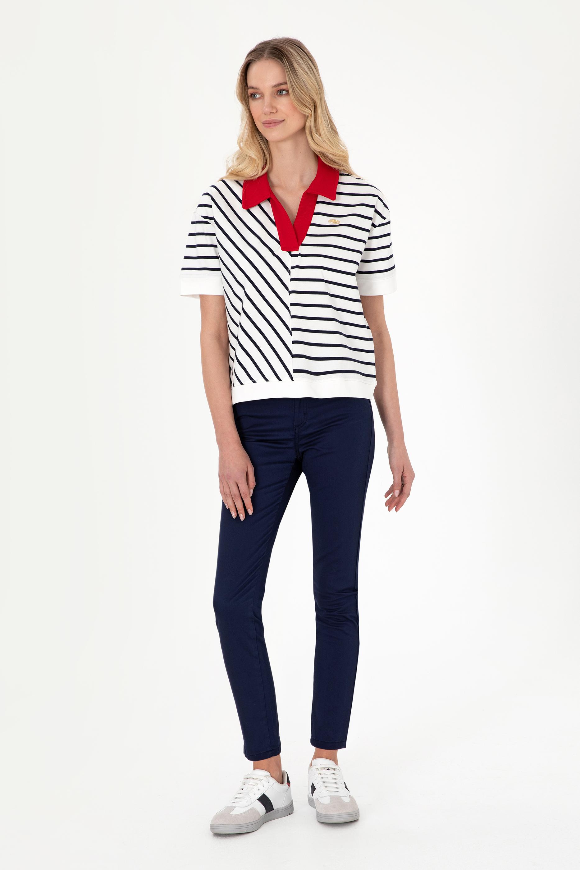 - Kadın Lacivert Çizgili Polo Yaka Tişört