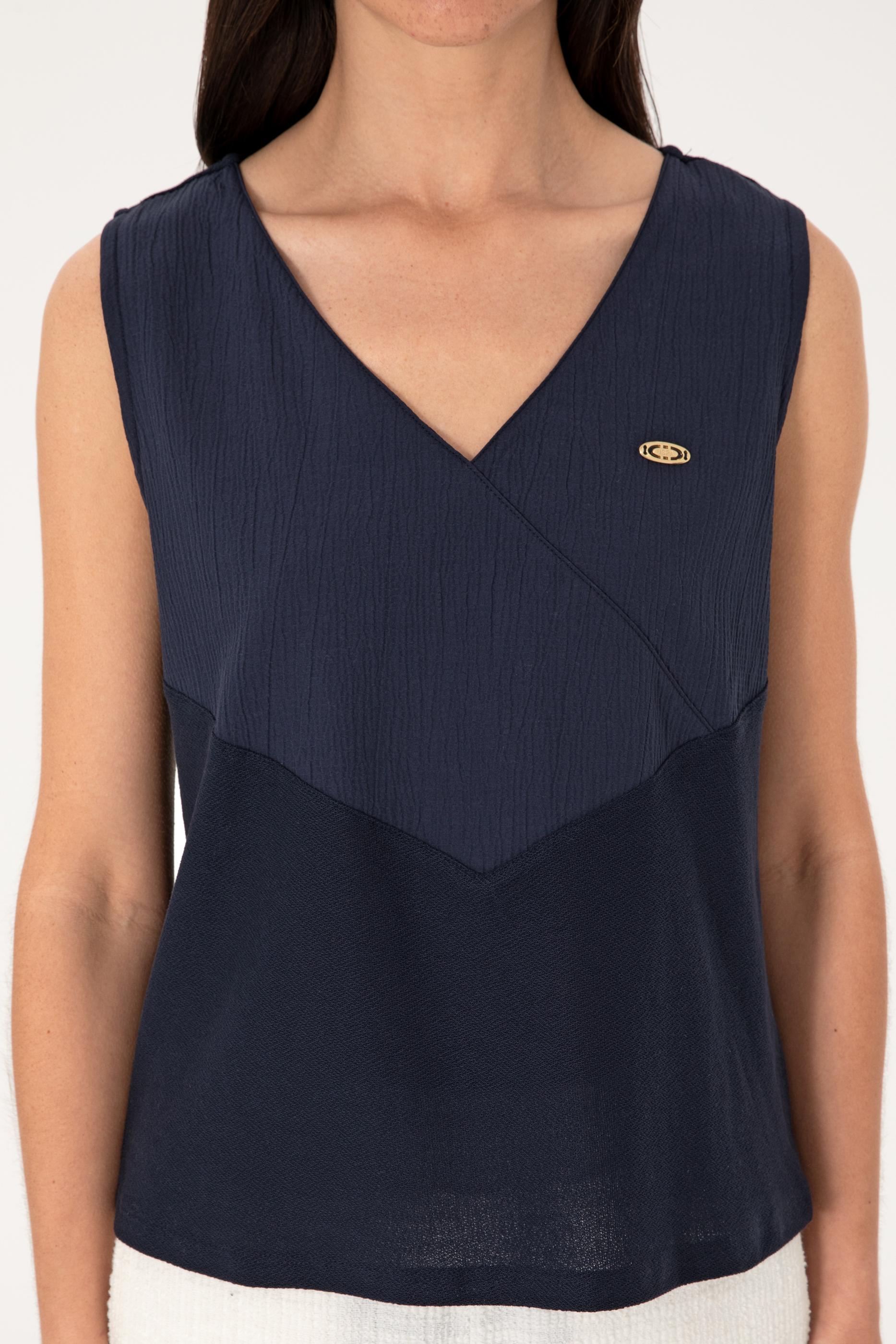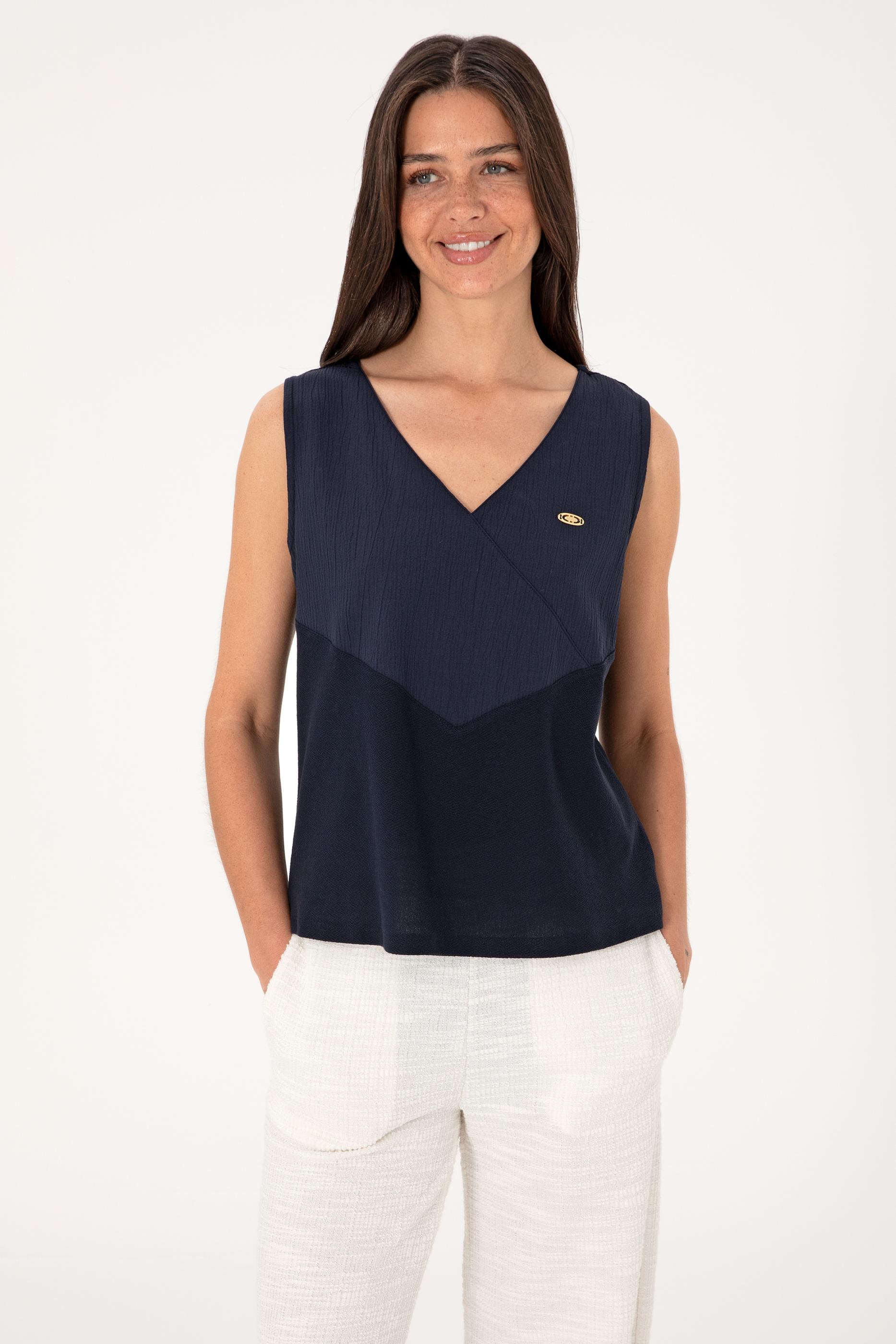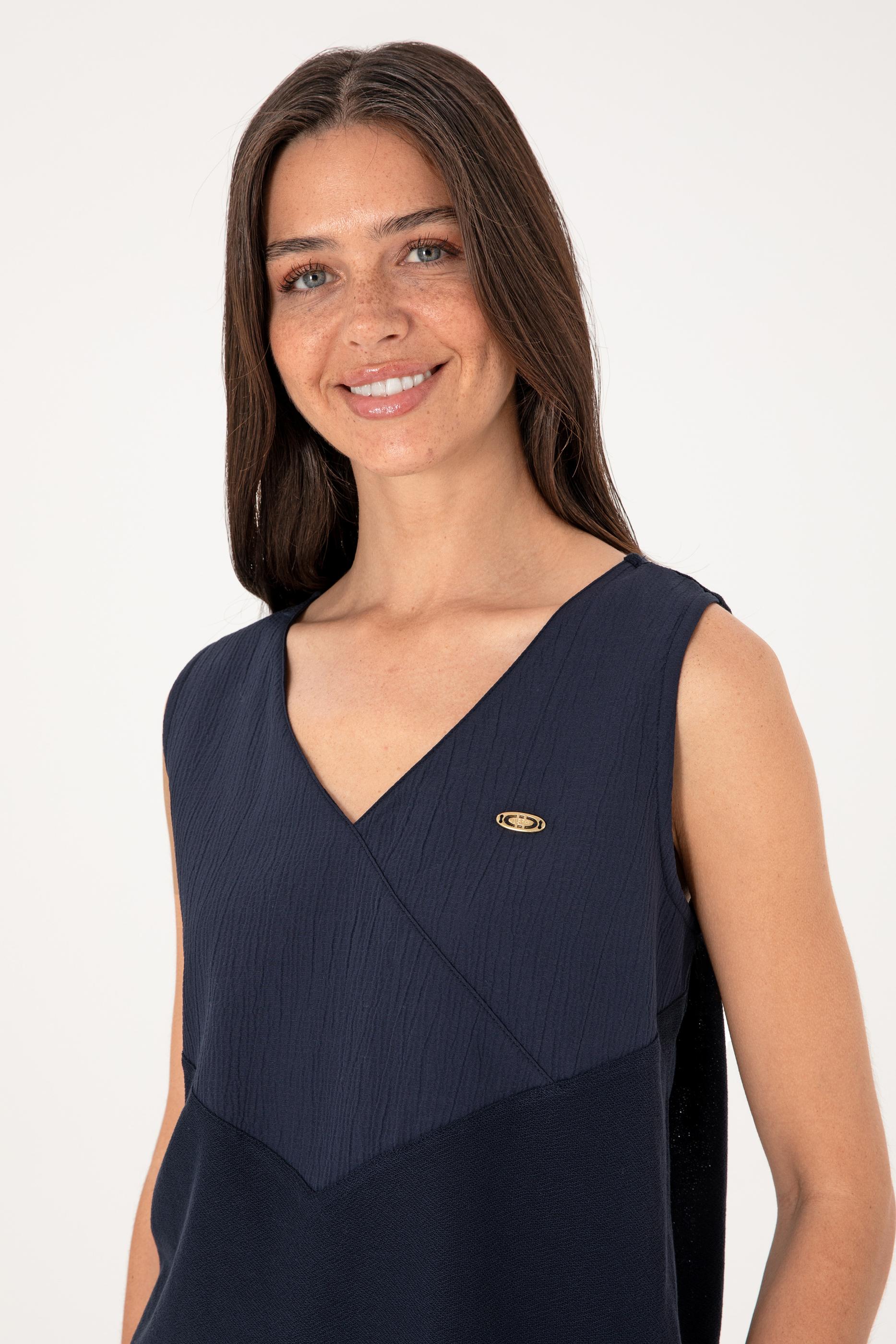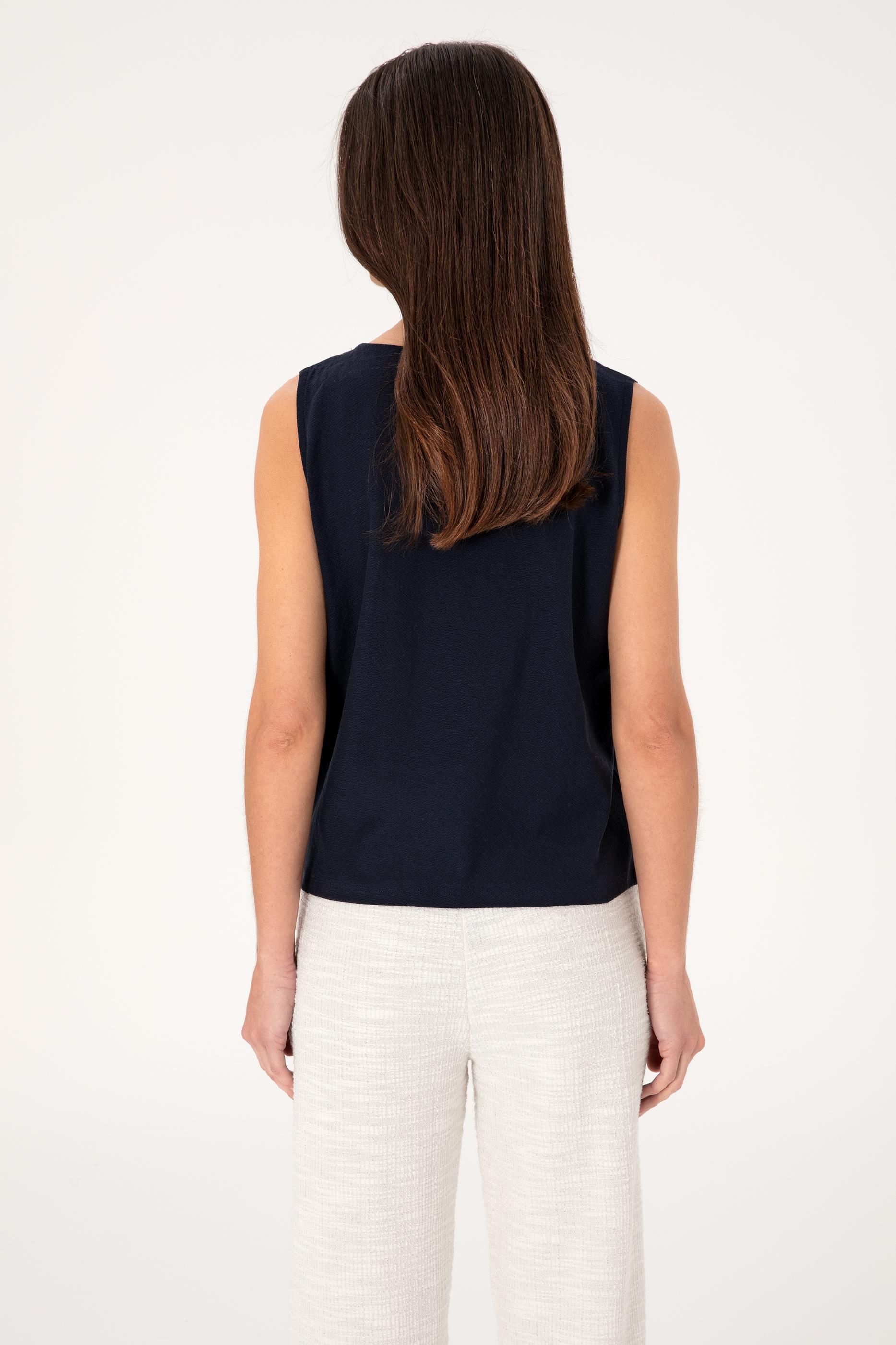 Kadın Lacivert Kolsuz V Yaka Tişört