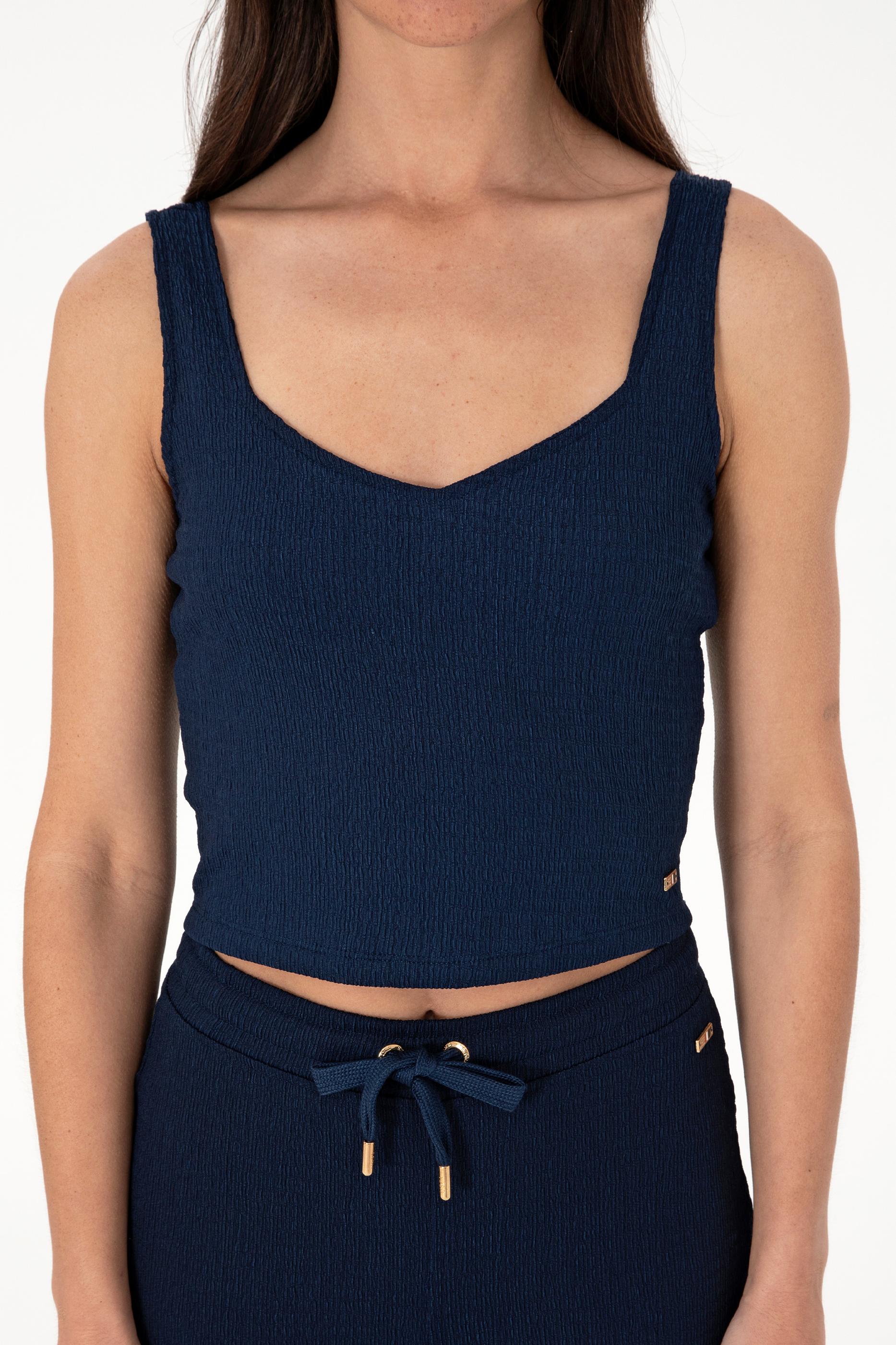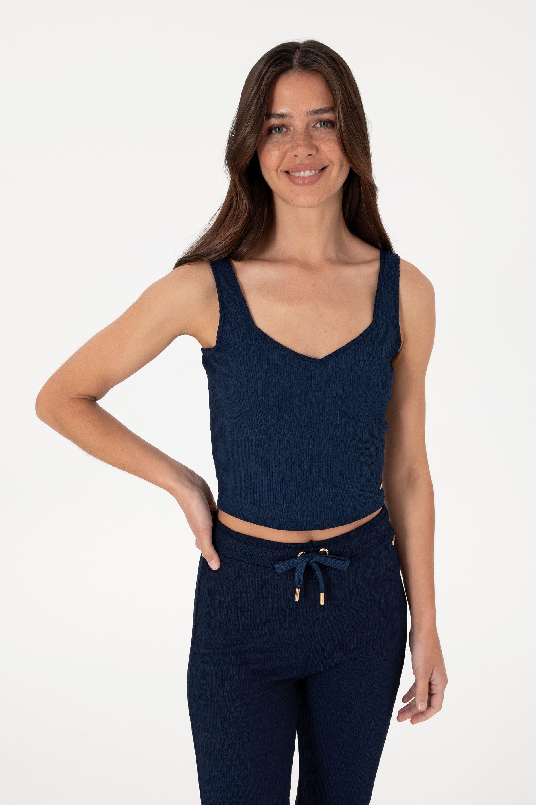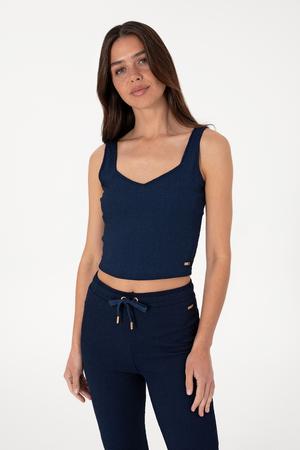 Kadın Lacivert Kolsuz V Yaka Tişört