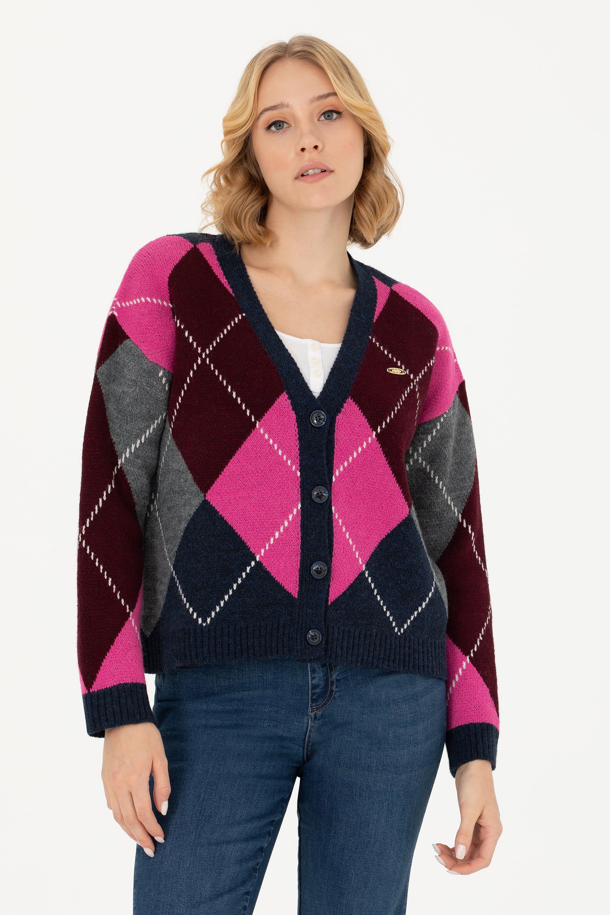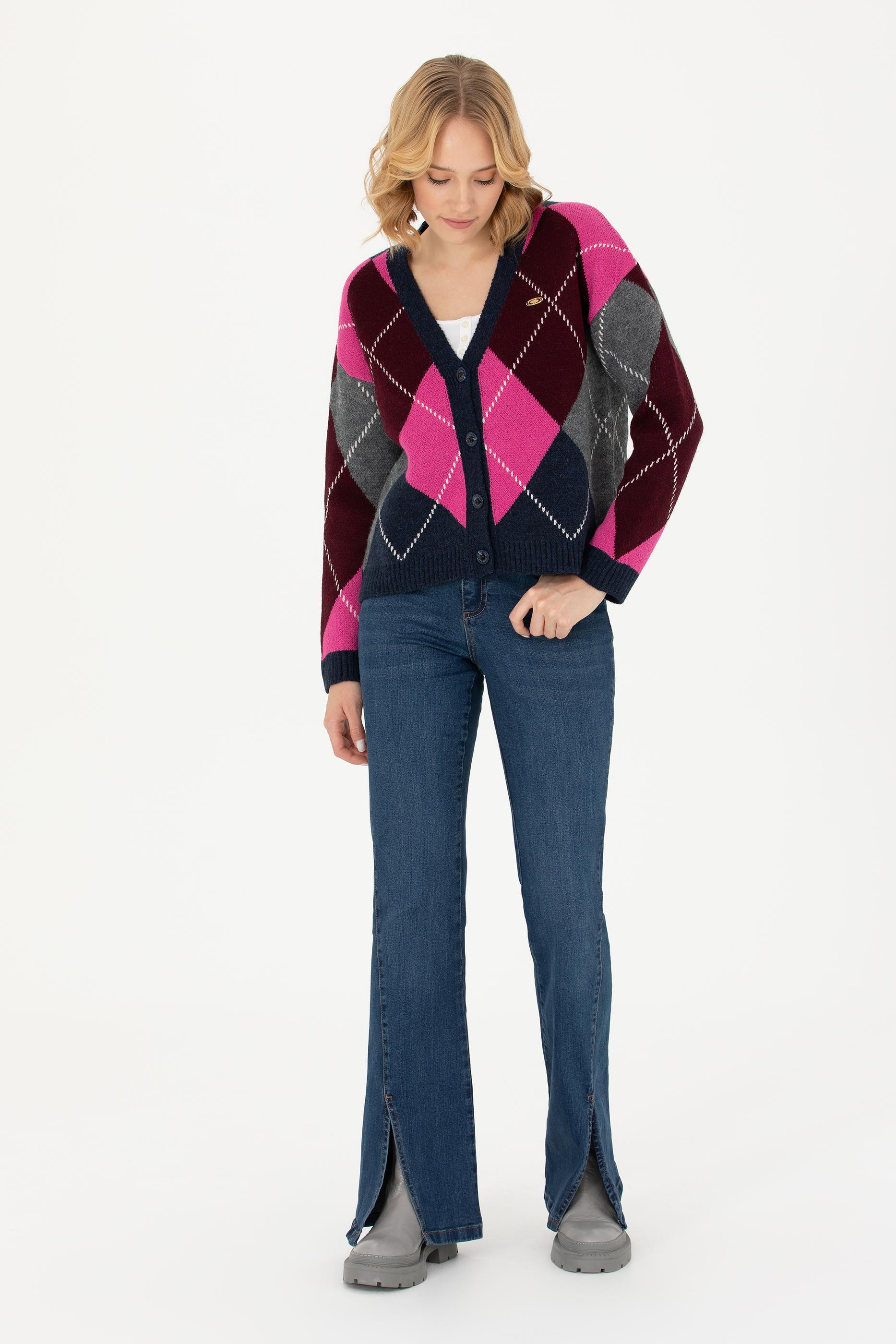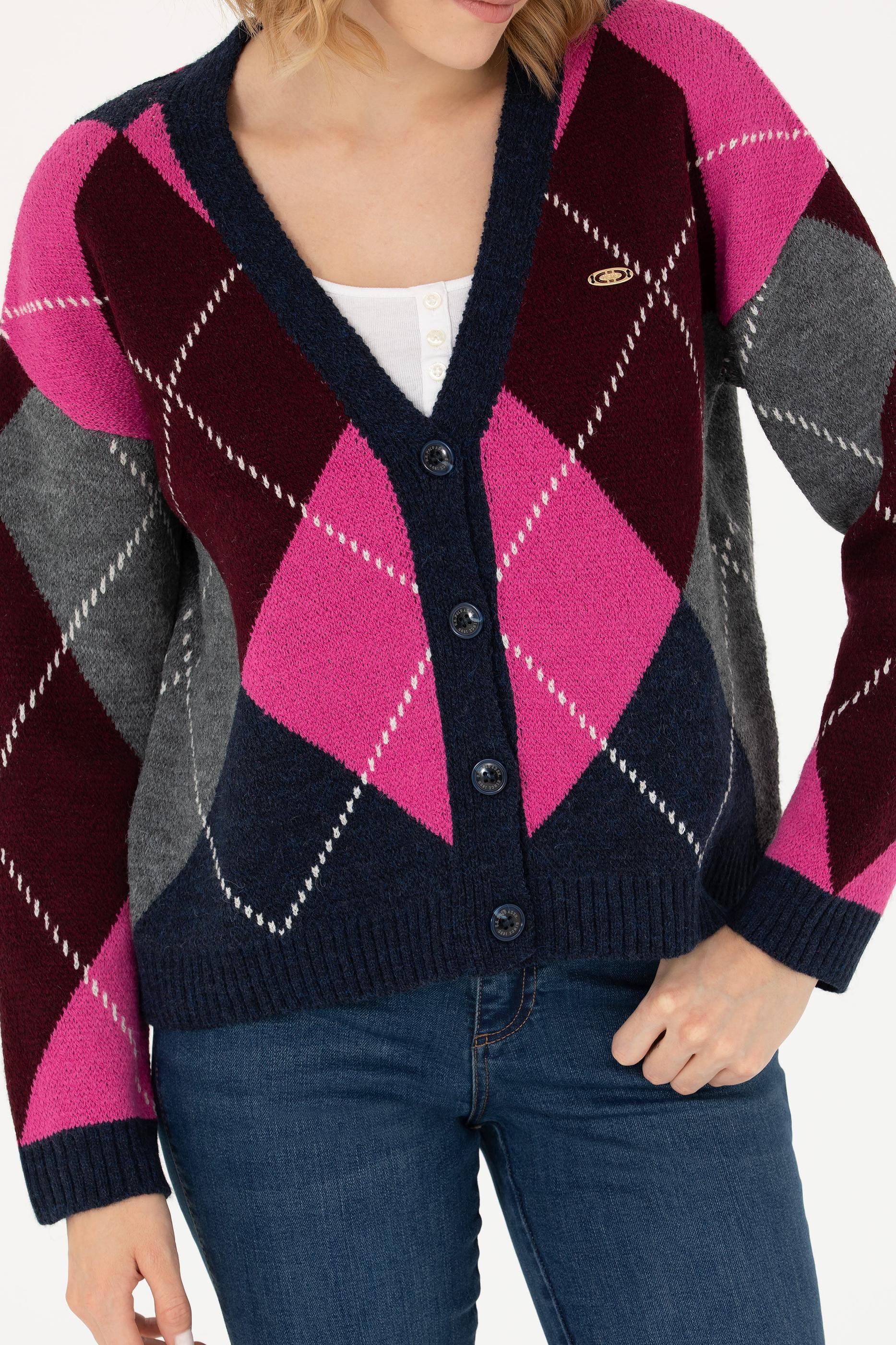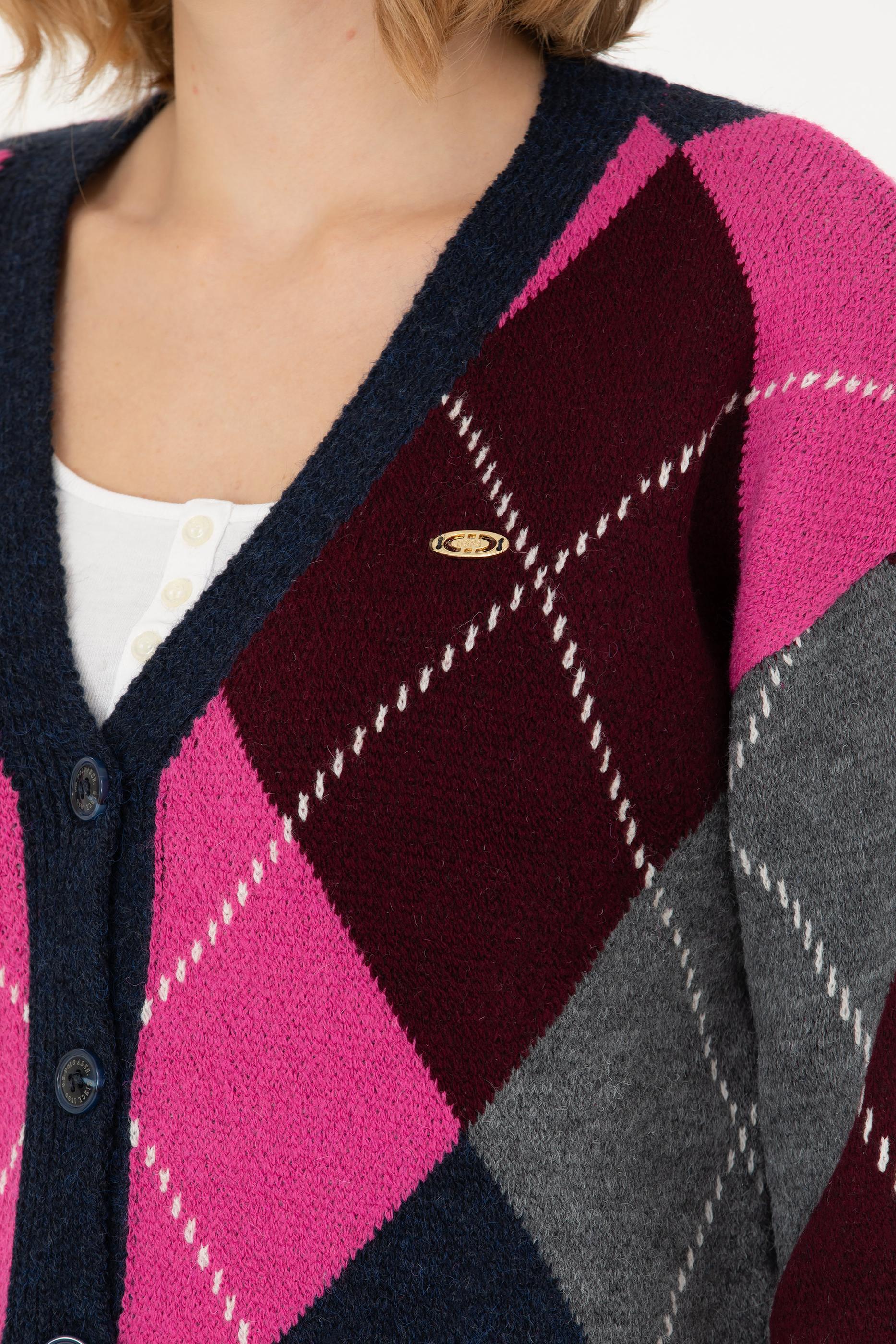 Kadın V Yaka Lacivert Triko Hırka - 50269496024