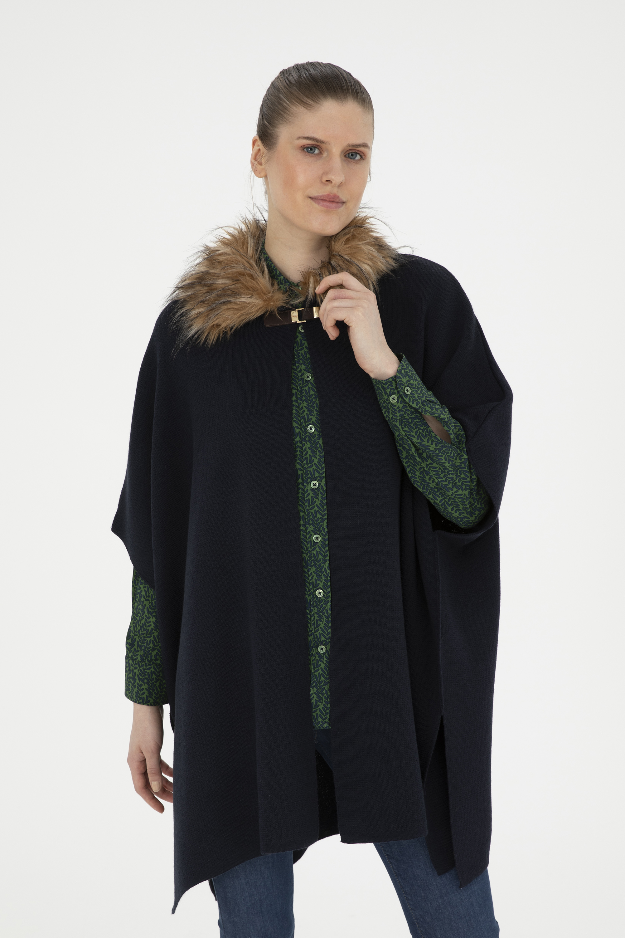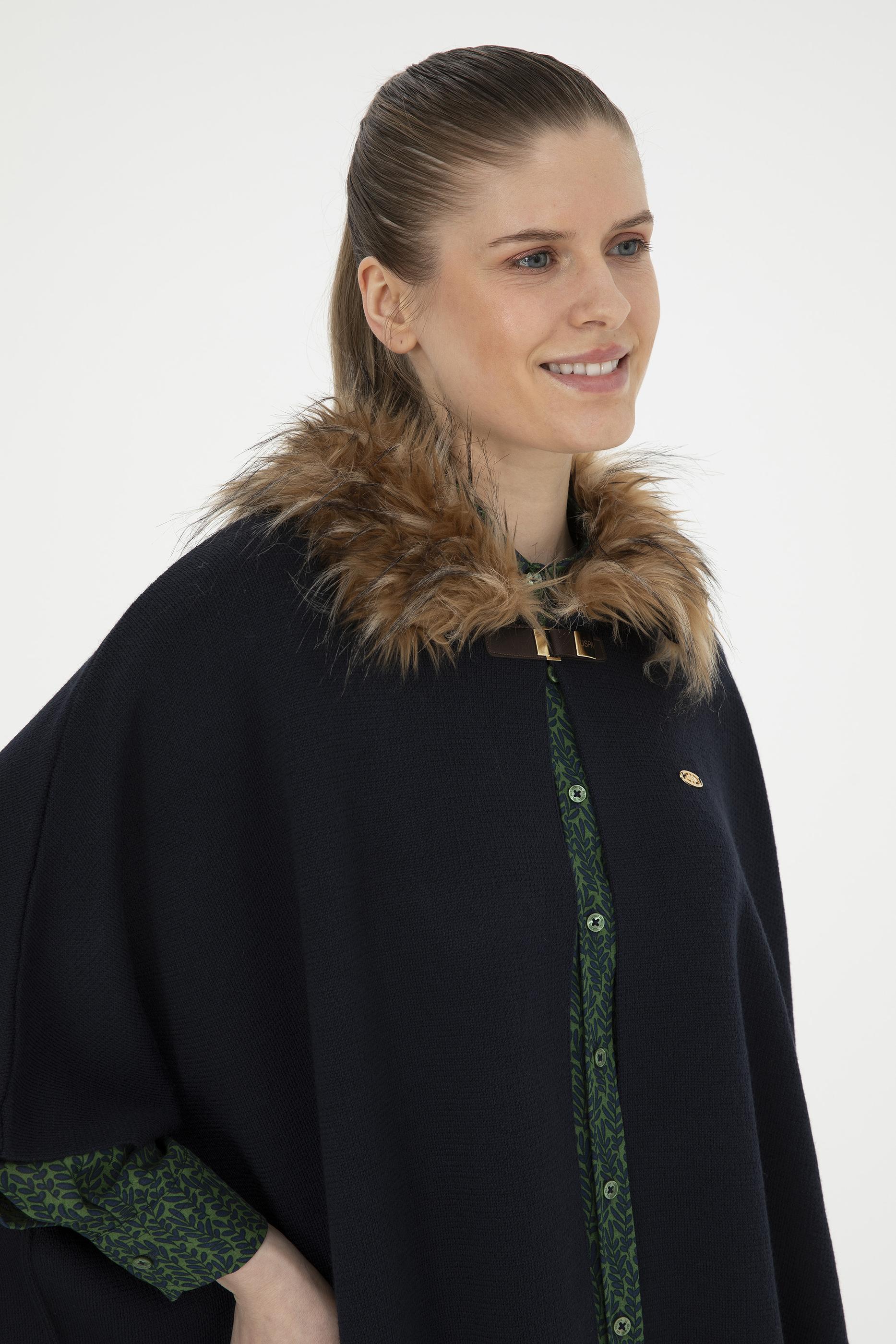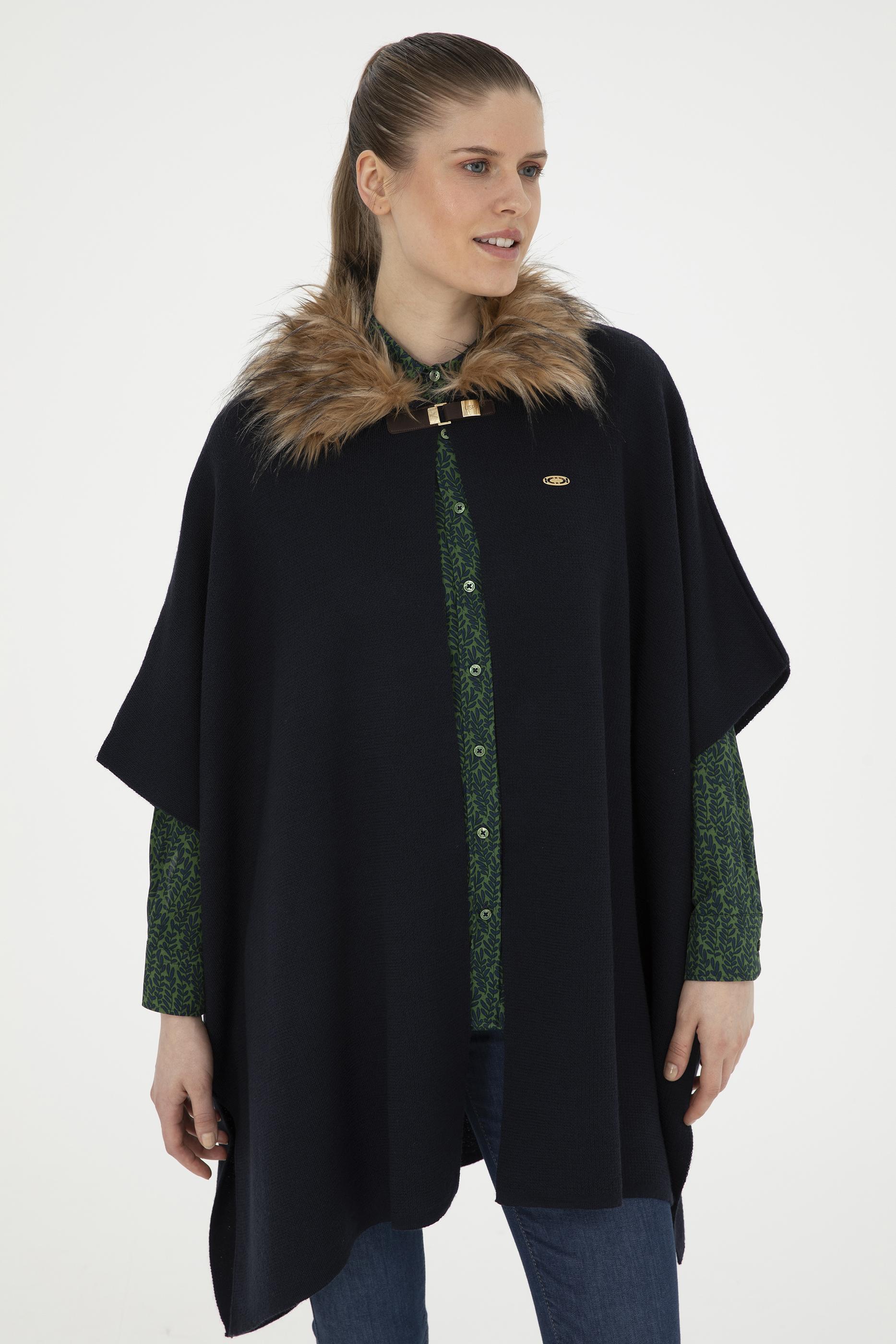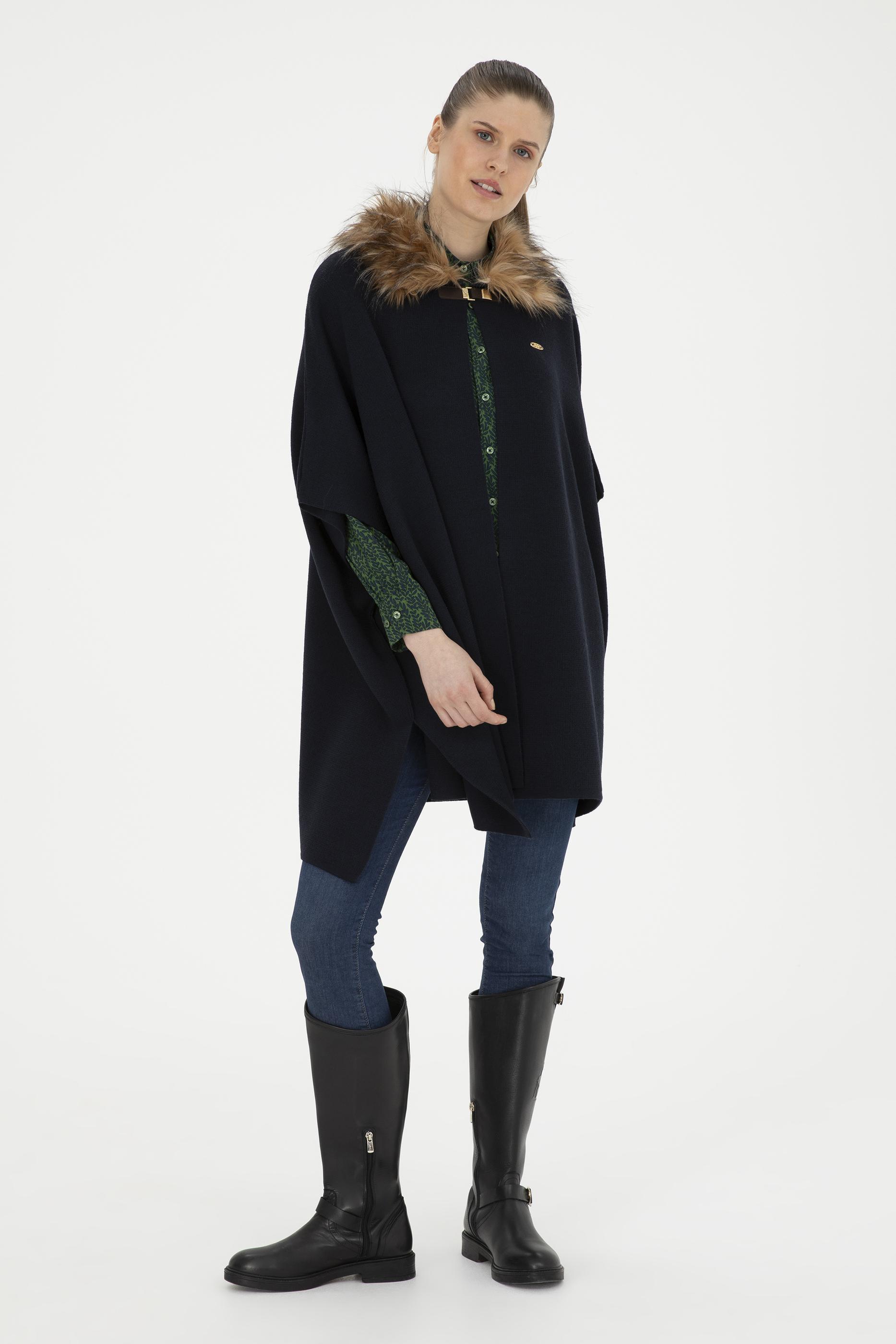 Kadın Lacivert Triko Panço - 50270464005