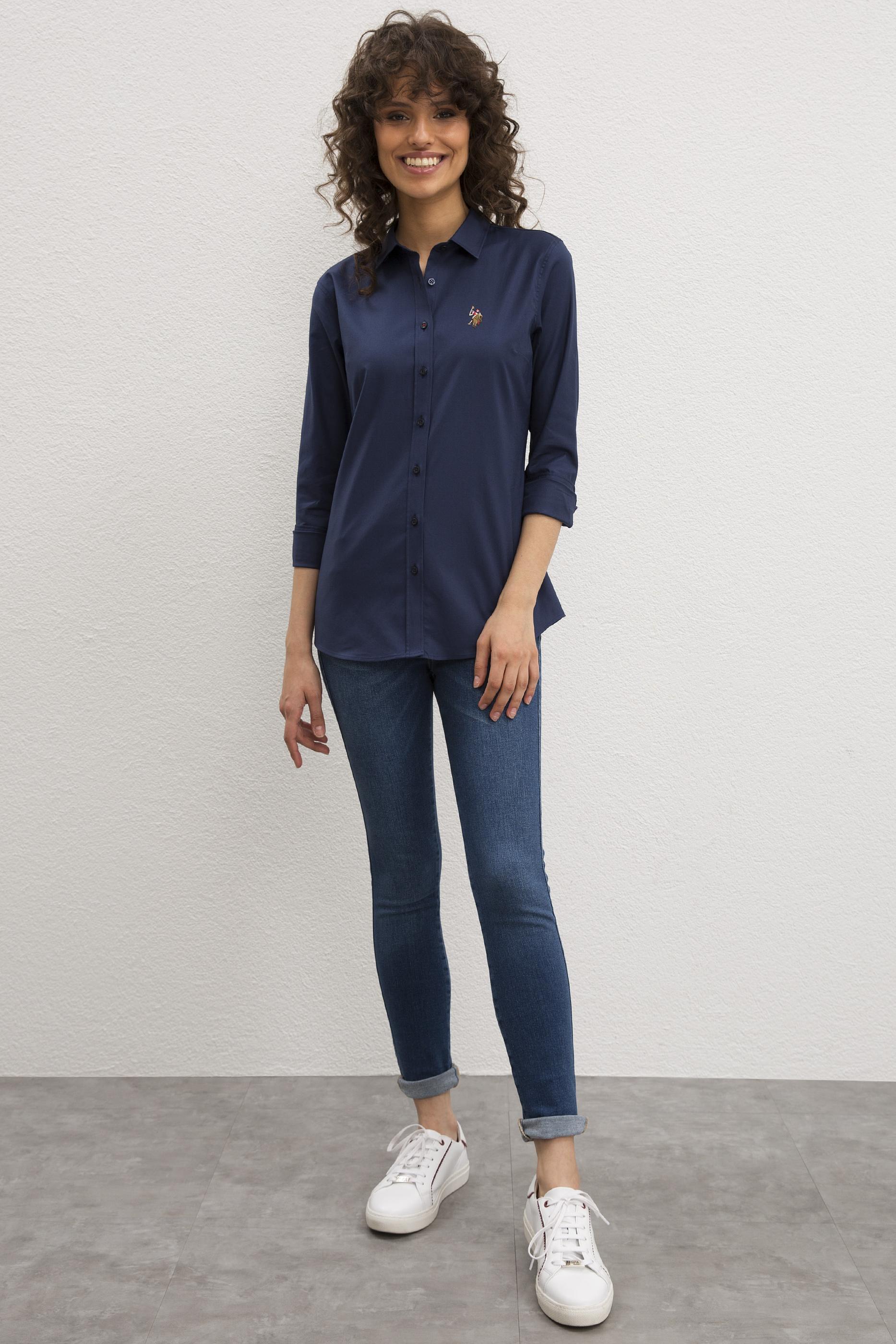 - Kadın Lacivert Uzun Kollu Basic Gömlek