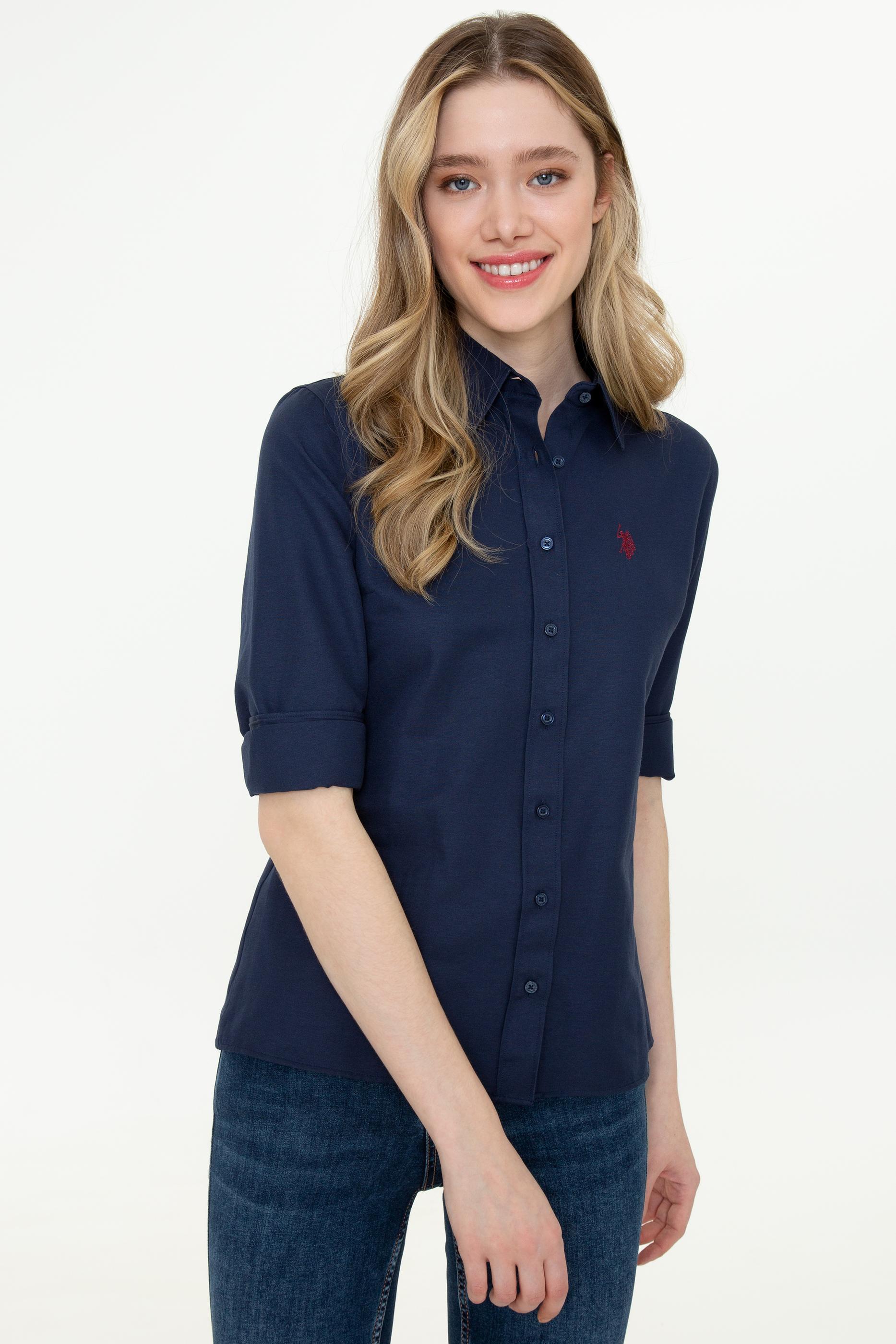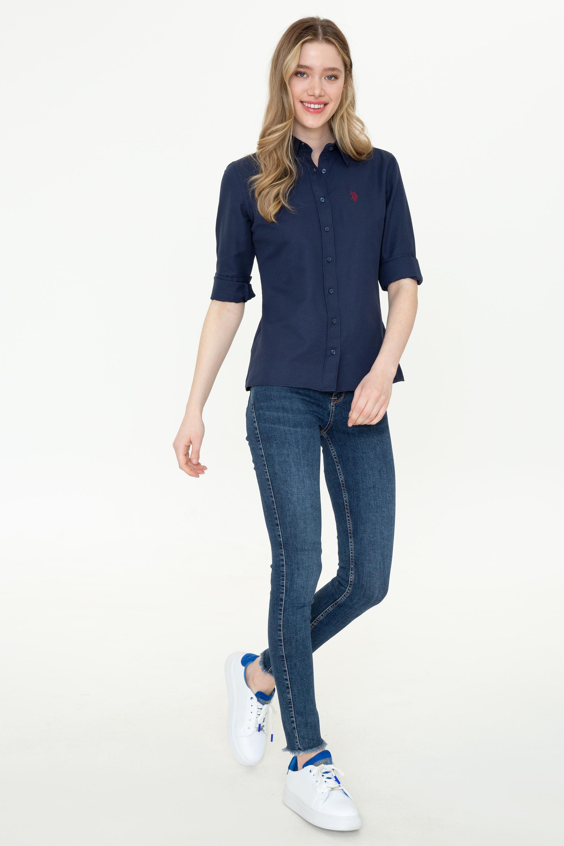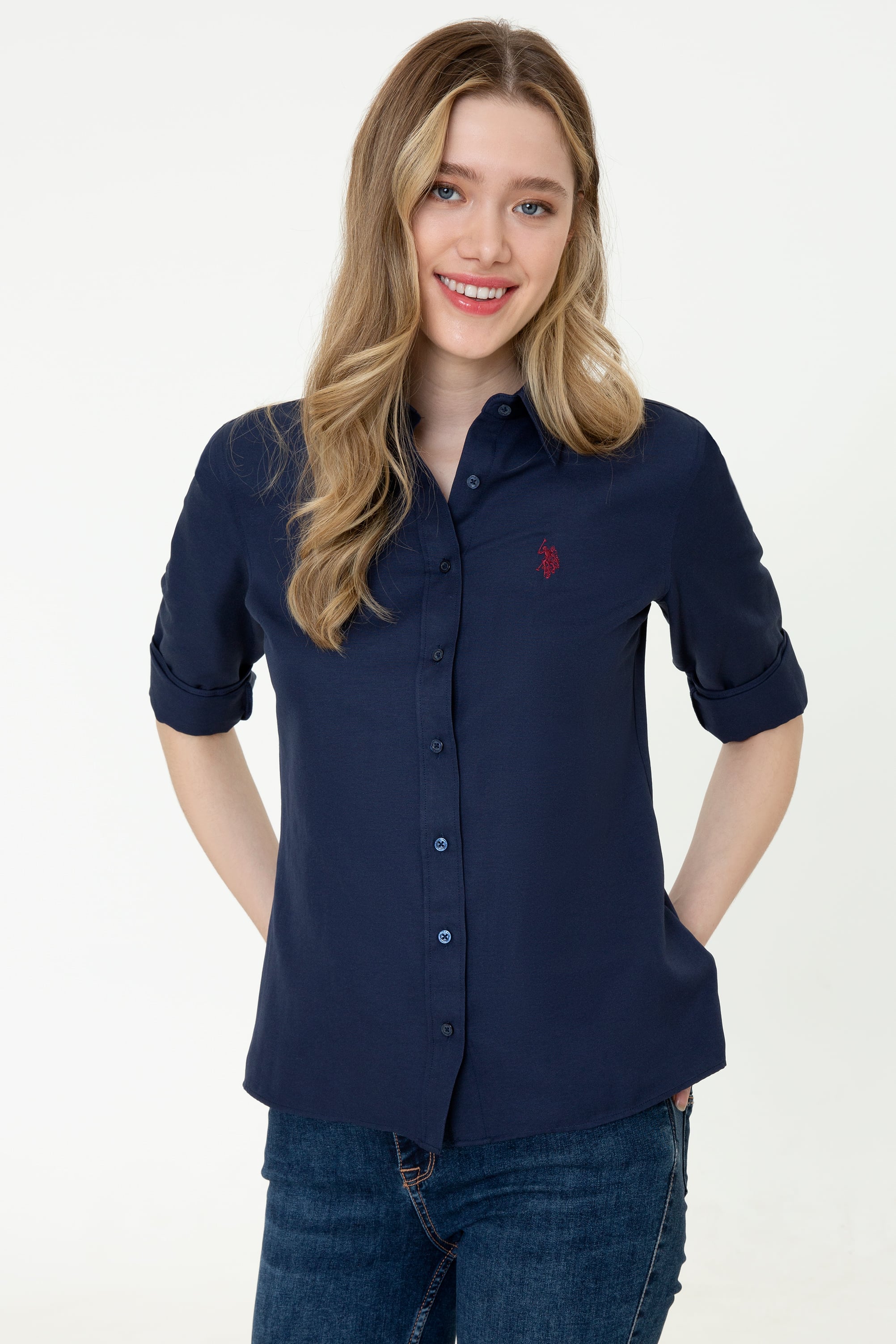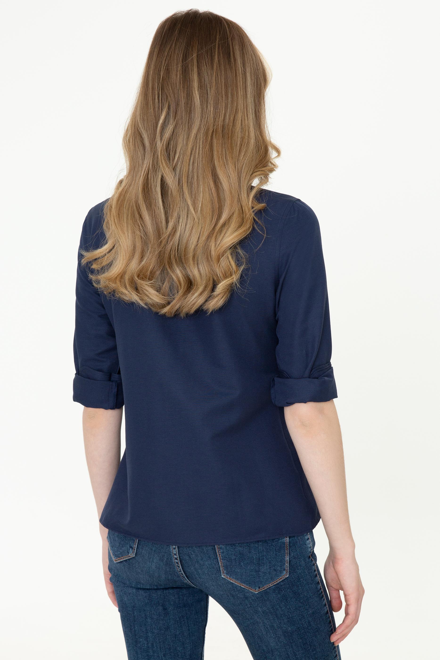 Kadın Lacivert Uzun Kollu Basic Gömlek