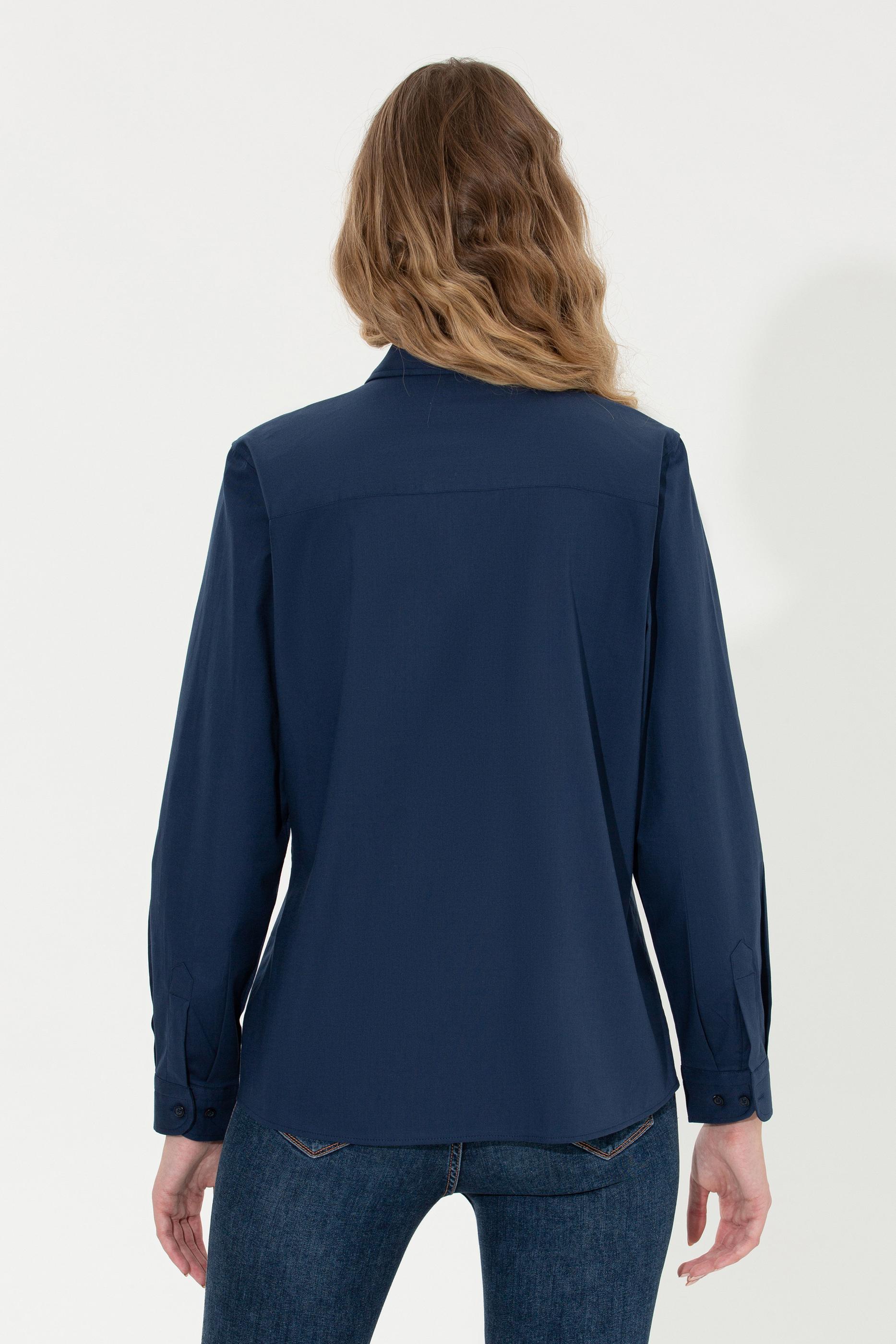 Kadın Lacivert Uzun Kollu Basic Gömlek