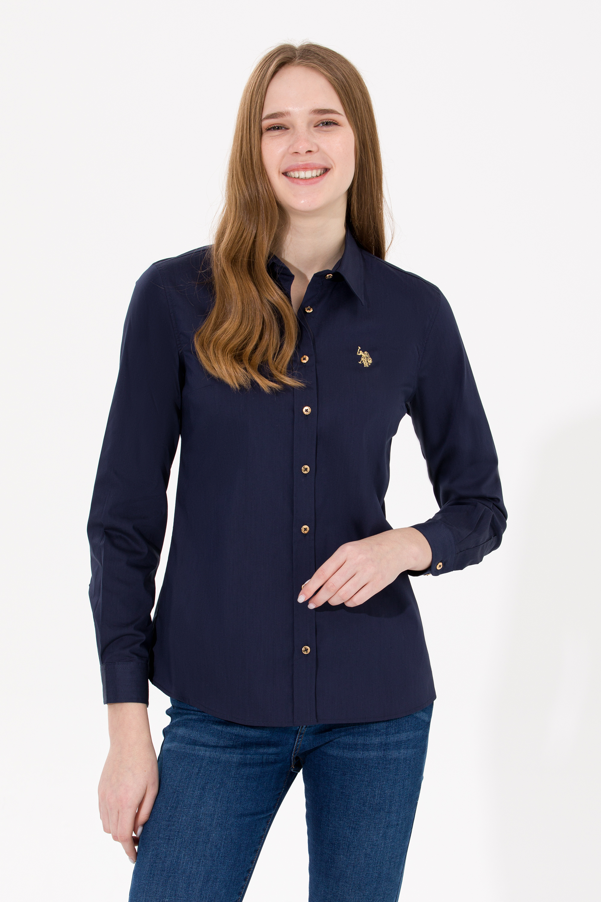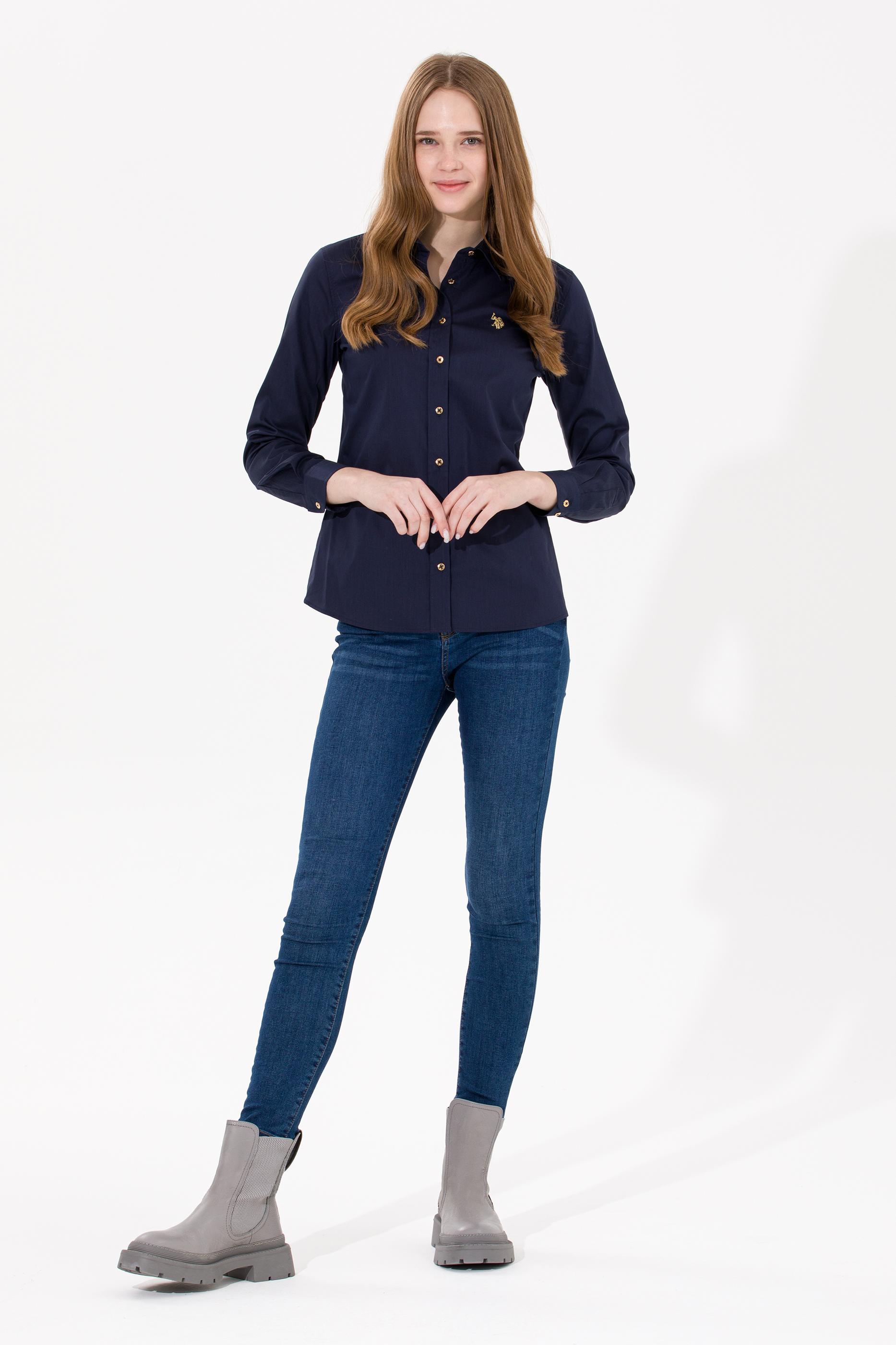 - Kadın Lacivert Uzun Kollu Basic Gömlek