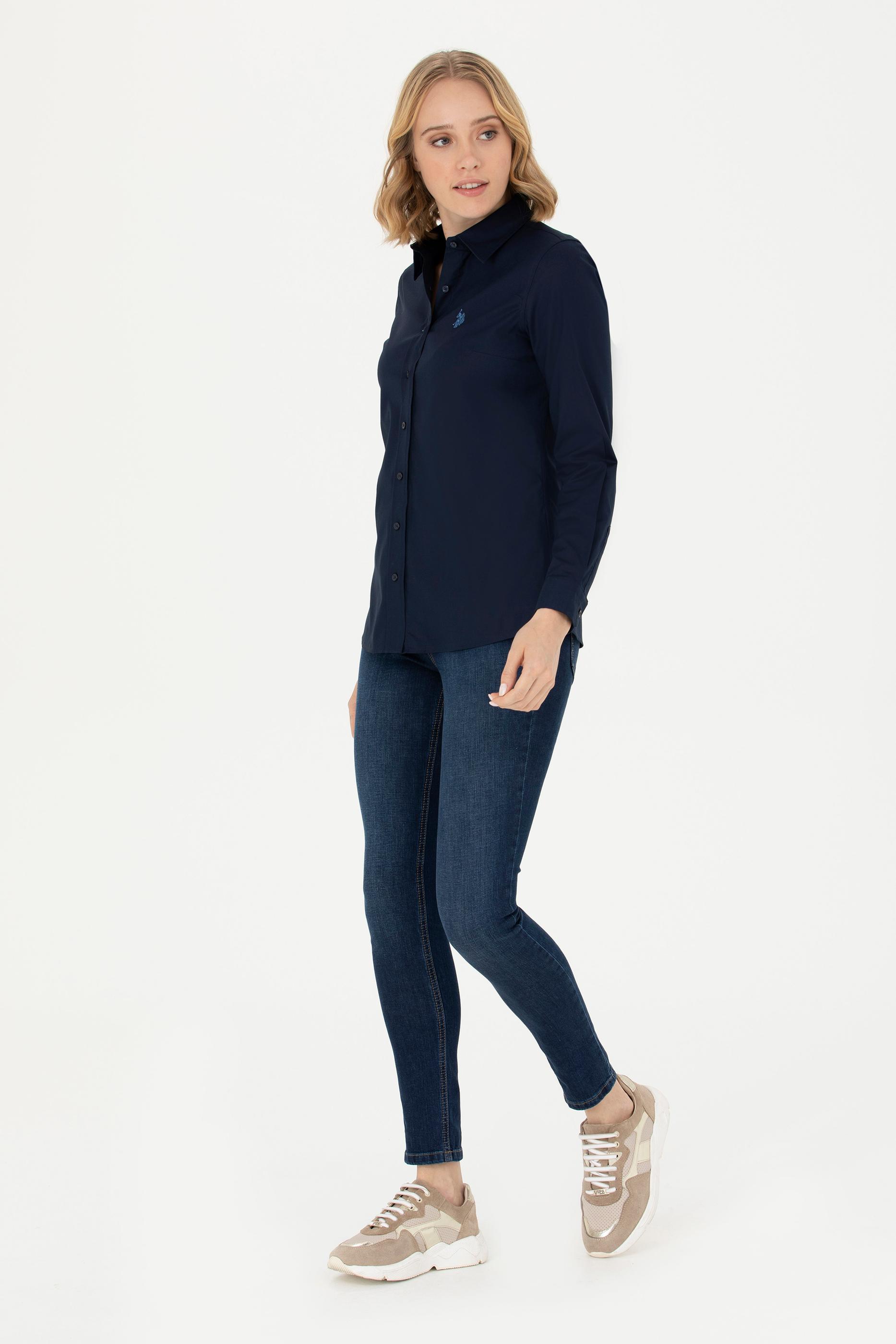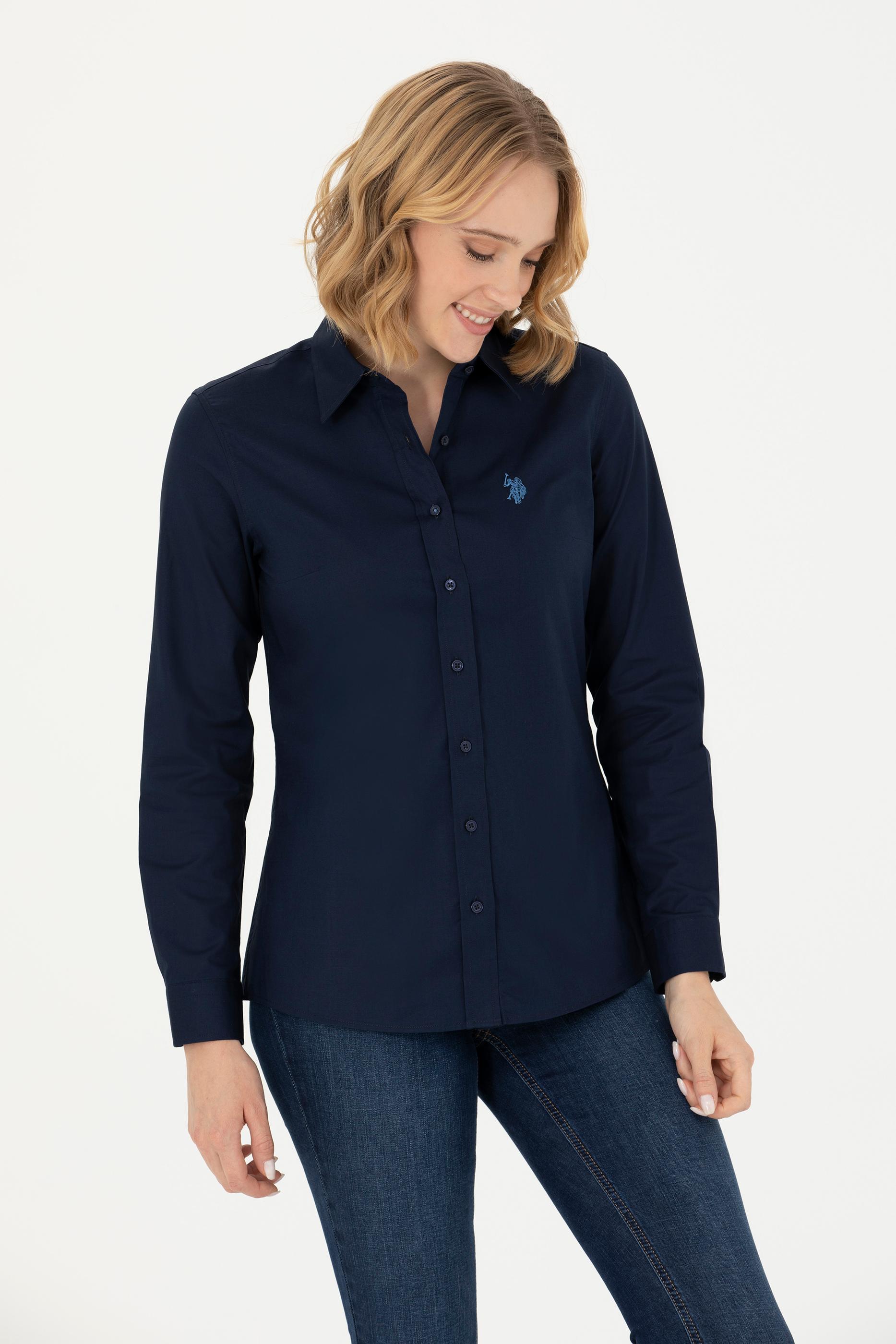 - Kadın Lacivert Uzun Kollu Basic Gömlek