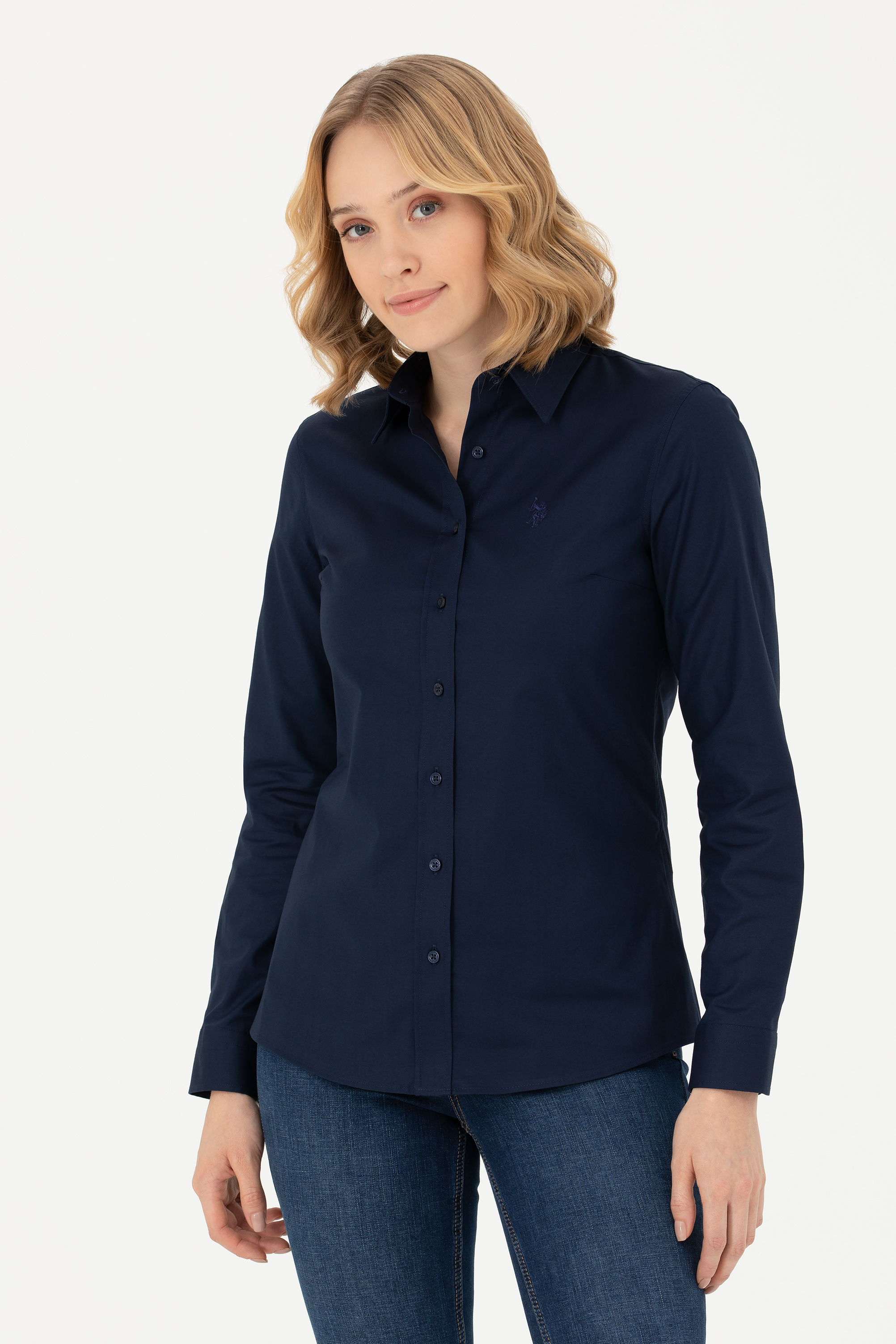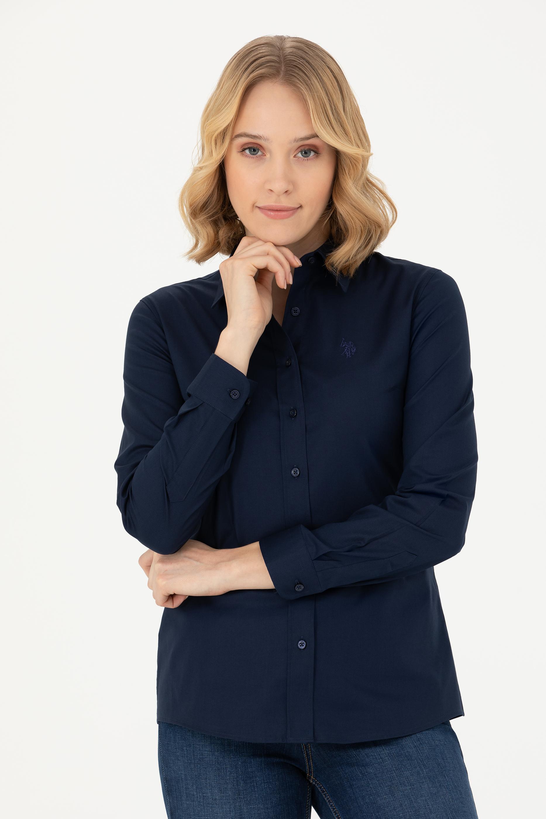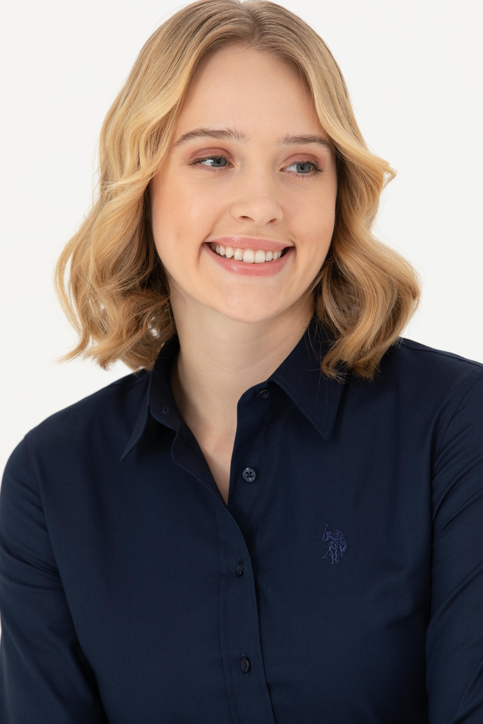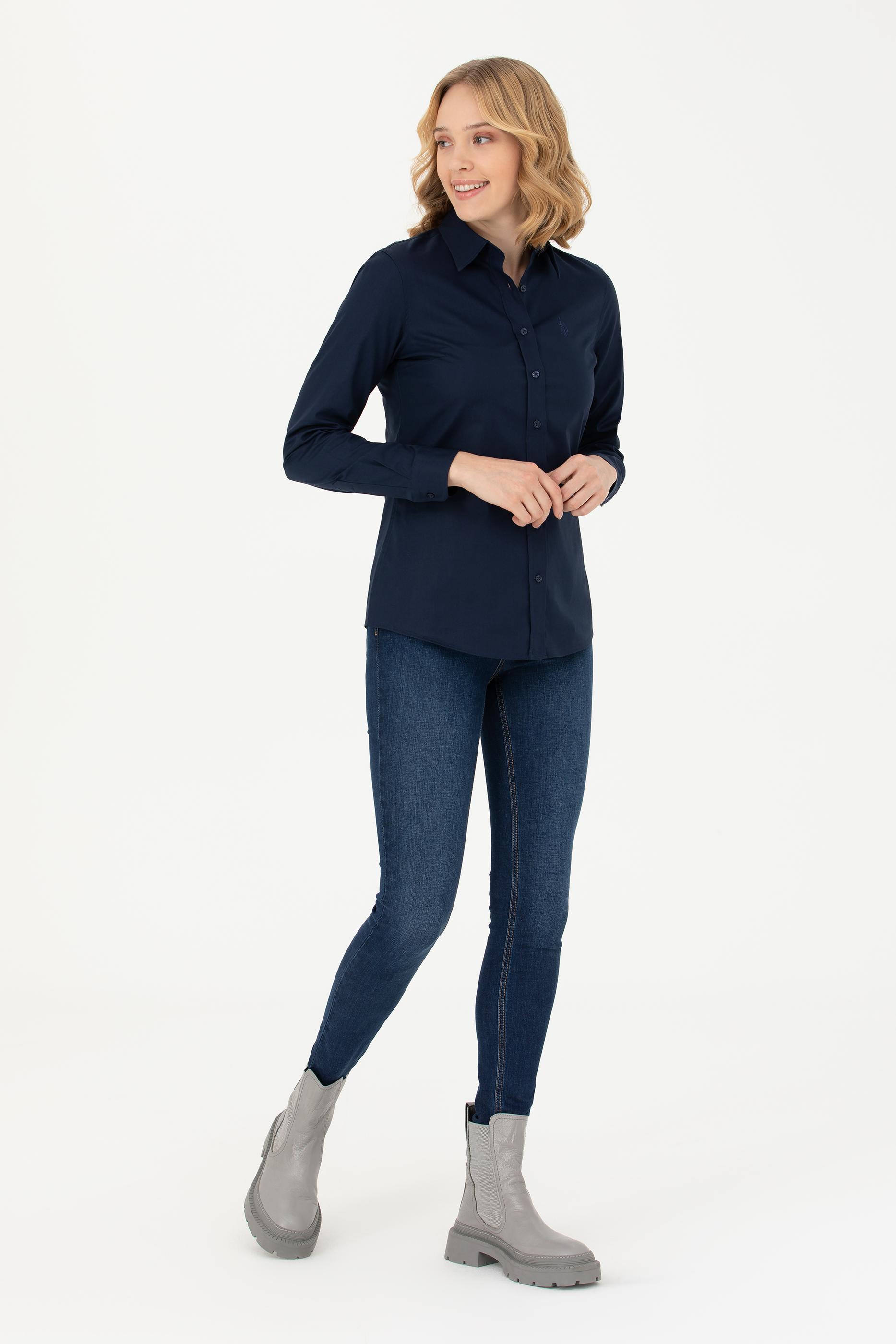 Kadın Lacivert Uzun Kollu Basic Gömlek