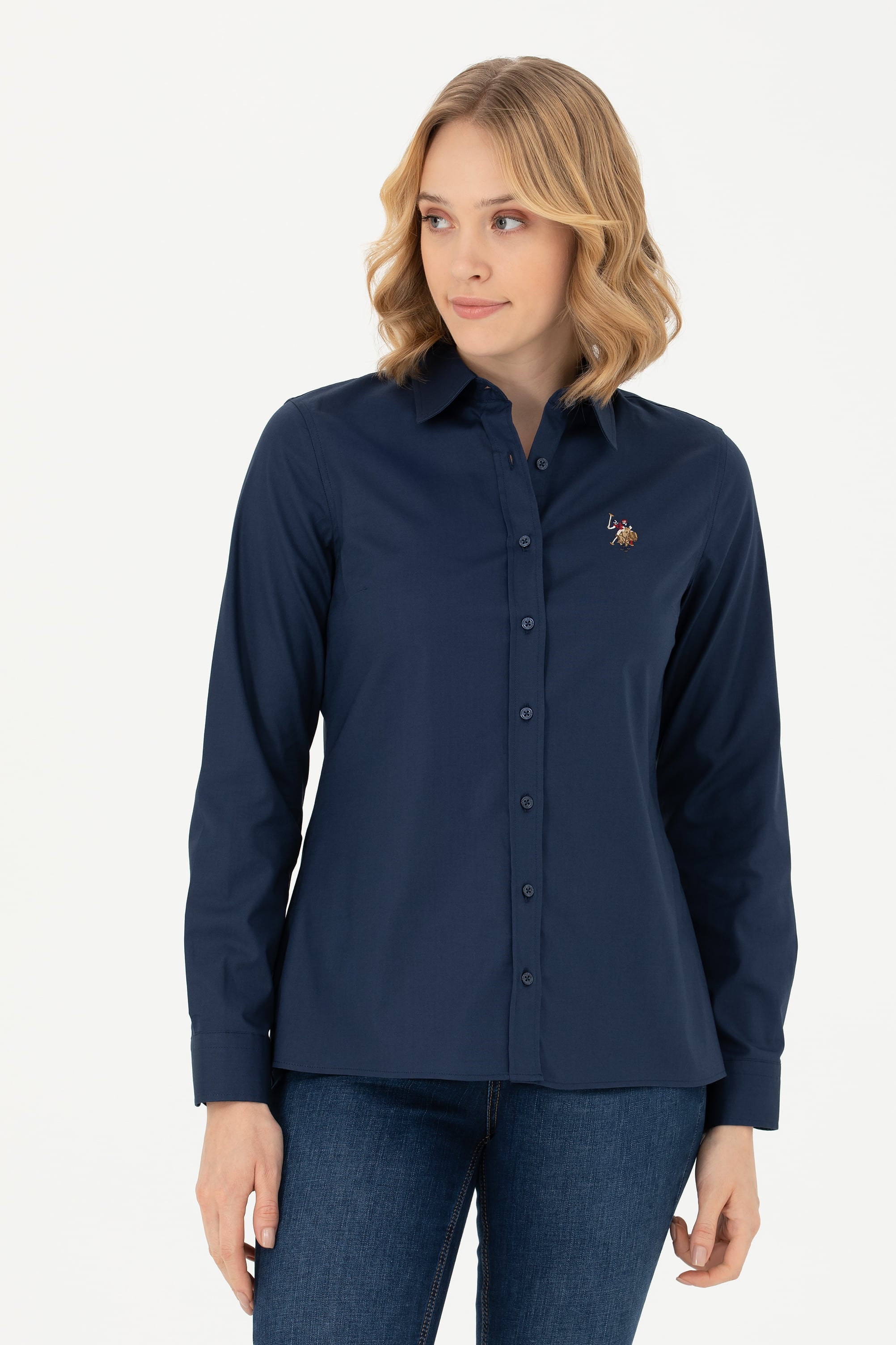 Kadın Lacivert Uzun Kollu Basic Gömlek
