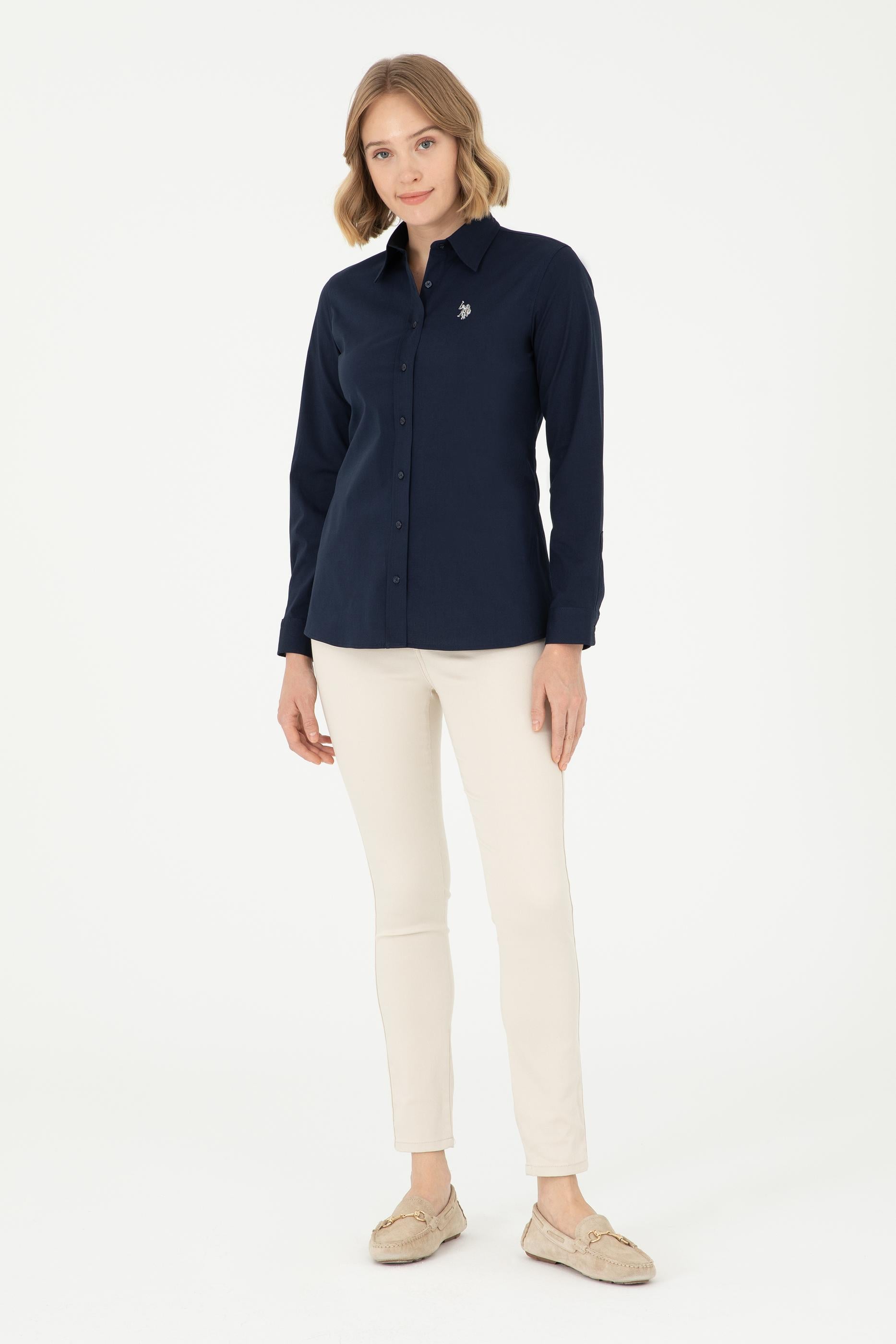 Kadın Lacivert Uzun Kollu Basic Gömlek - 50295640020