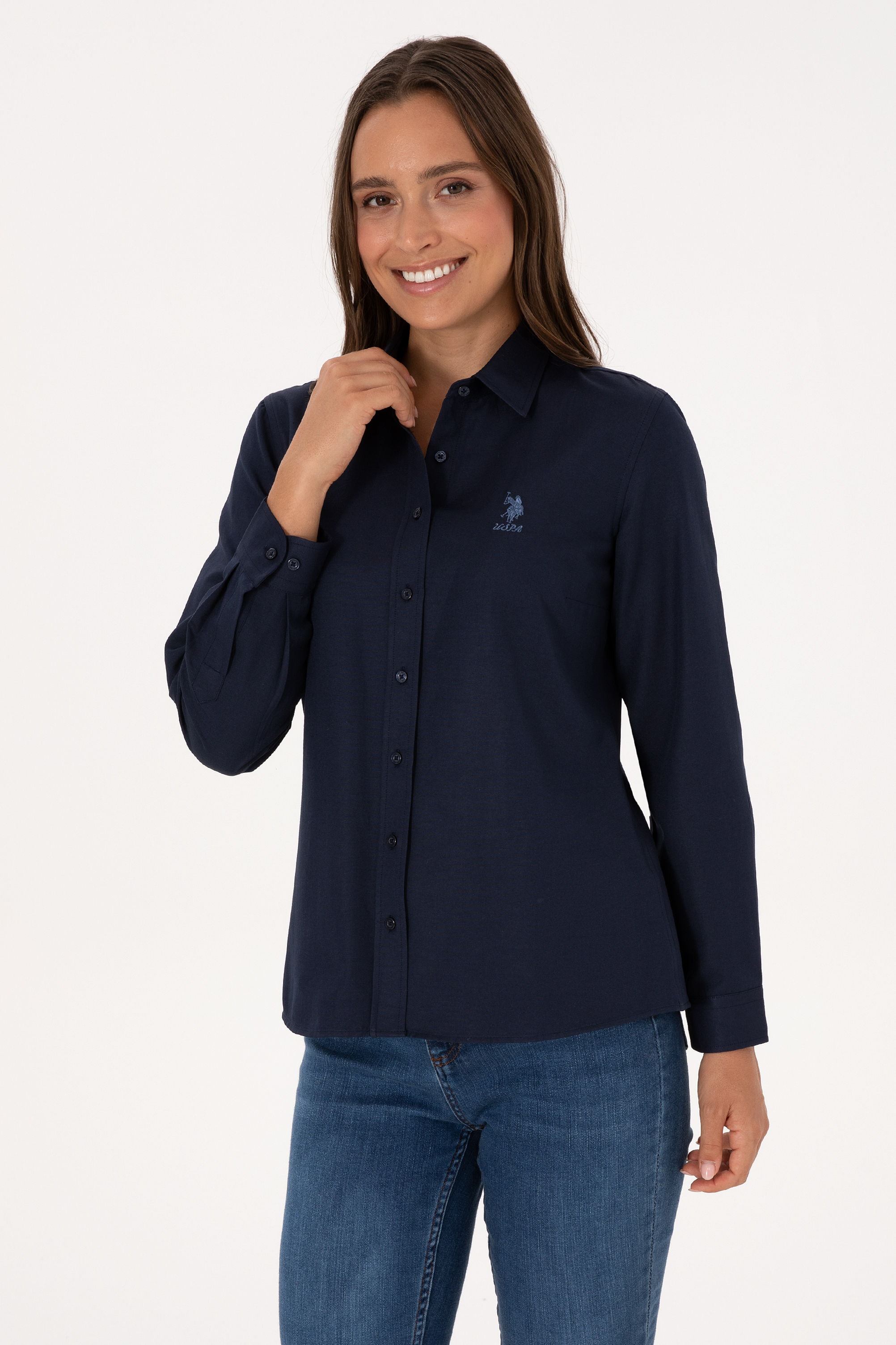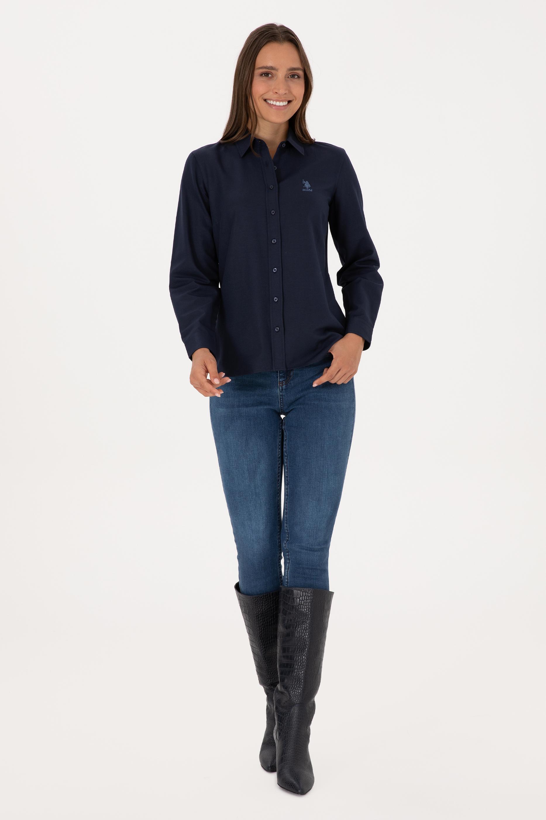 - Kadın Lacivert Uzun Kollu Basic Gömlek
