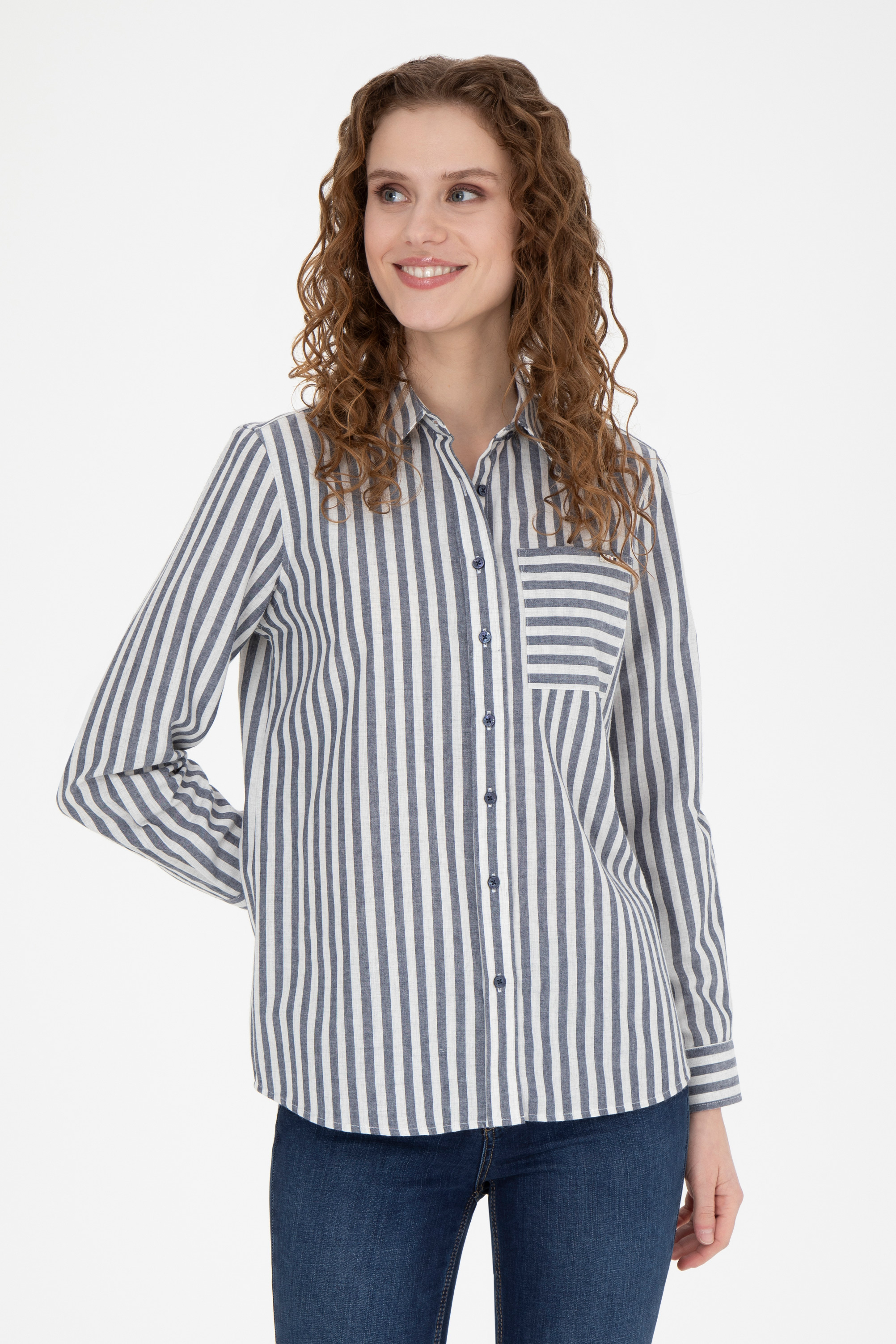 Kadın Lacivert Uzun Kollu Gömlek - 50254660020