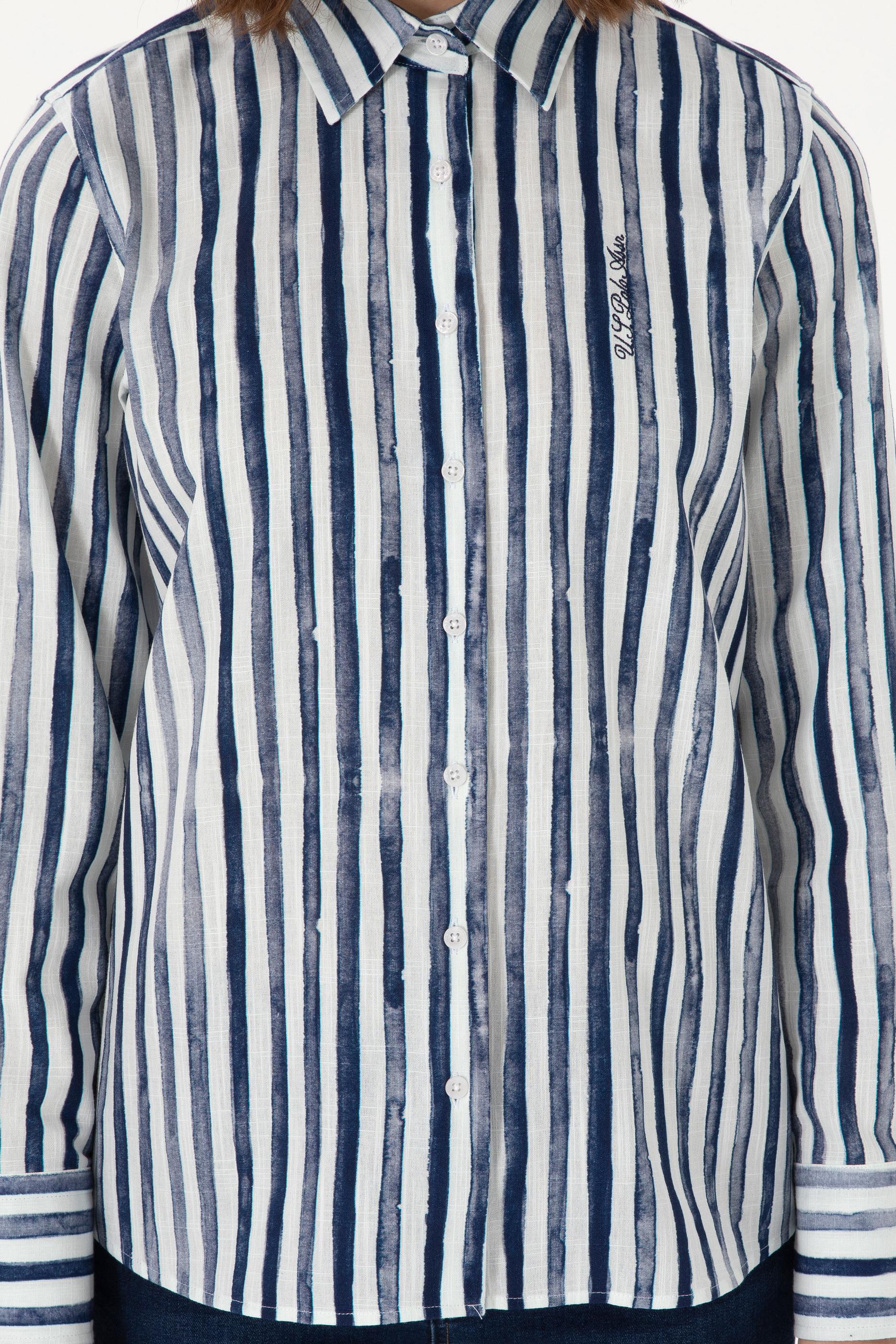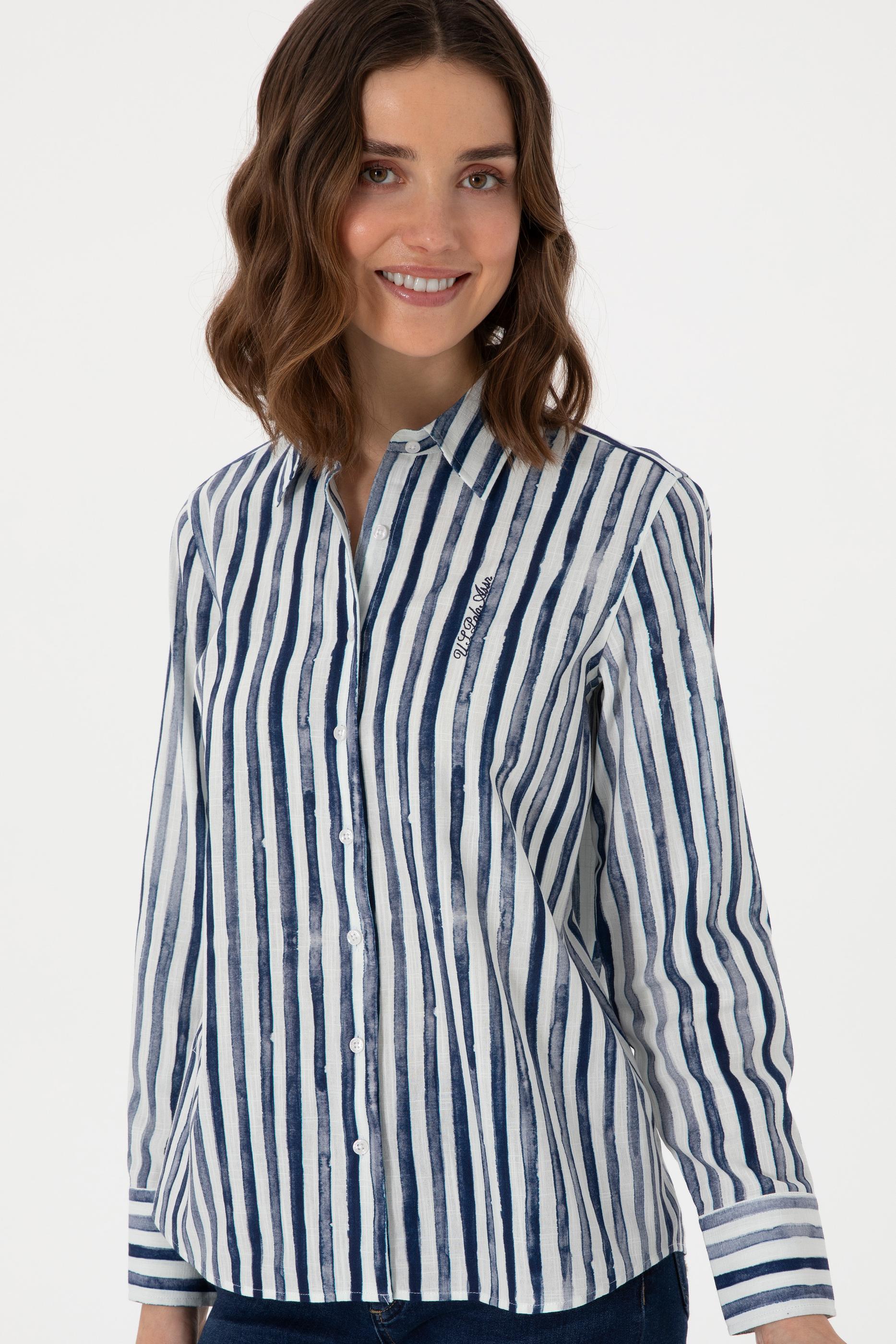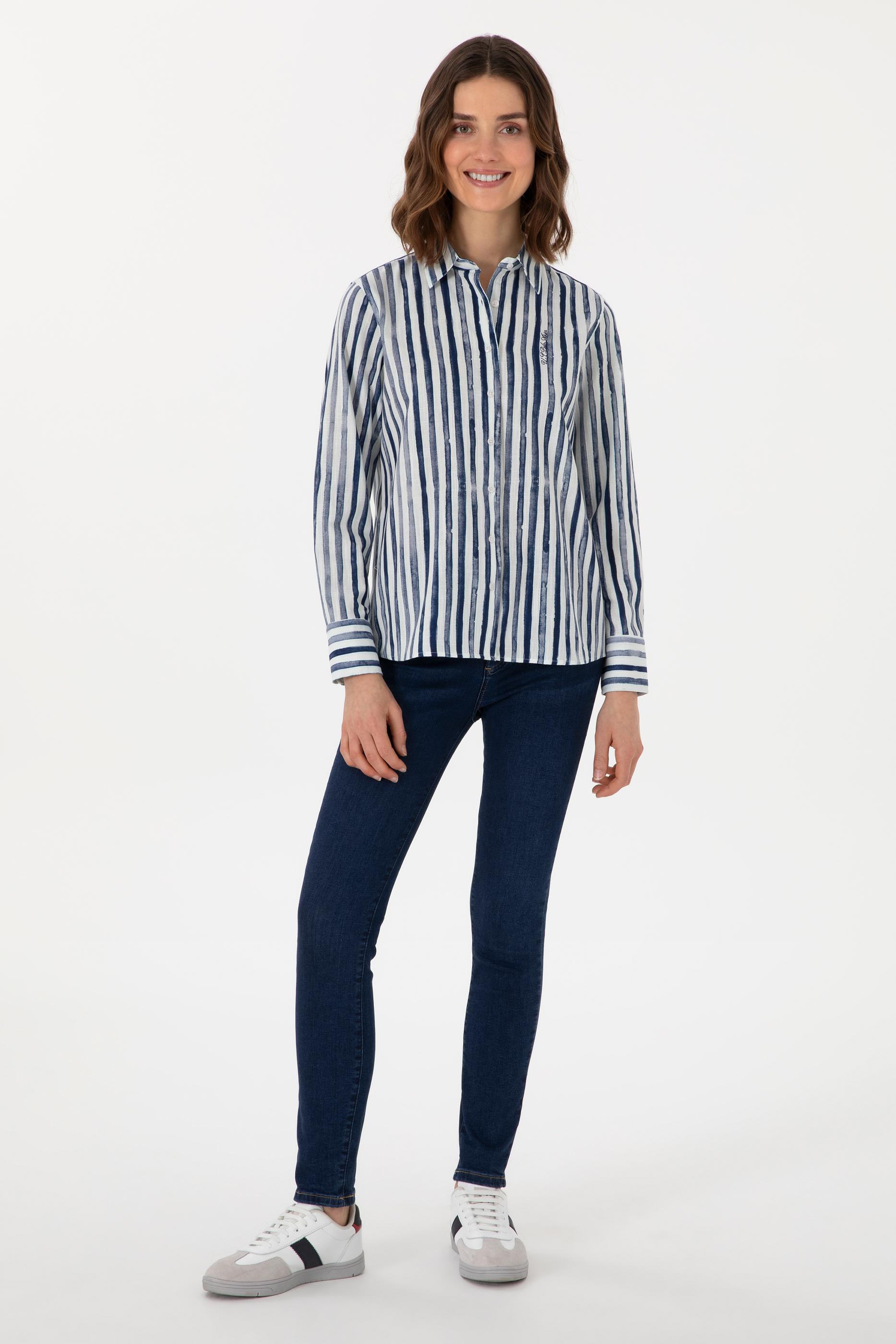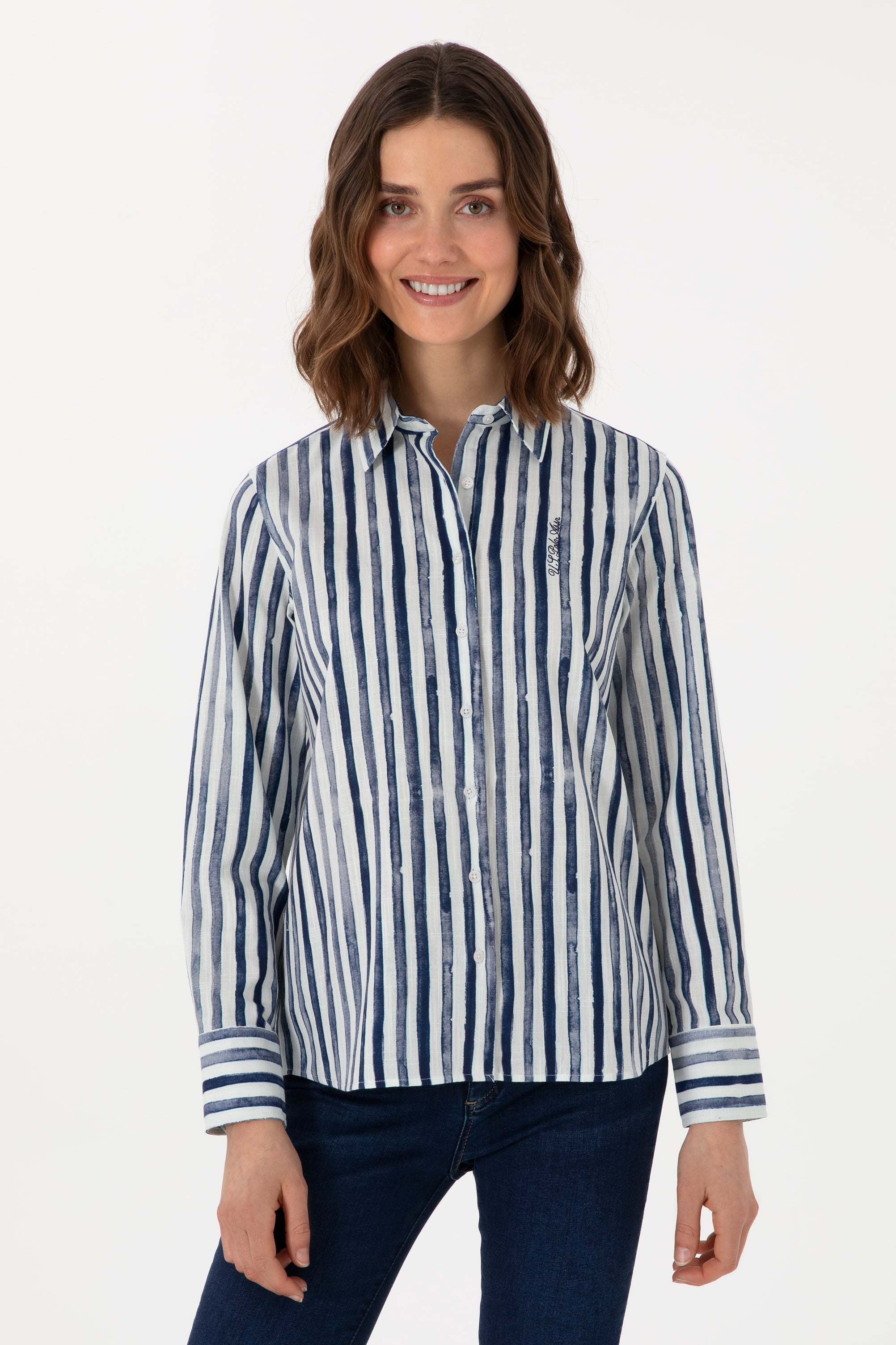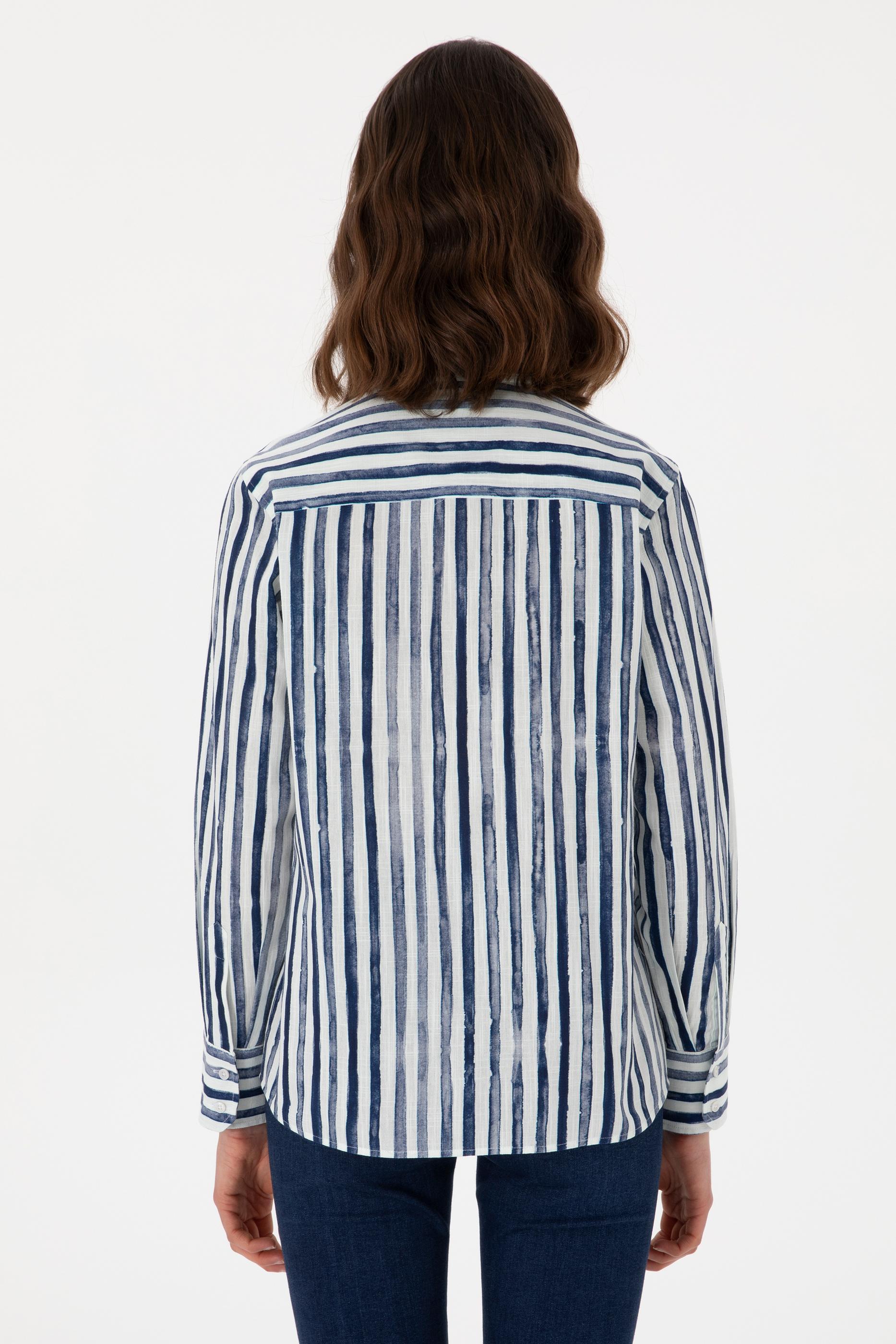 Kadın Lacivert Uzun Kollu Çizgili Gömlek