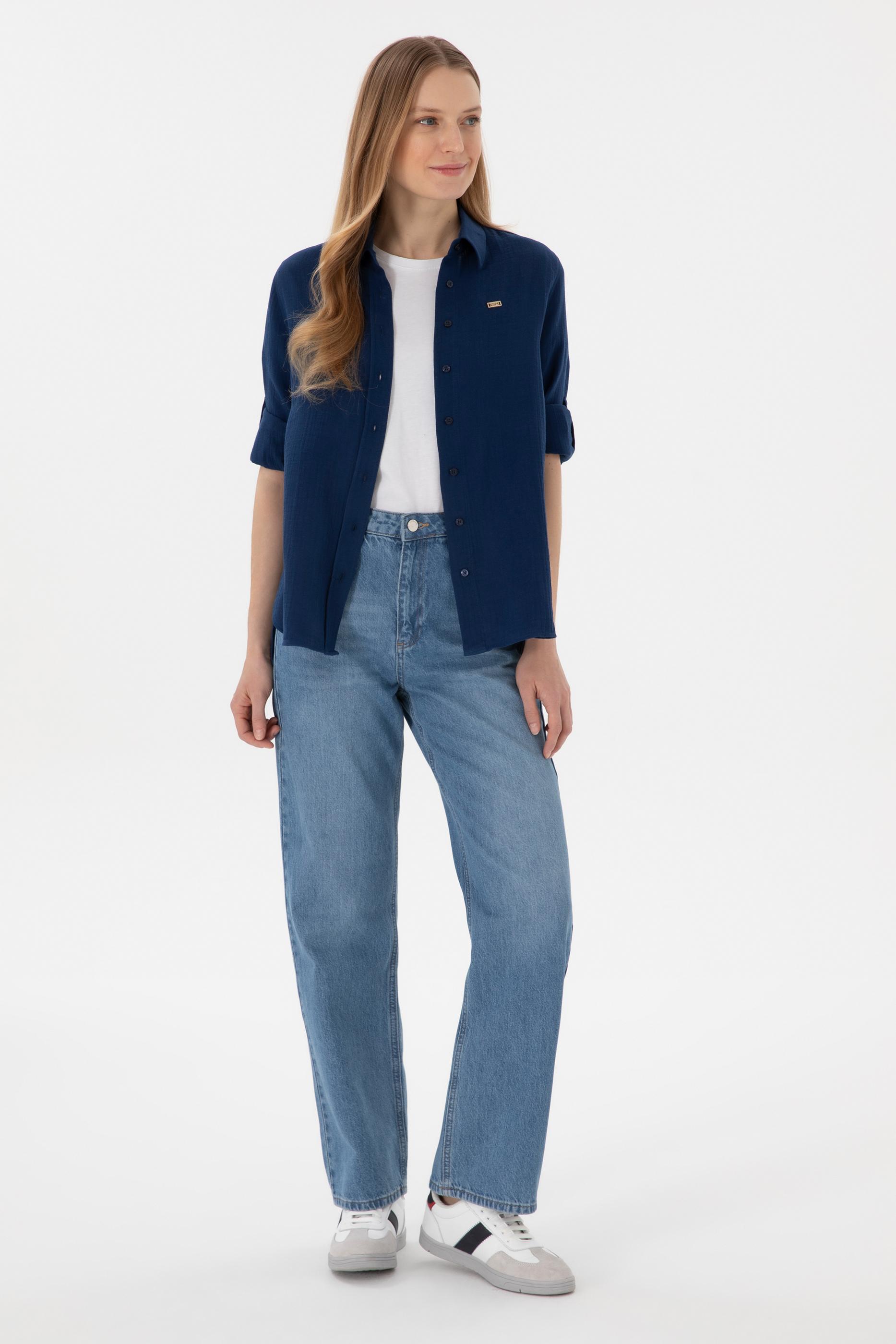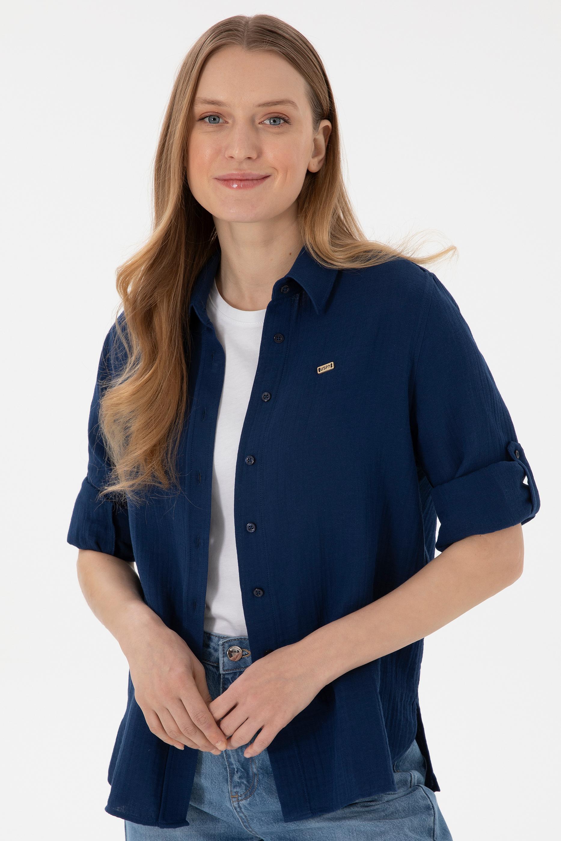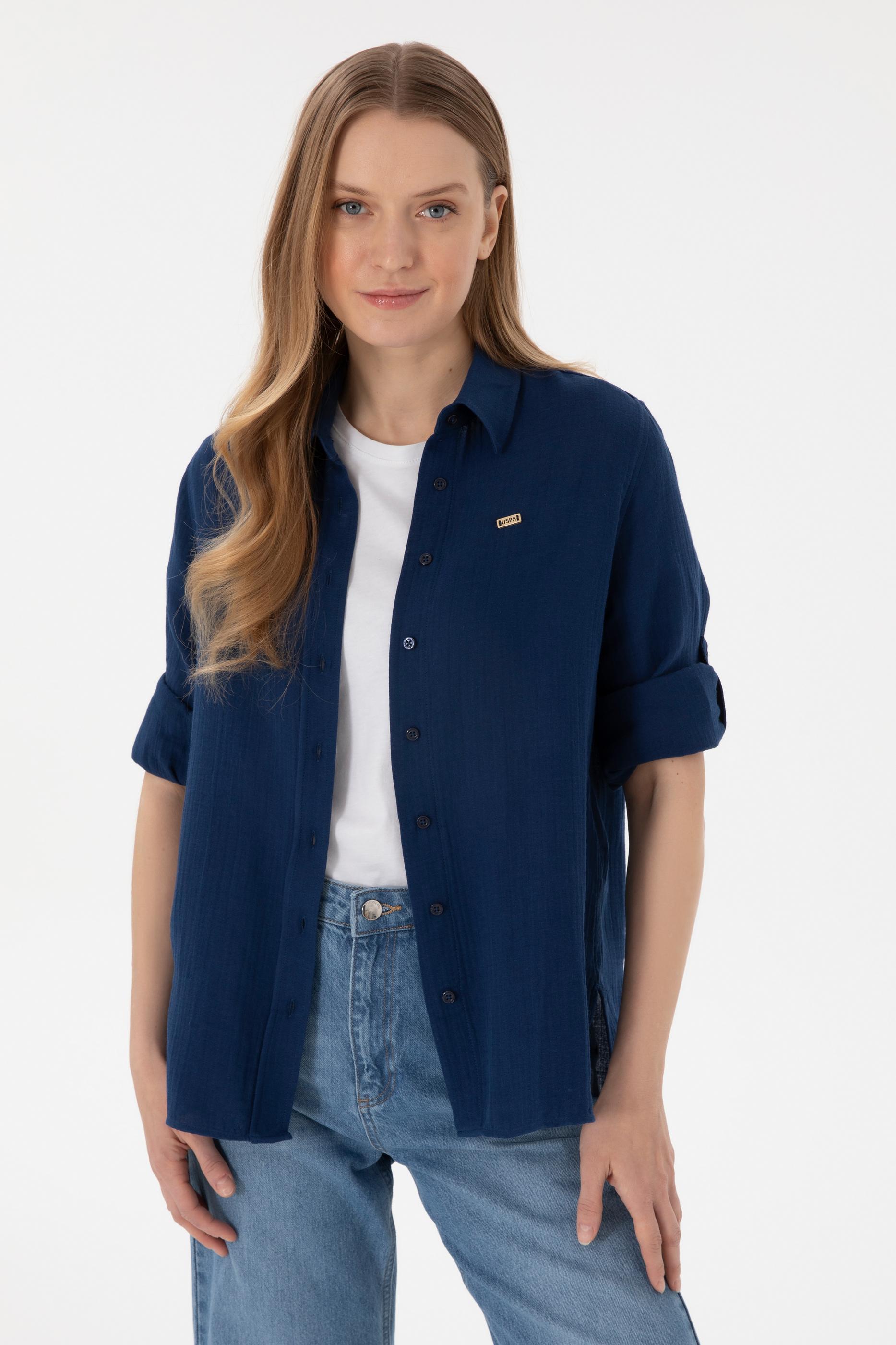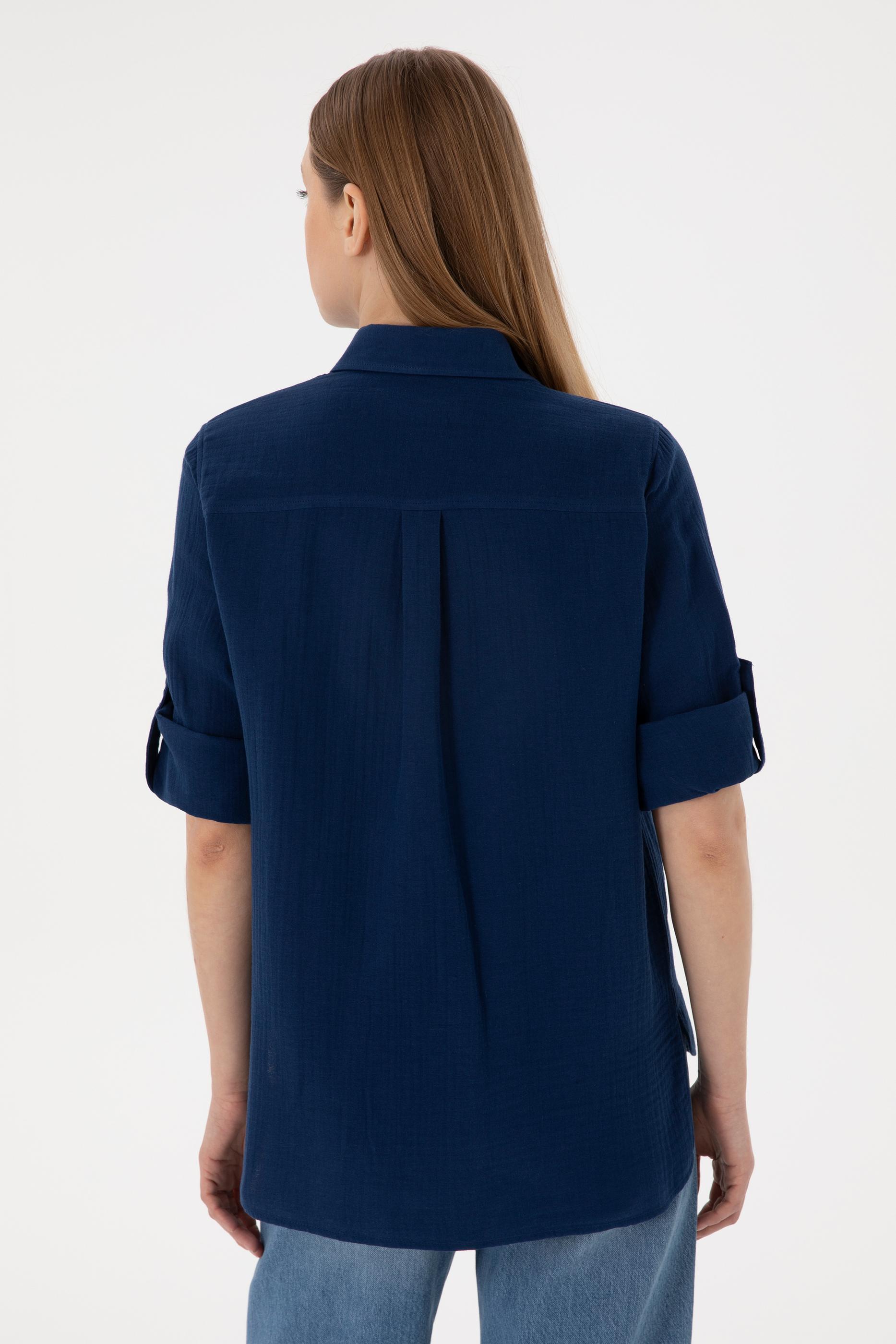 - Kadın Lacivert Uzun Kollu Tunik Gömlek