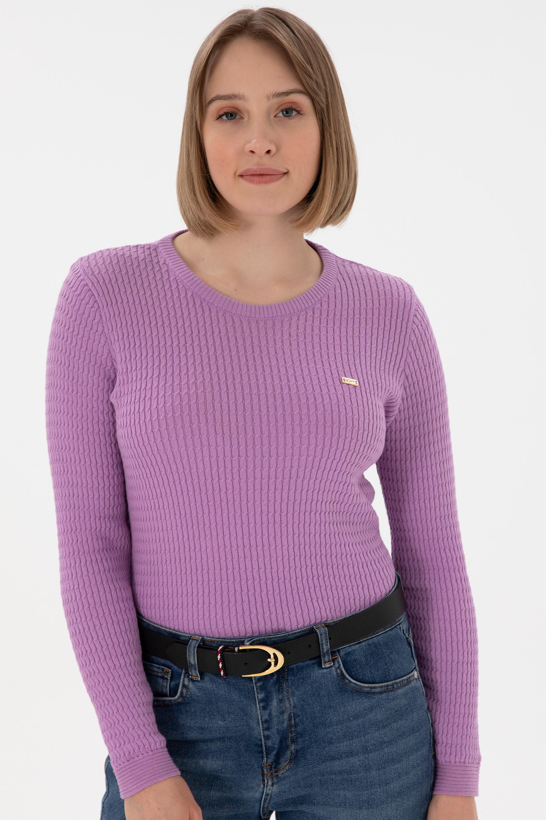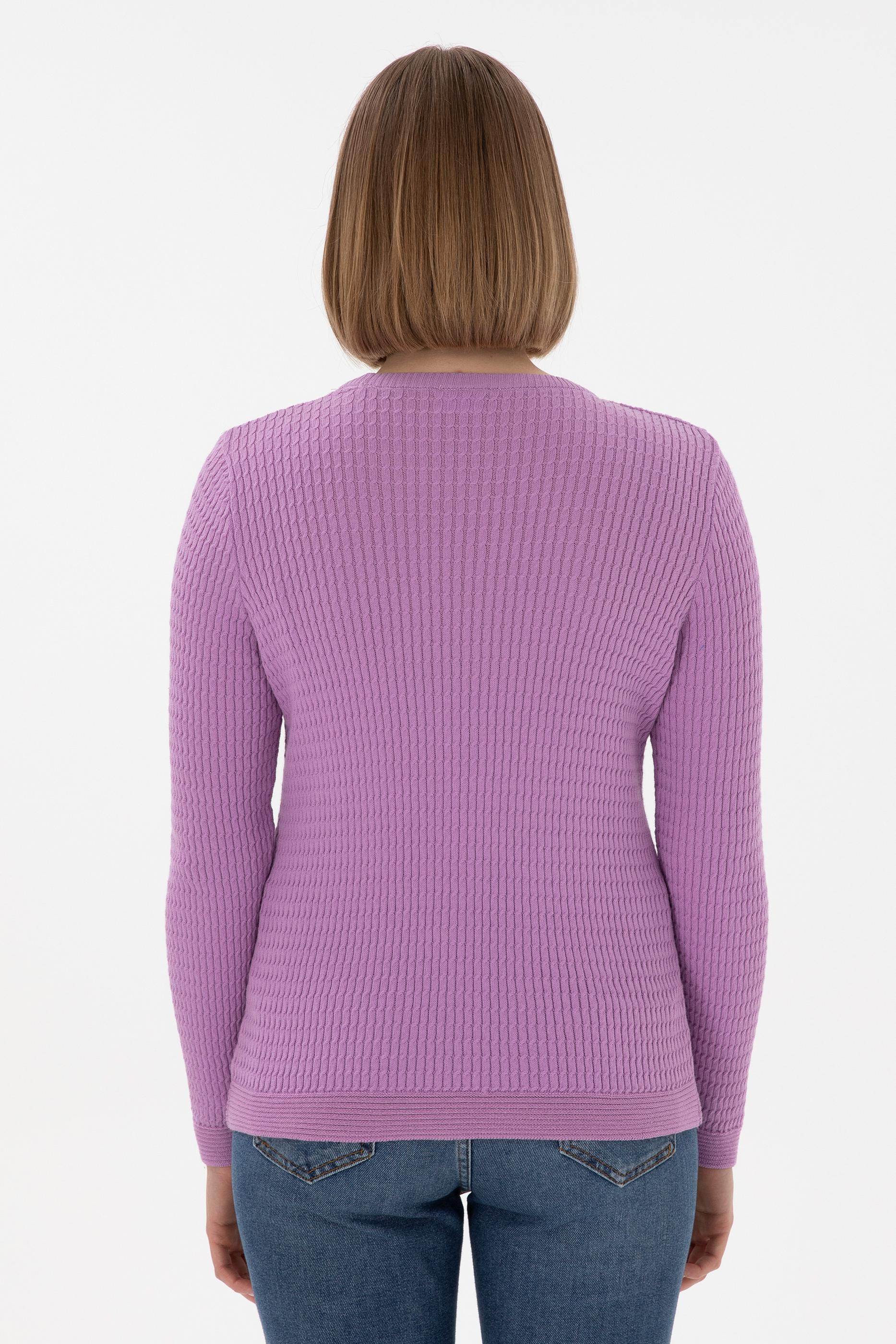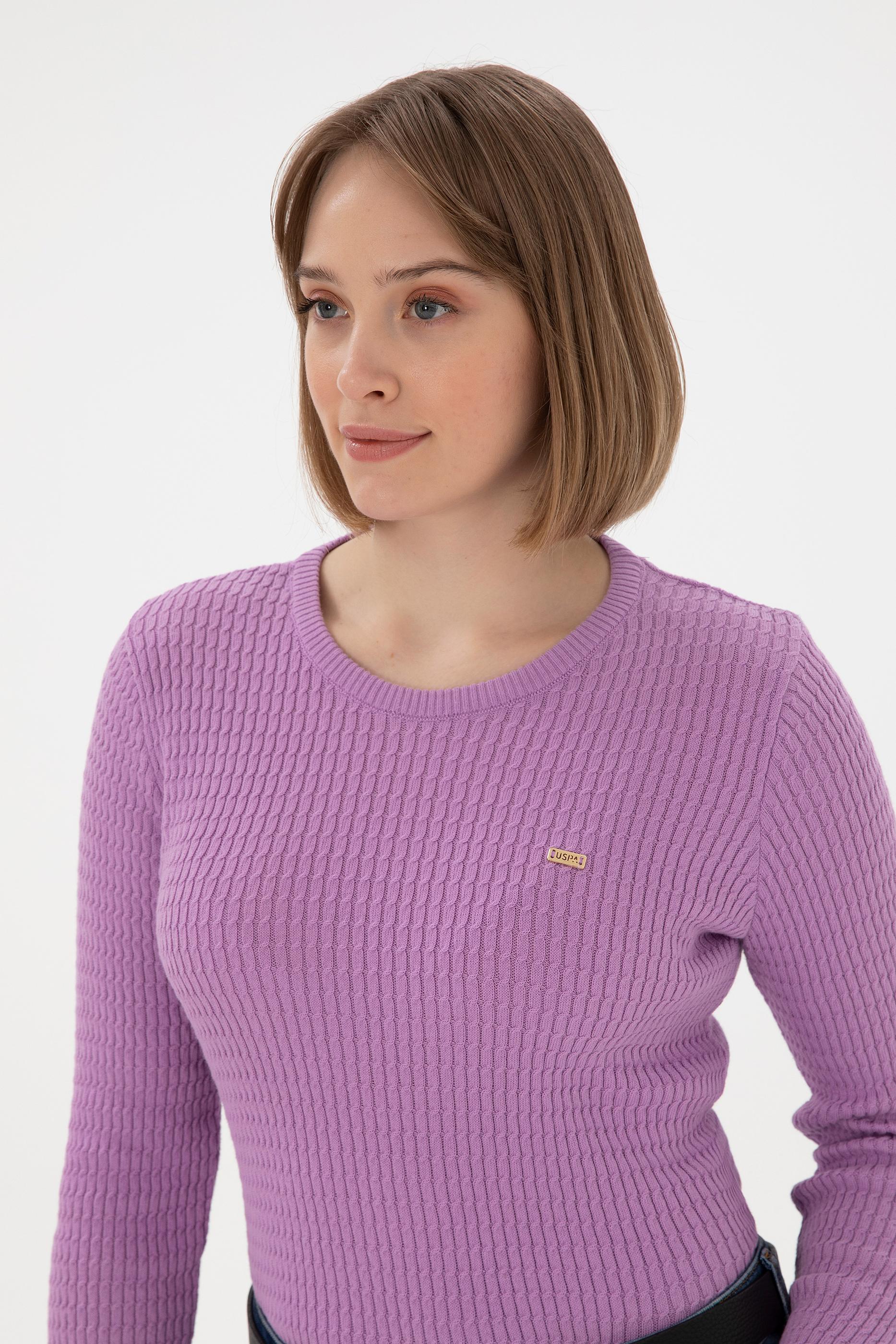 Kadın Lila Bisiklet Yaka Basic Kazak