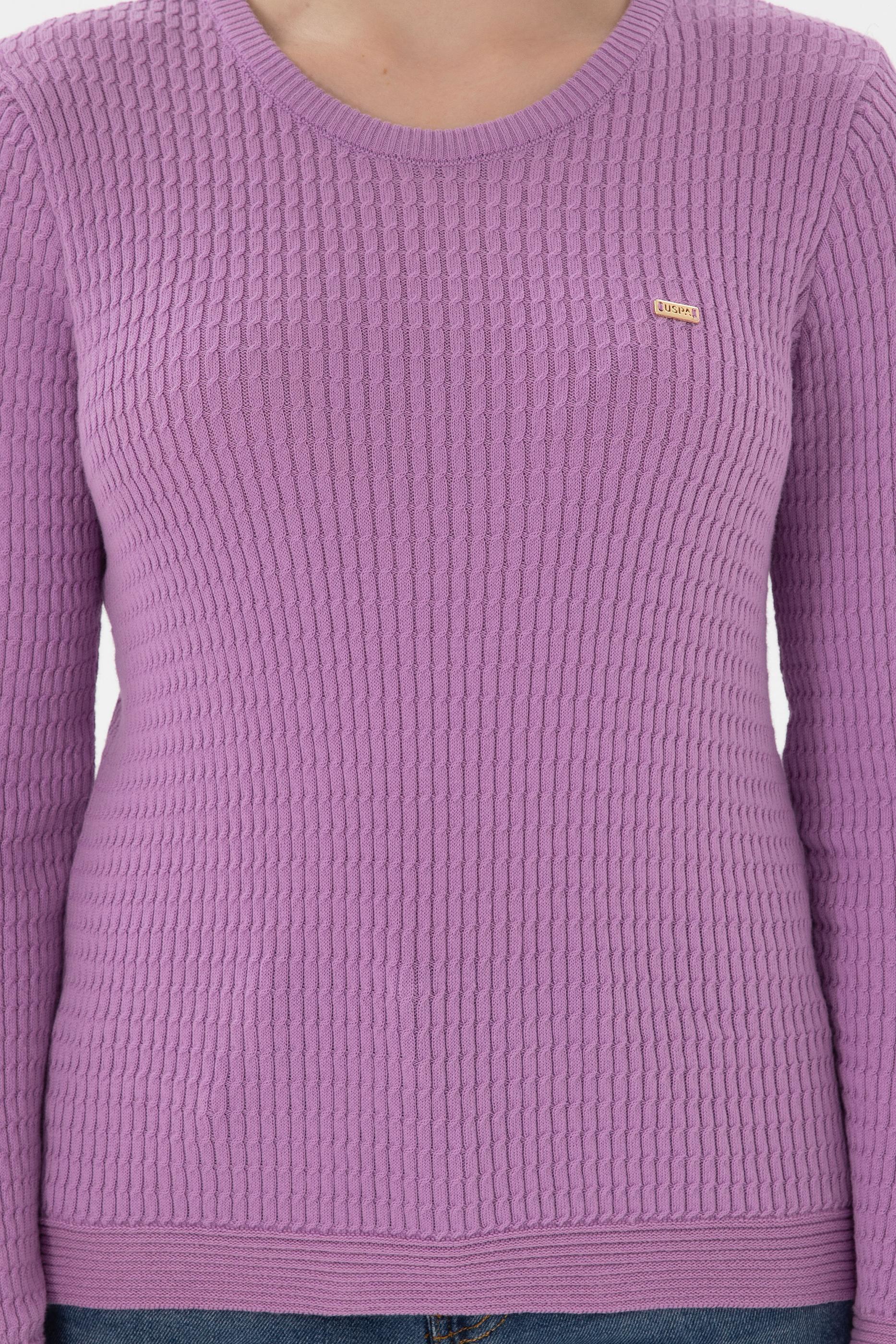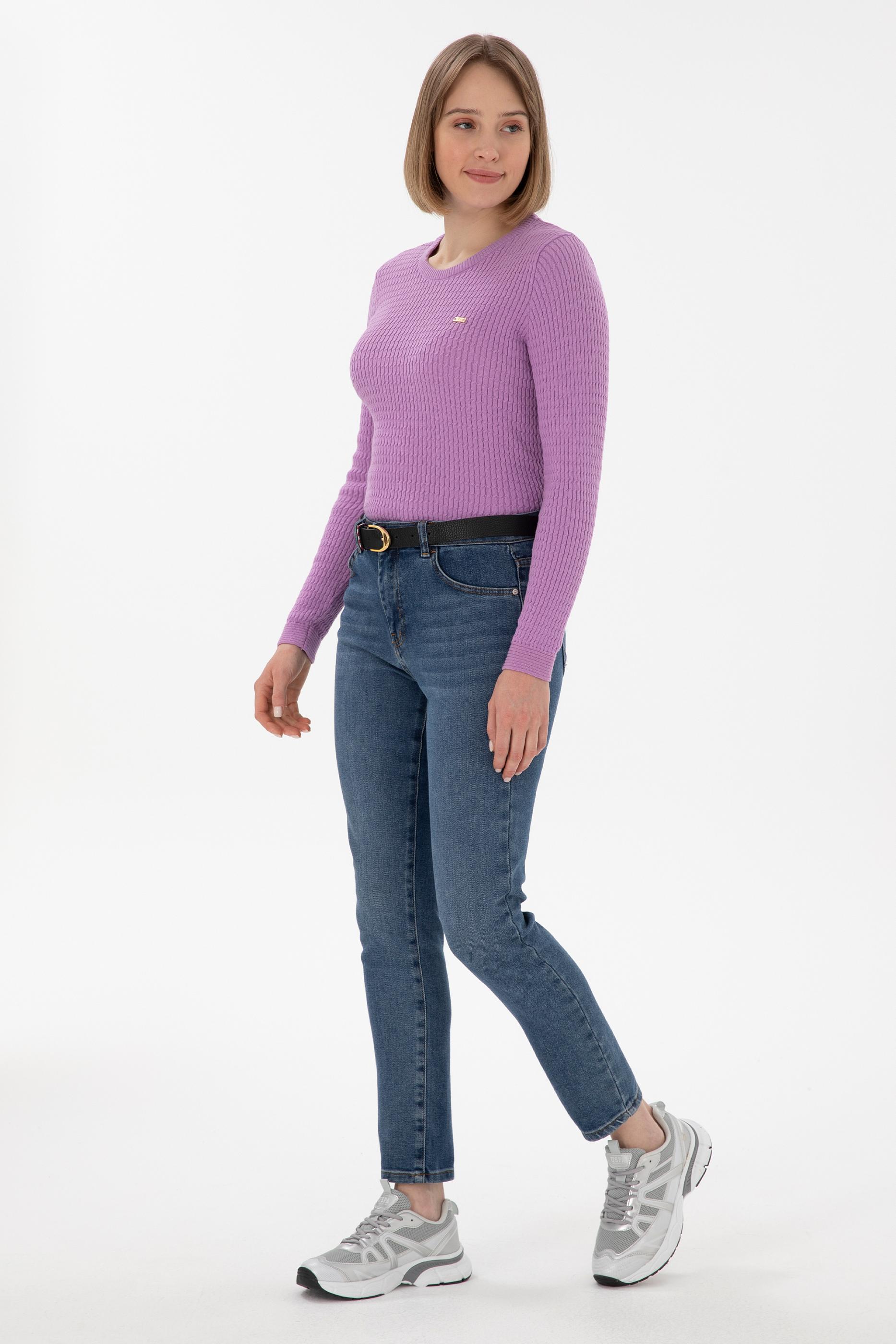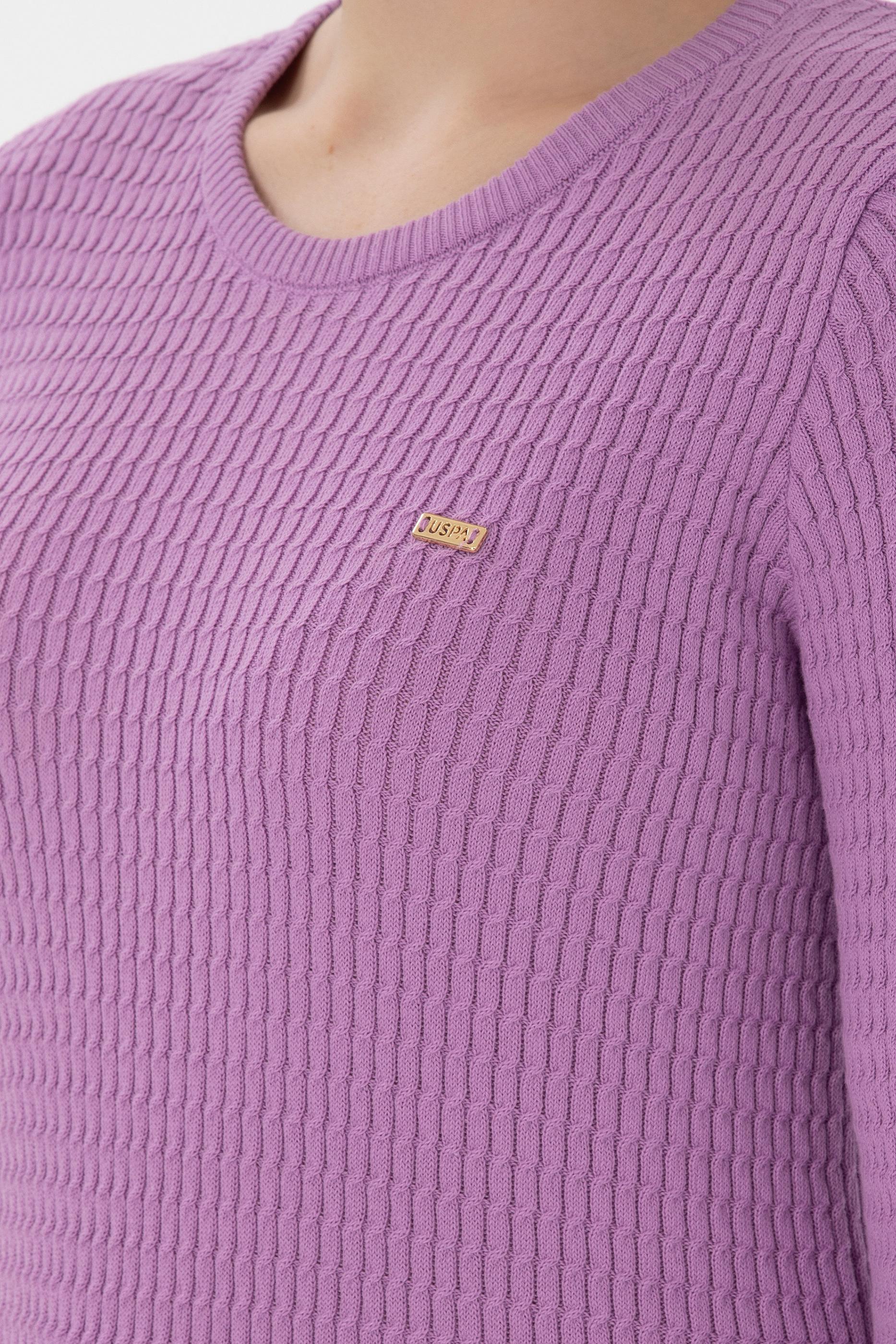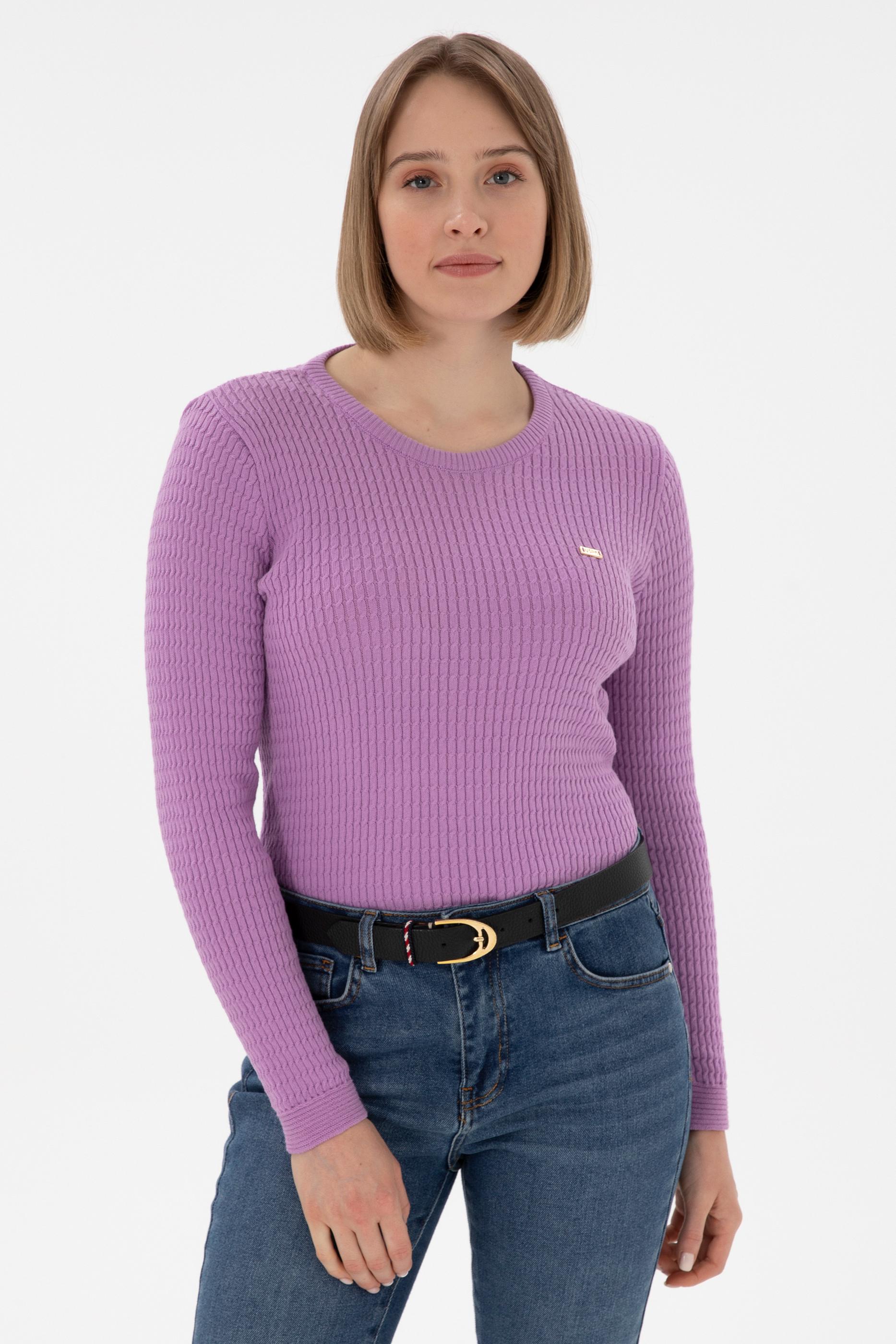 Kadın Lila Bisiklet Yaka Basic Kazak