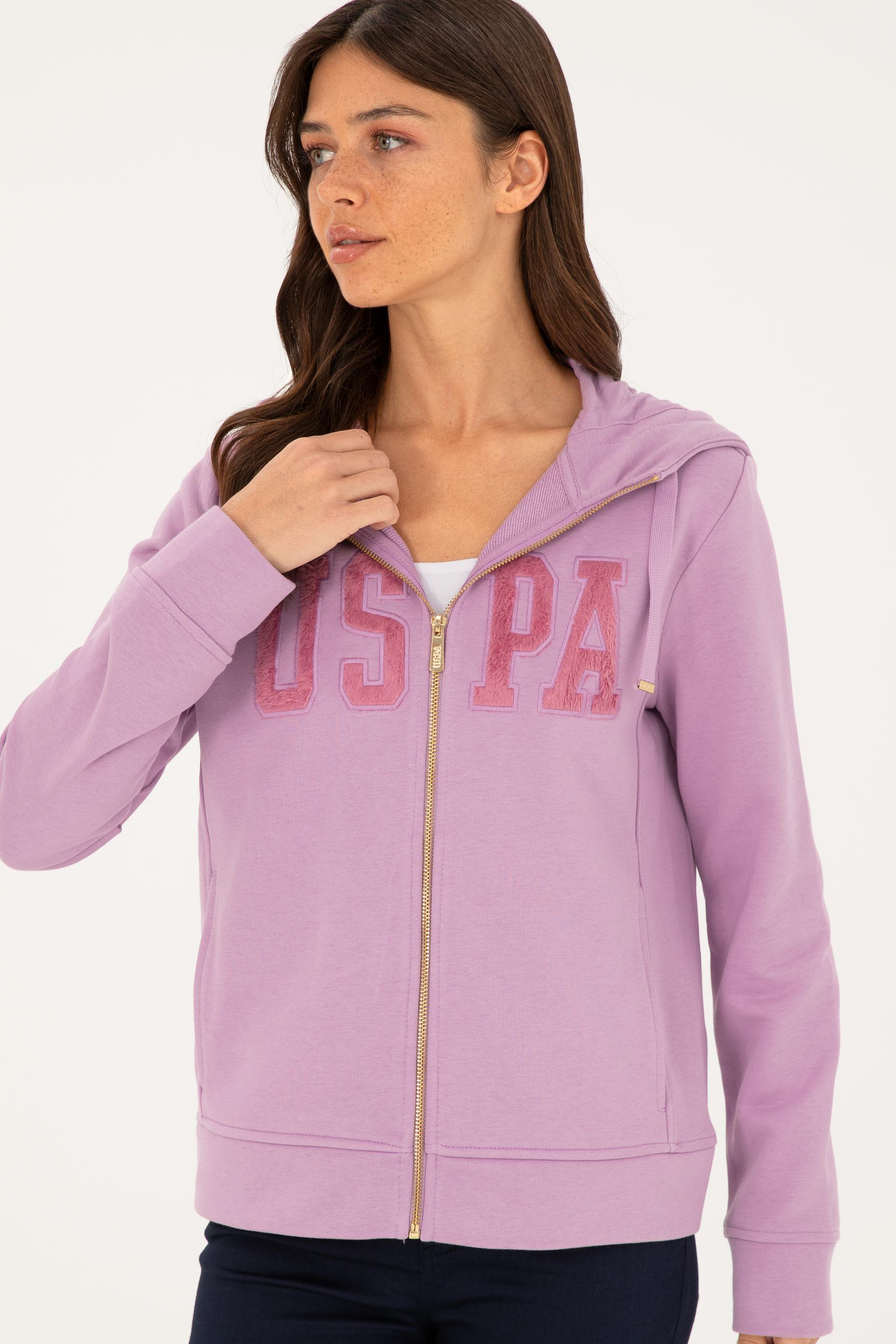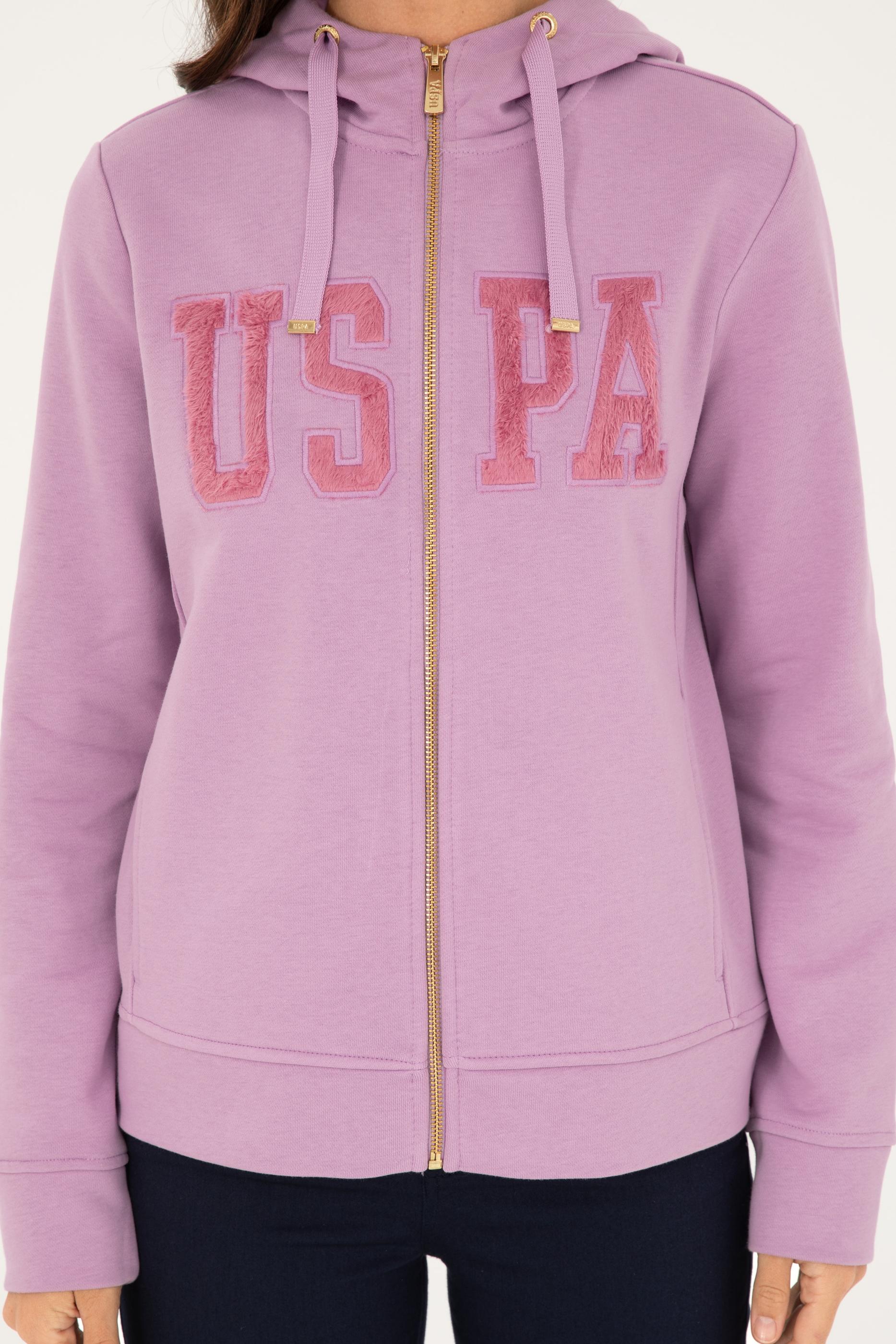 - Kadın Lila Basic Kapüşonlu Sweatshirt