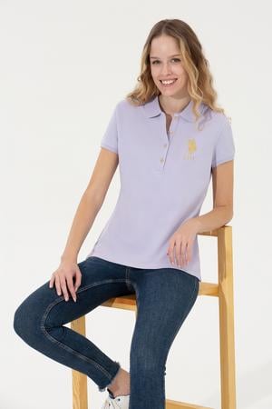 Kadın Lila Basic Polo Yaka Tişört