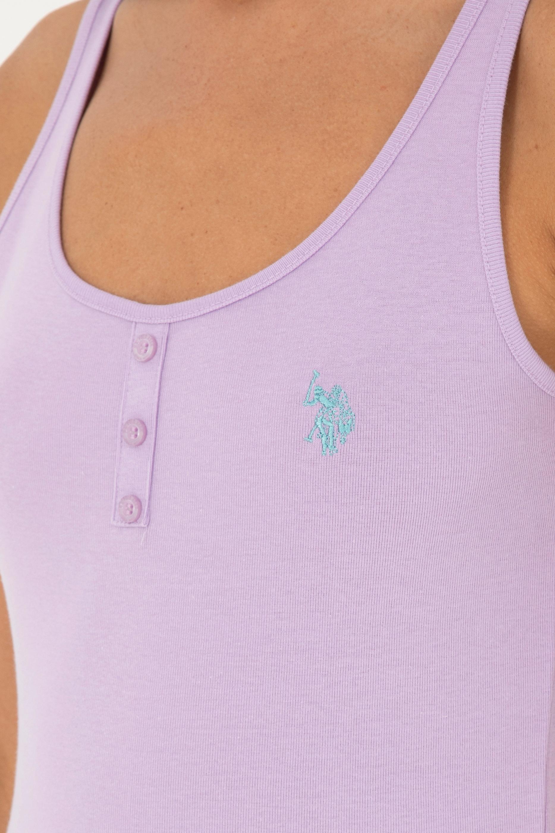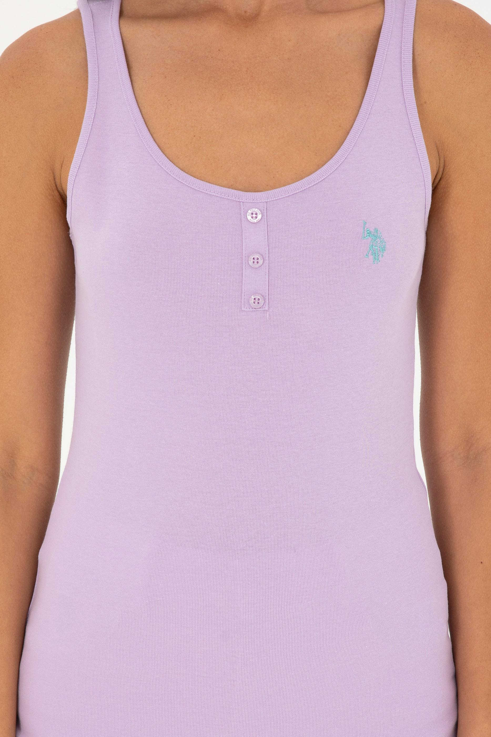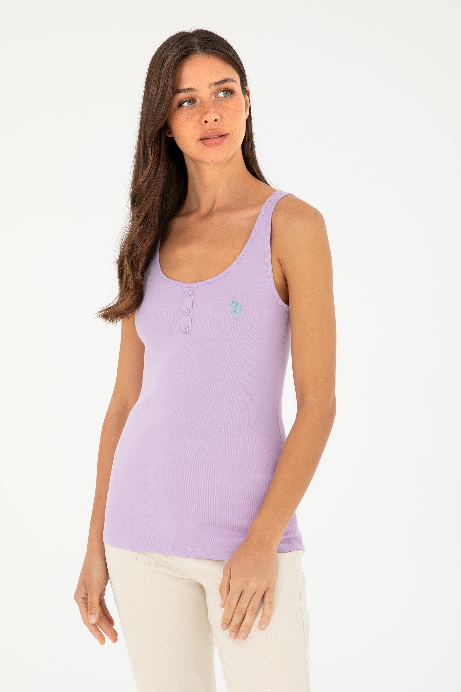 - Kadın Lila Bisiklet Yaka Basic Tişört